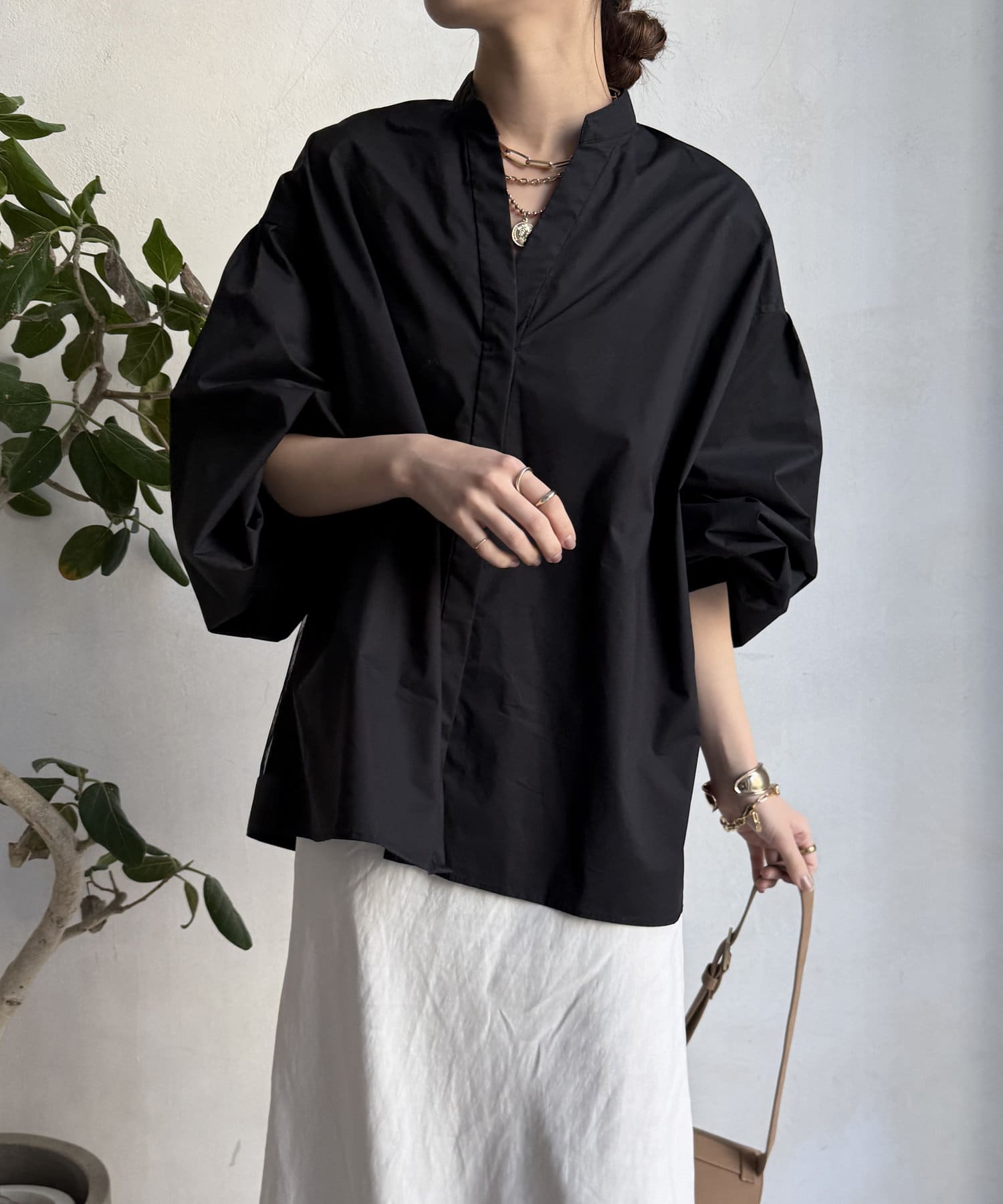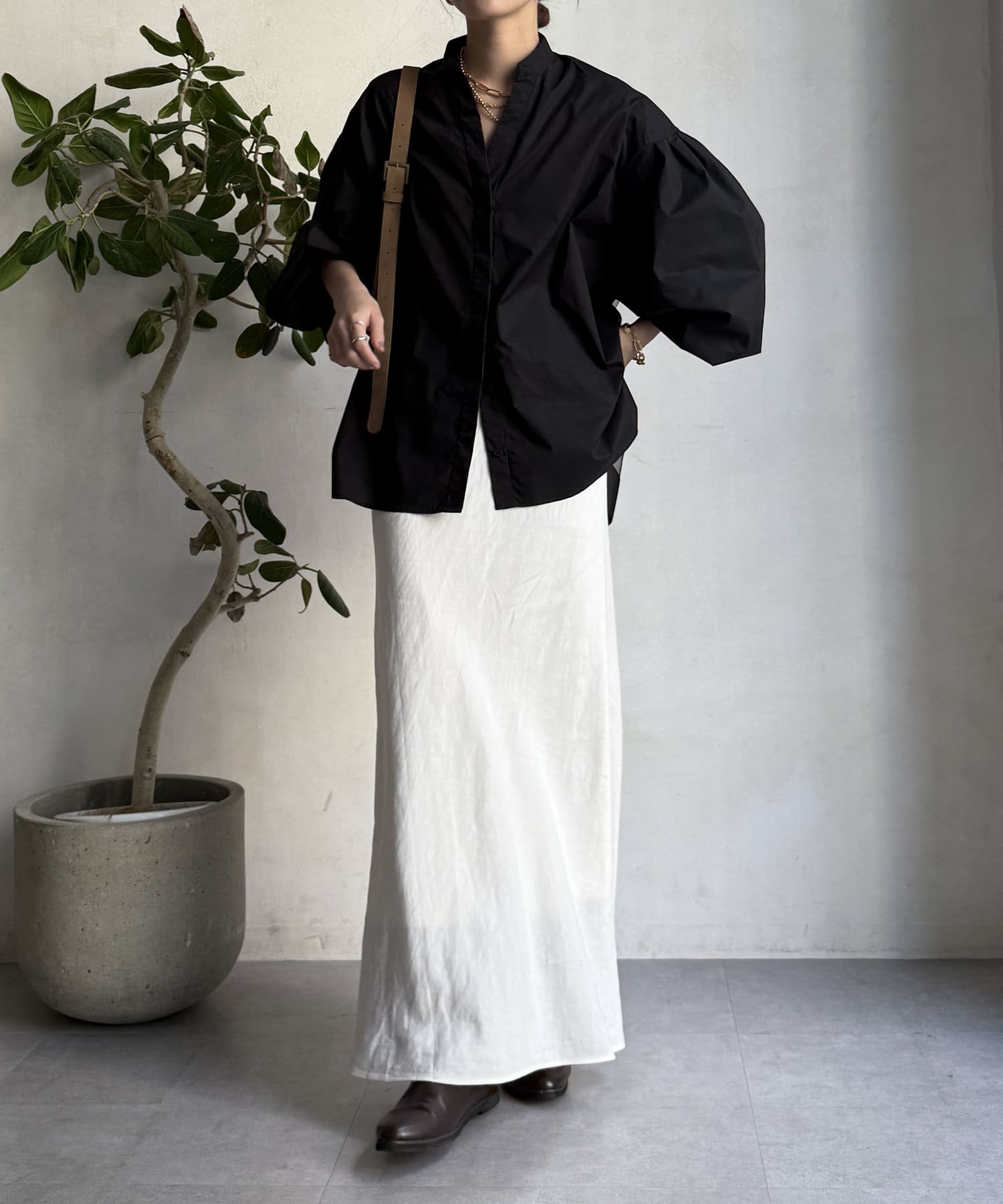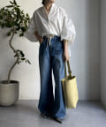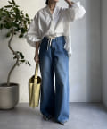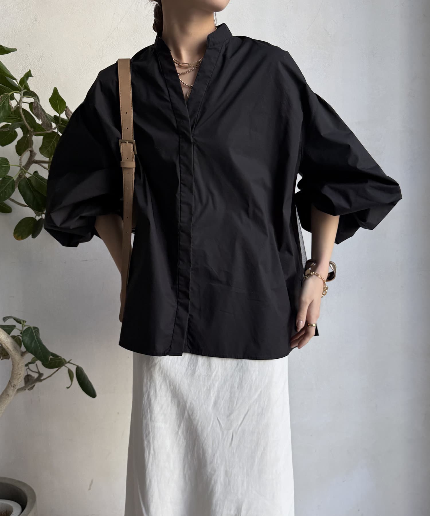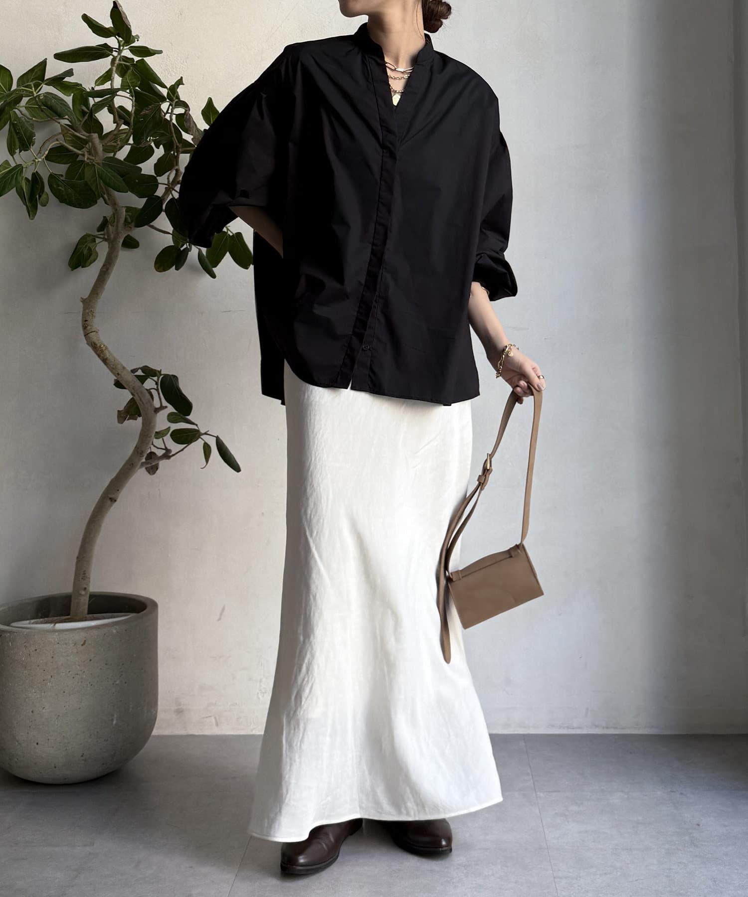 バックチュールのデザインが抜け感をプラスしてくれて、他のブラウスと差をつけるスタイルに!