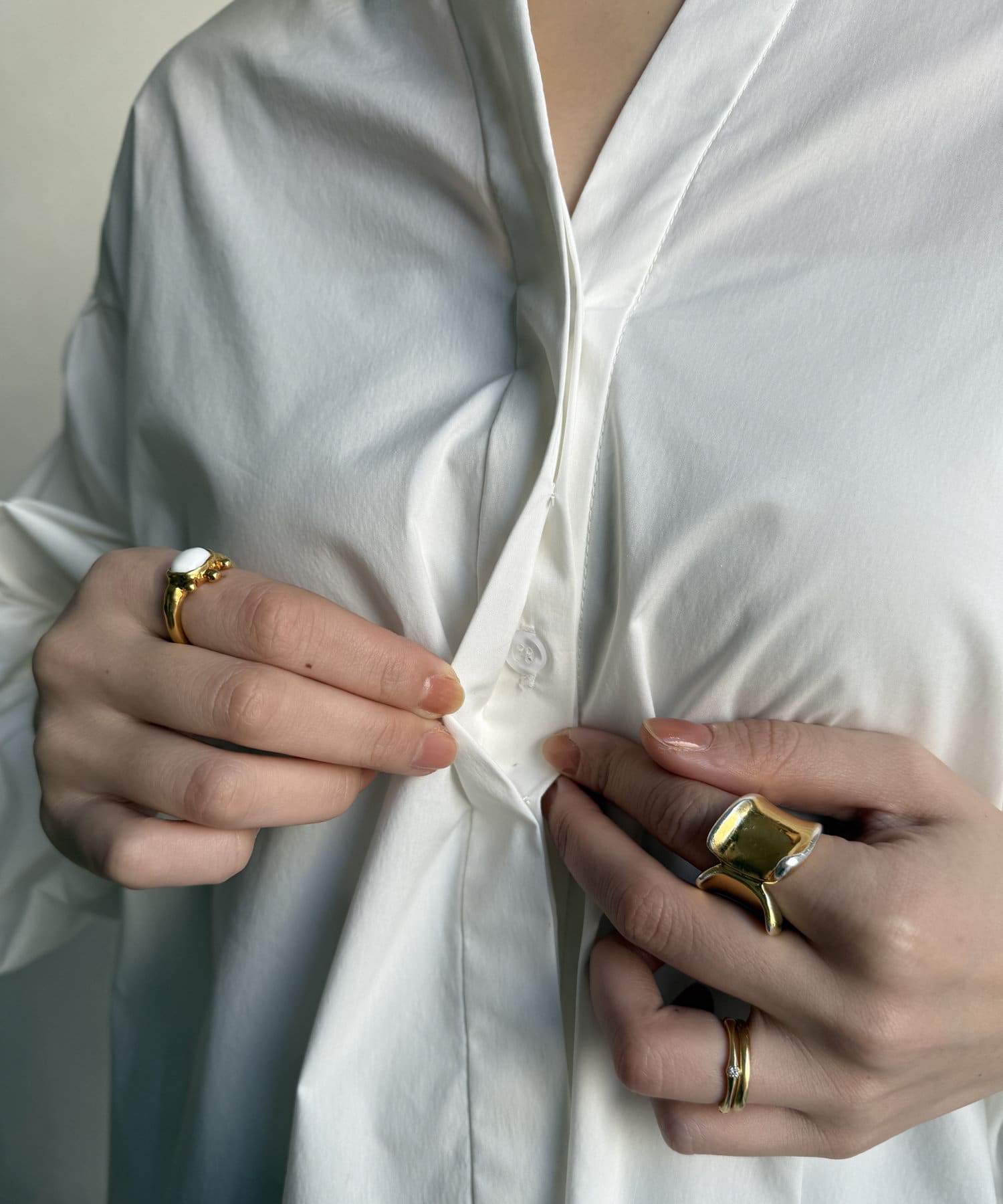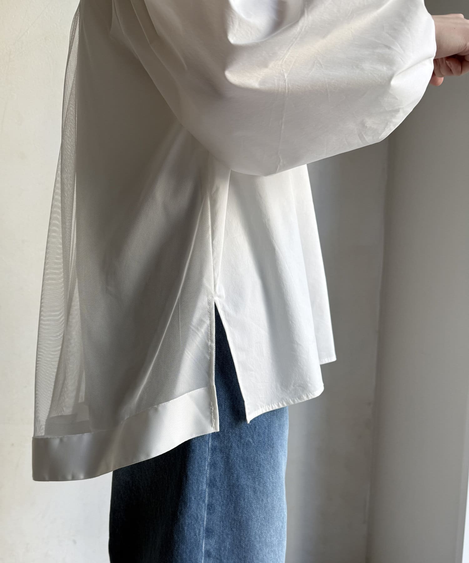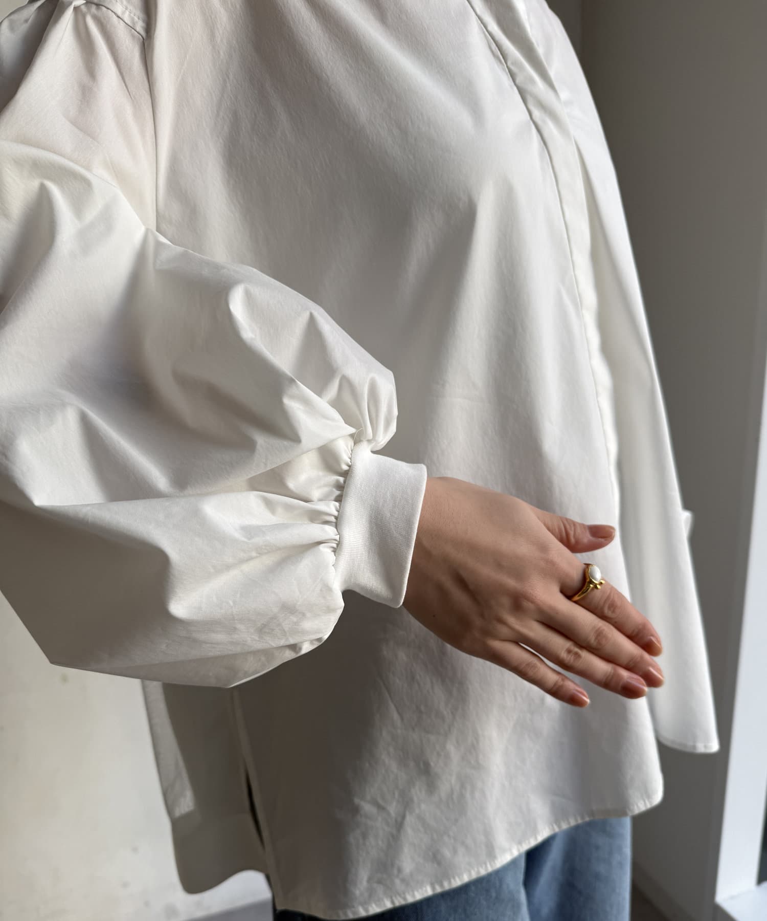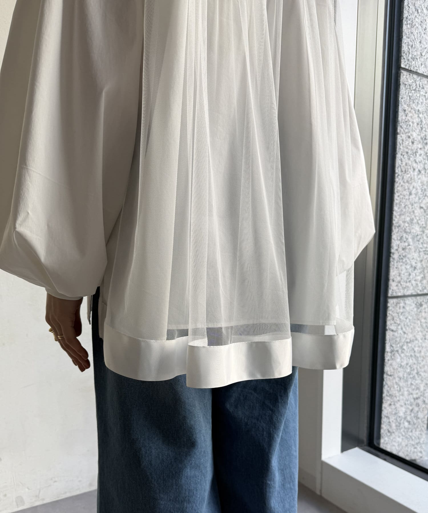 バックチュールのデザインが抜け感をプラスしてくれて、他のブラウスと差をつけるスタイルに!