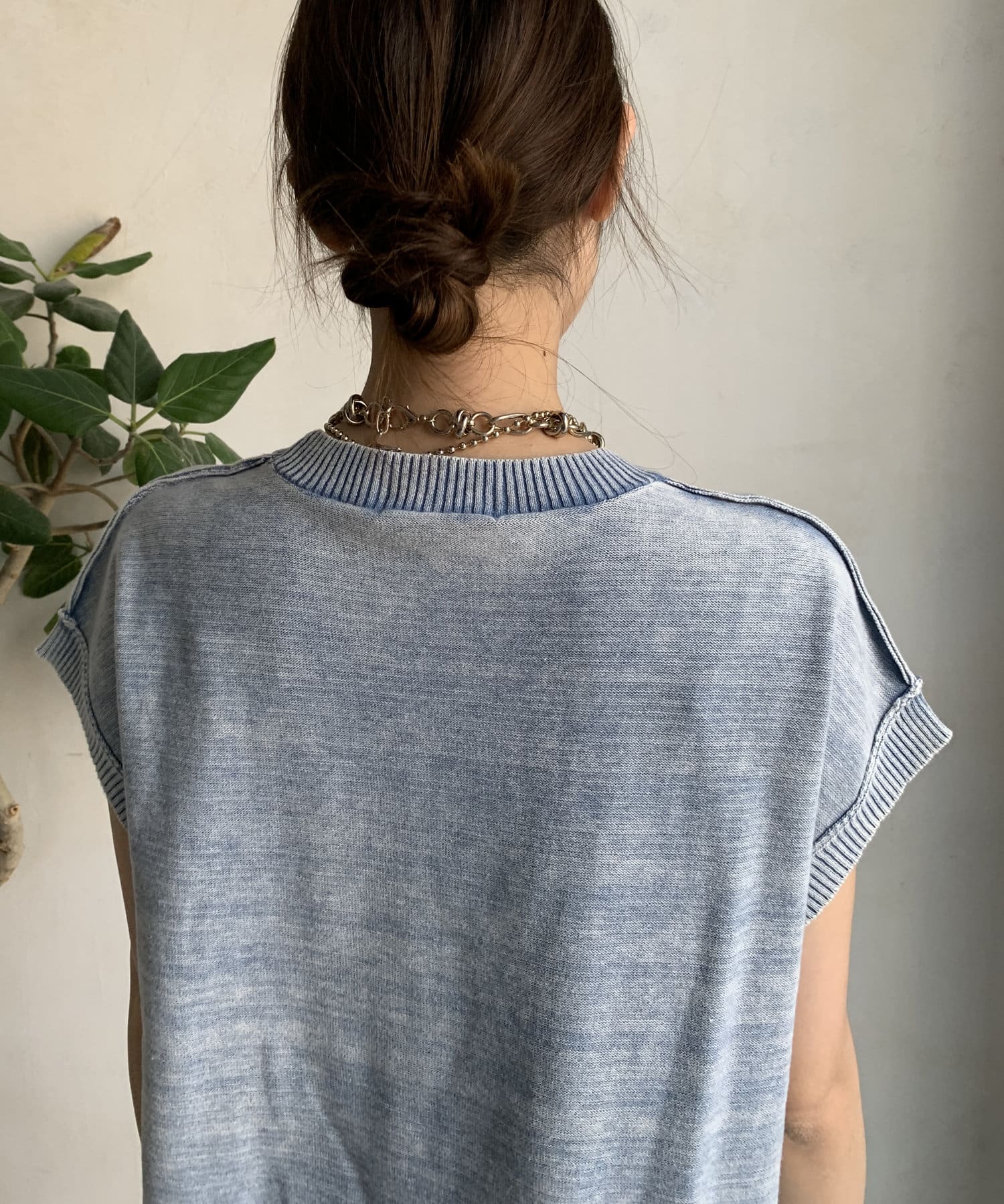 長すぎない着丈でパンツにもスカートにも合わせやすいアイテムです。