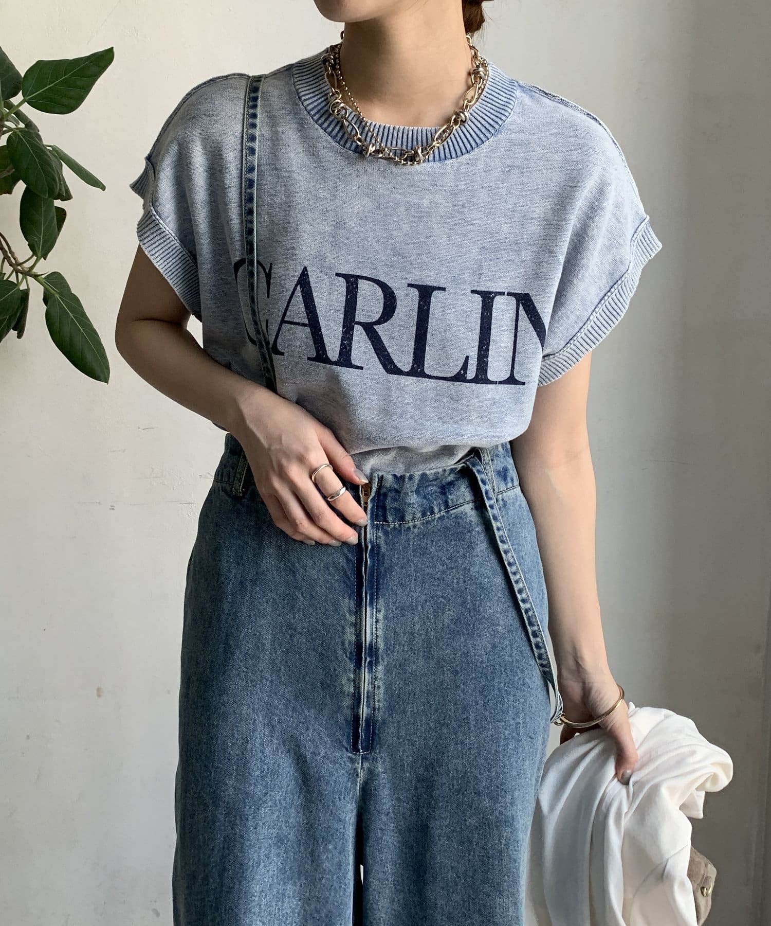 ロゴがポイントのカジュアルなフレンチスリーブトップス。