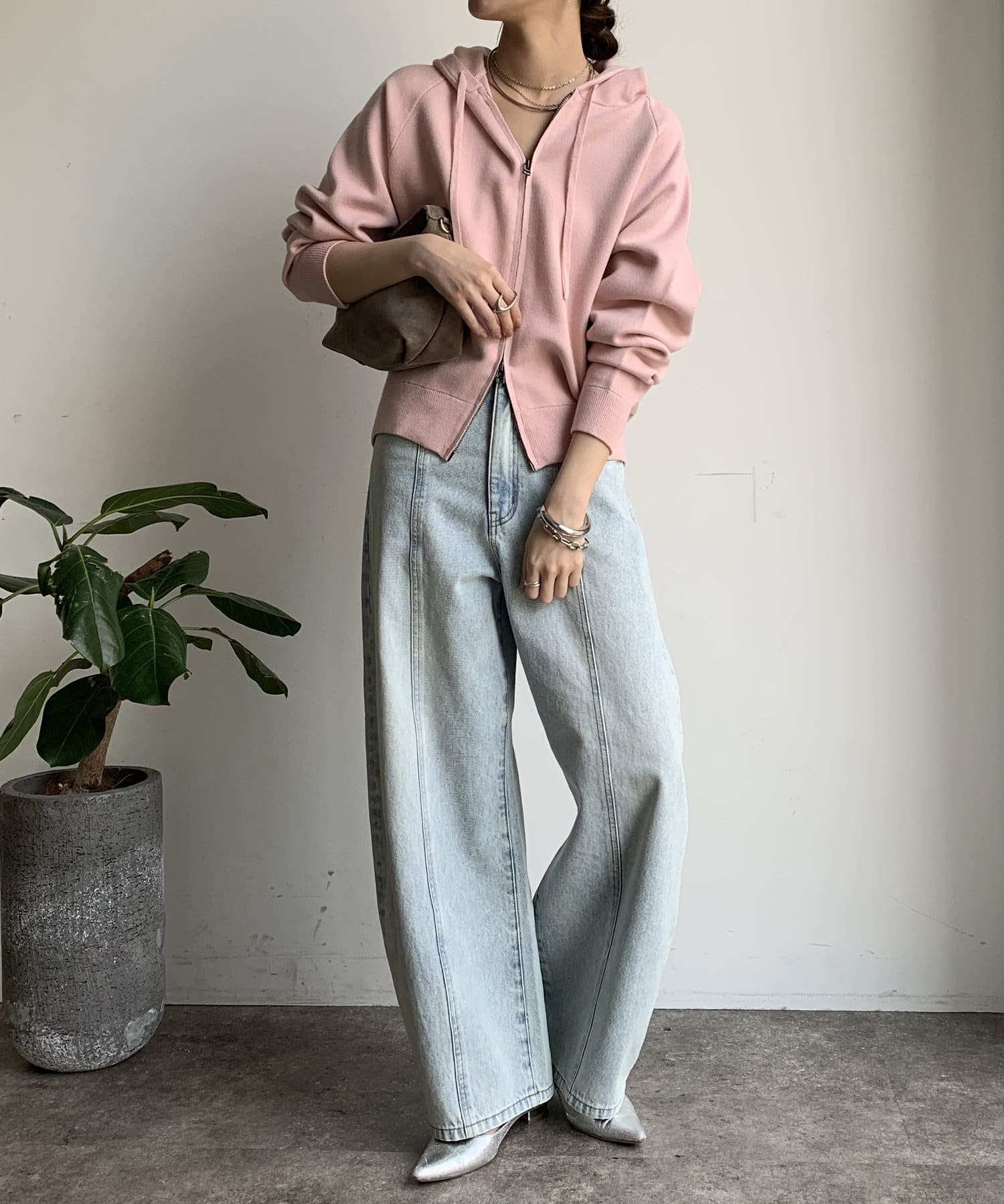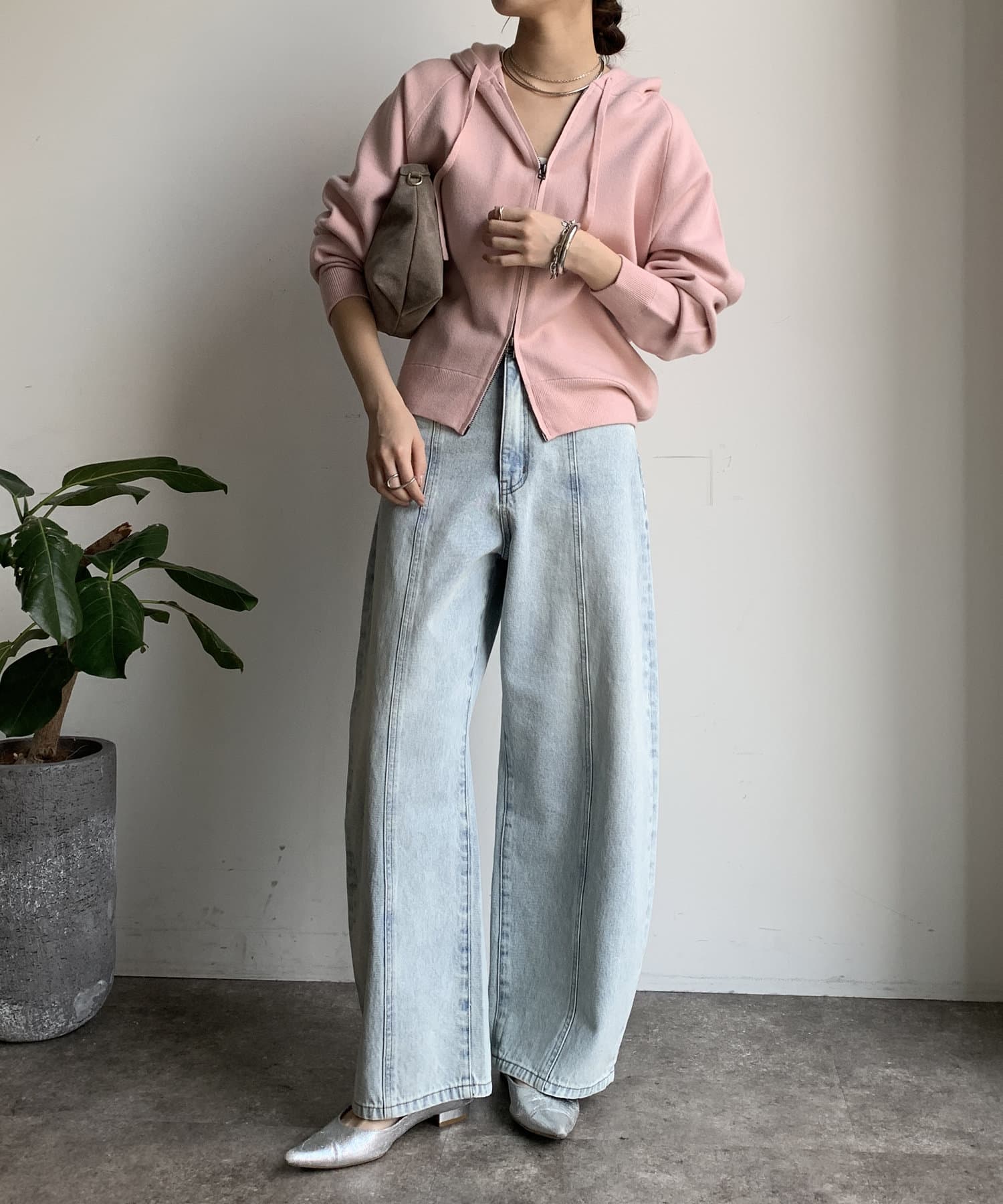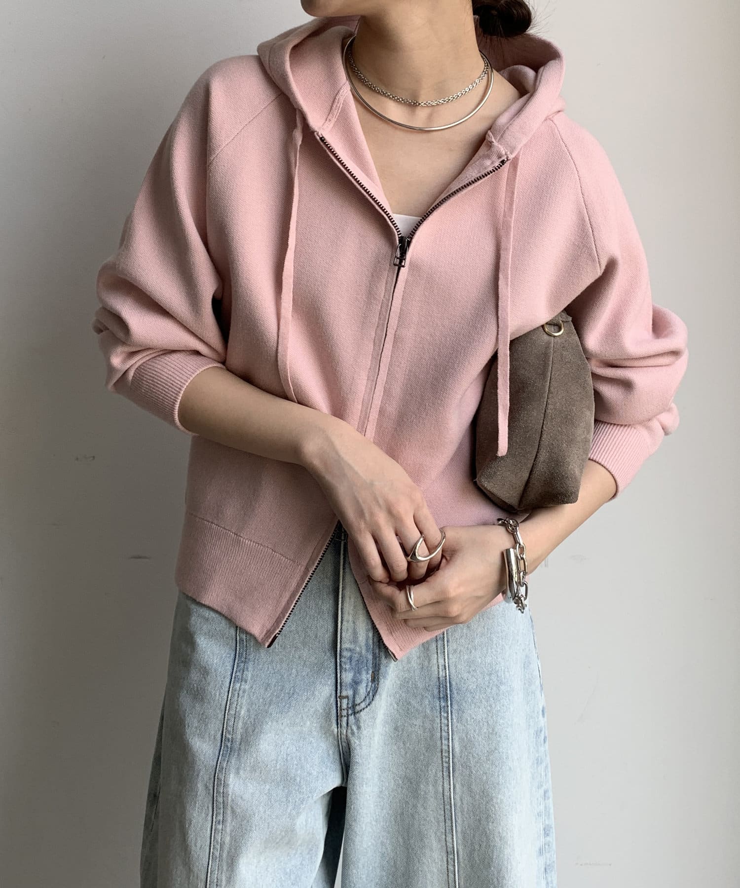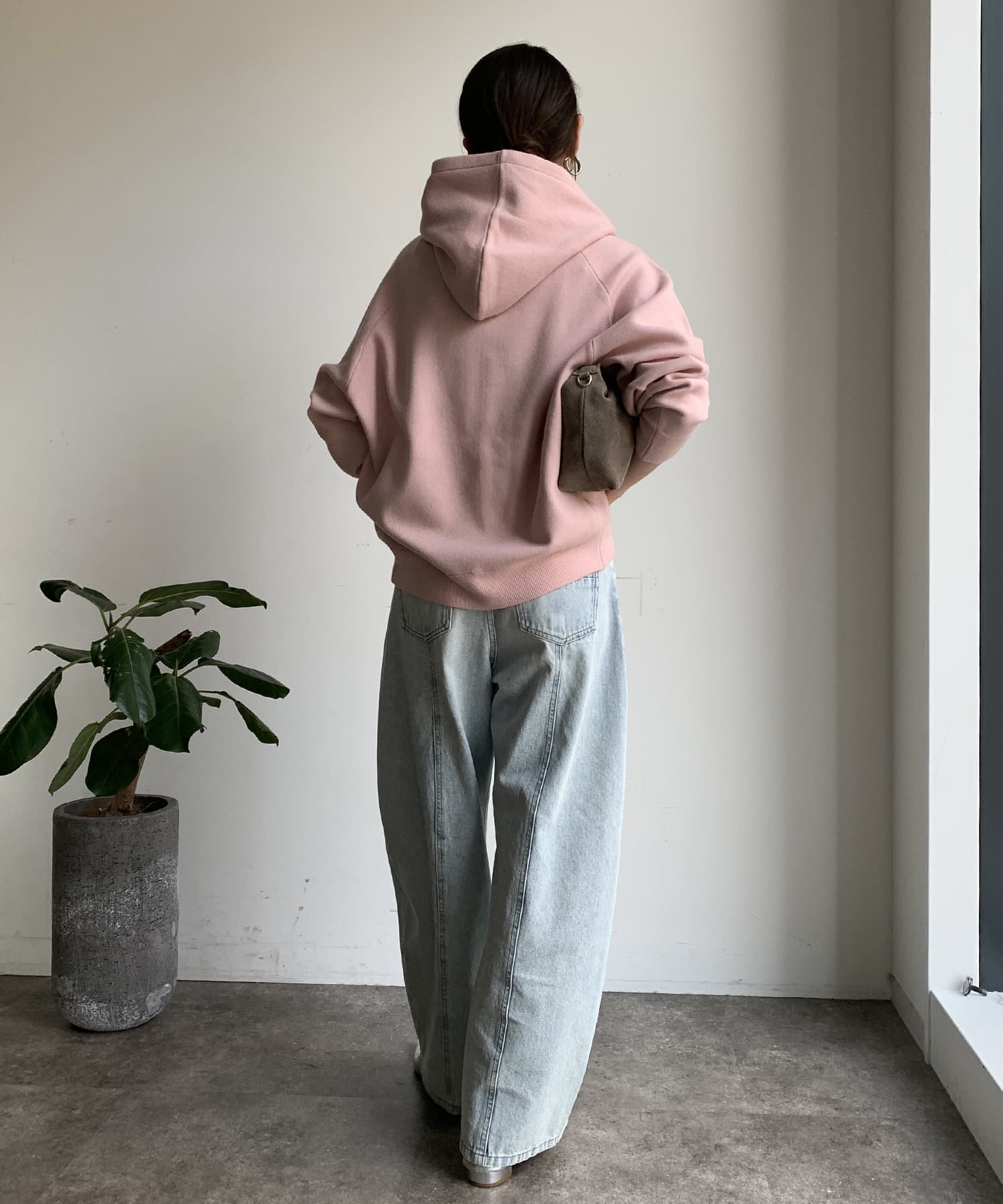 カジュアルなパーカーに程よいタイトなサイズ感で上品さをプラスした1着。