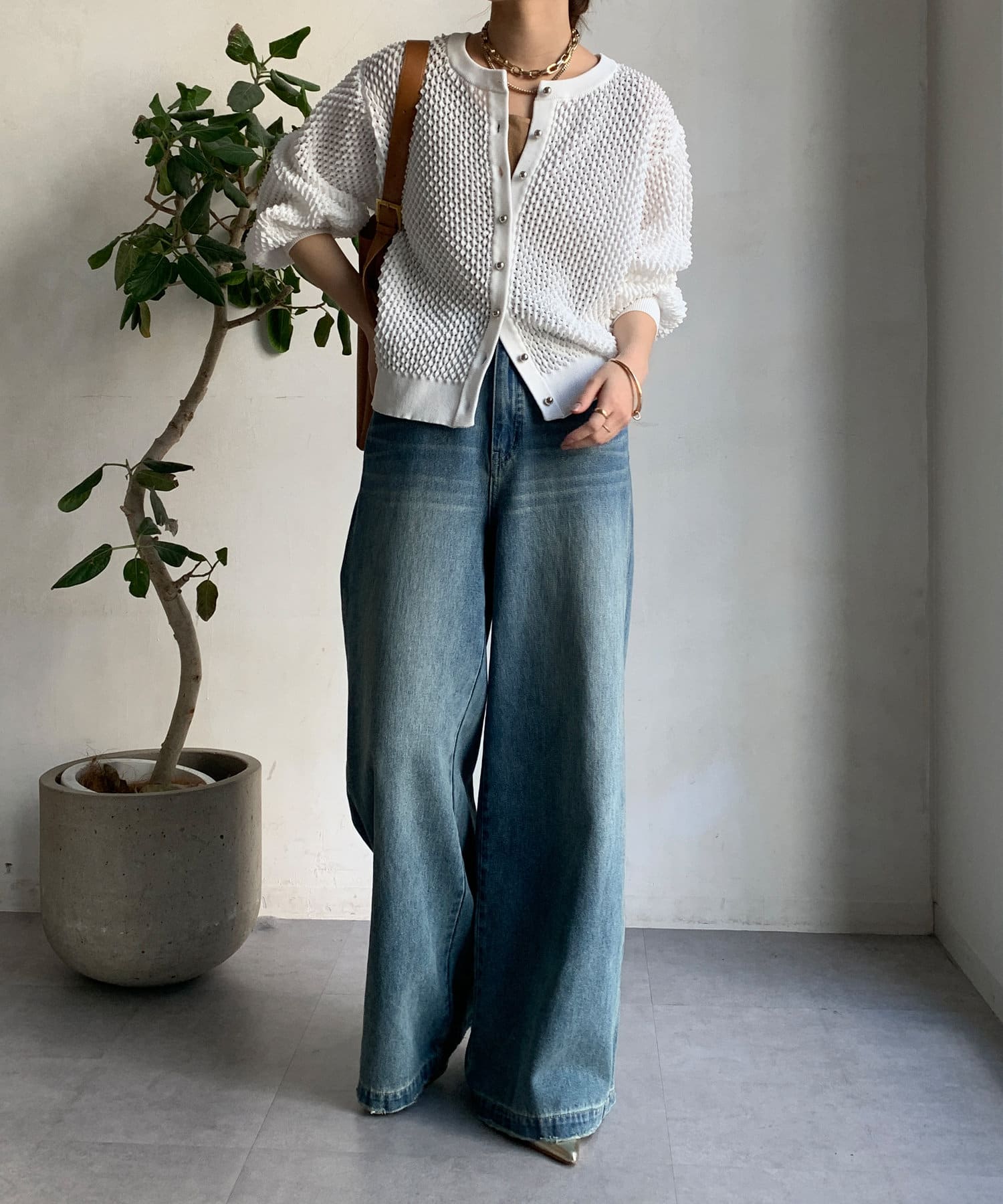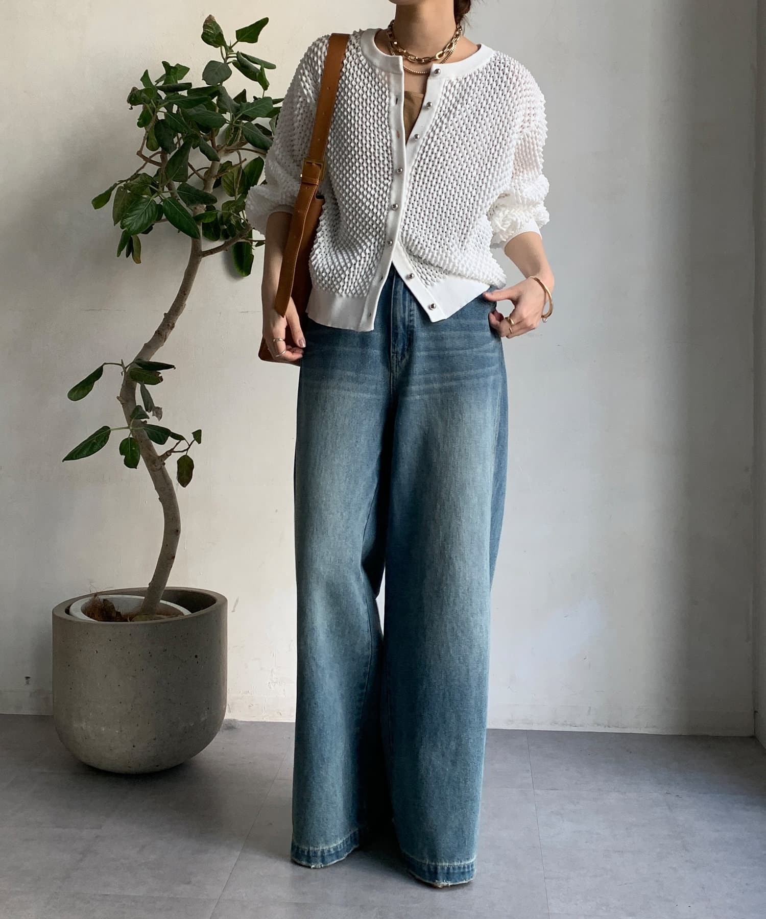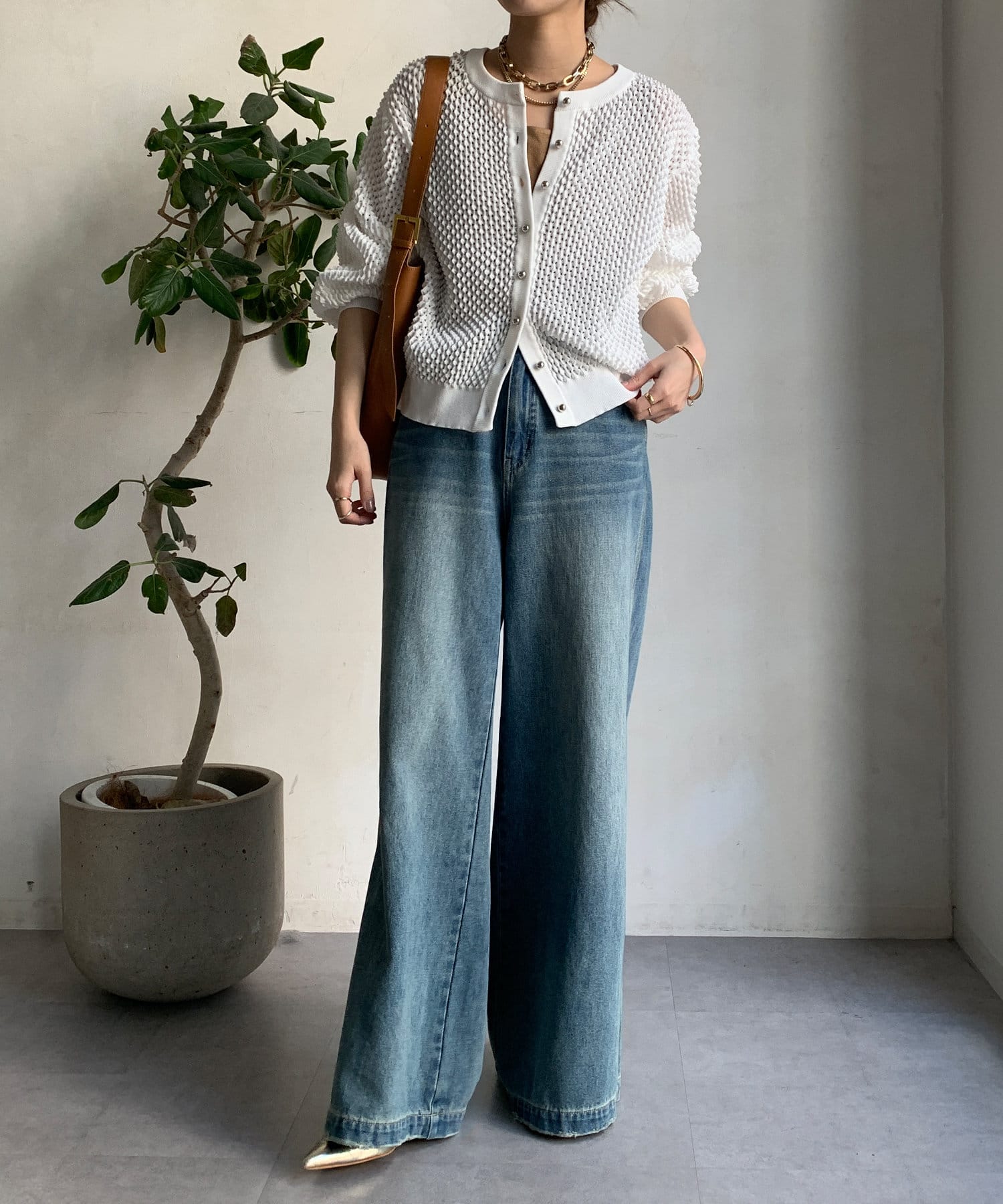 カジュアルなボトムと合わせて、甘くなり過ぎないようにバランスを取るのがおすすめですよ◎