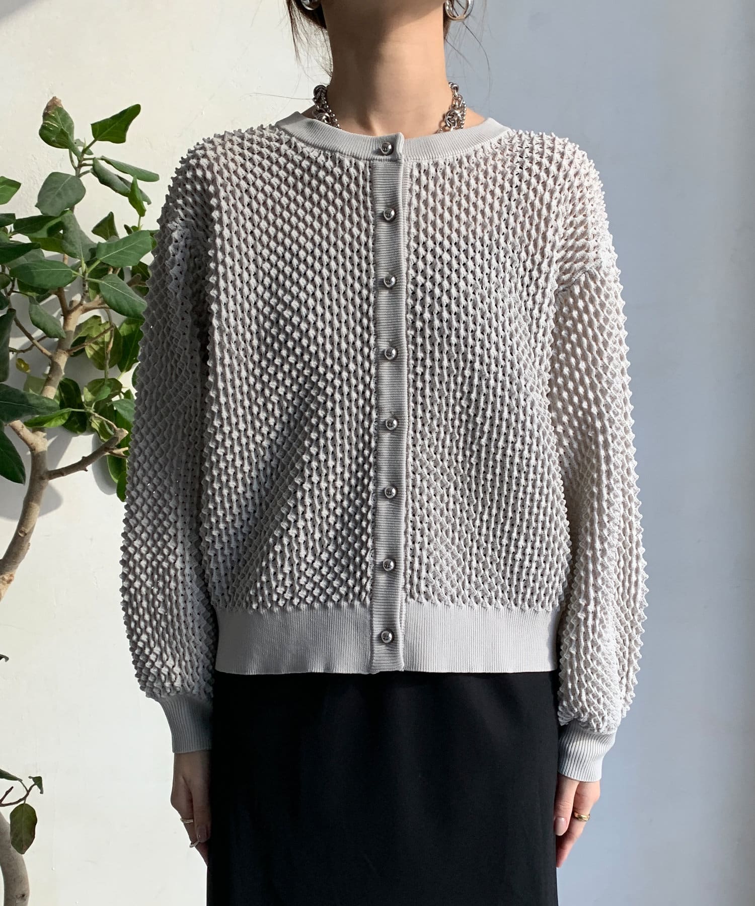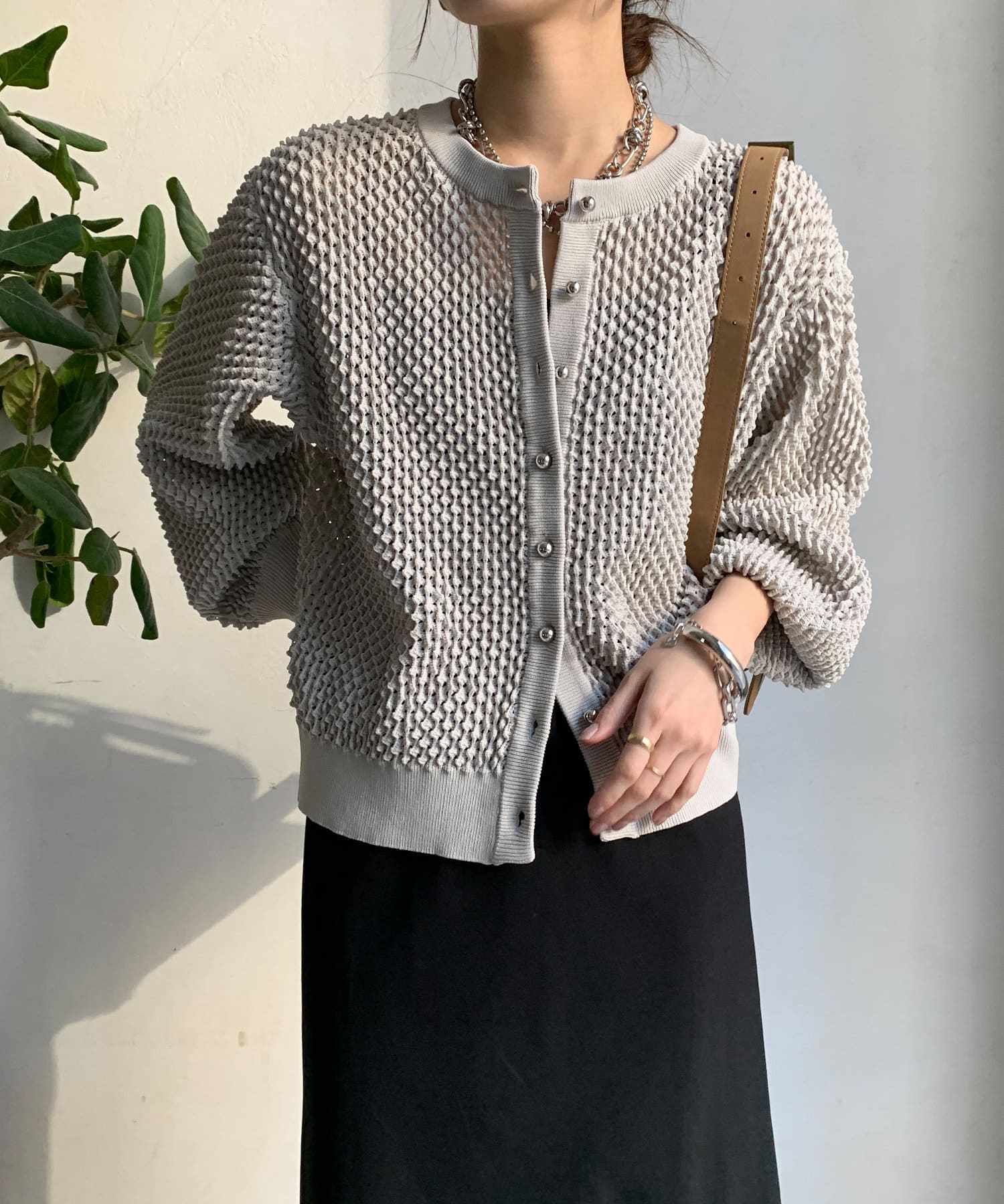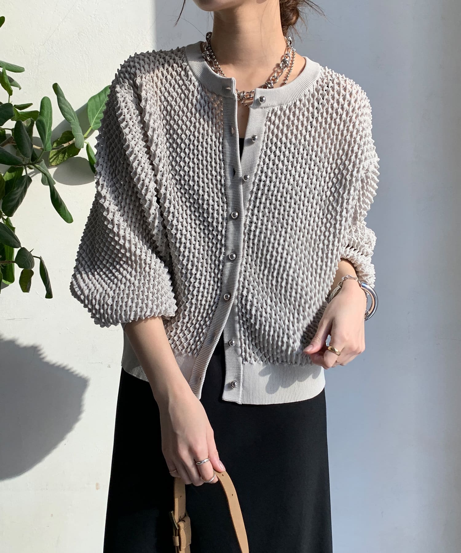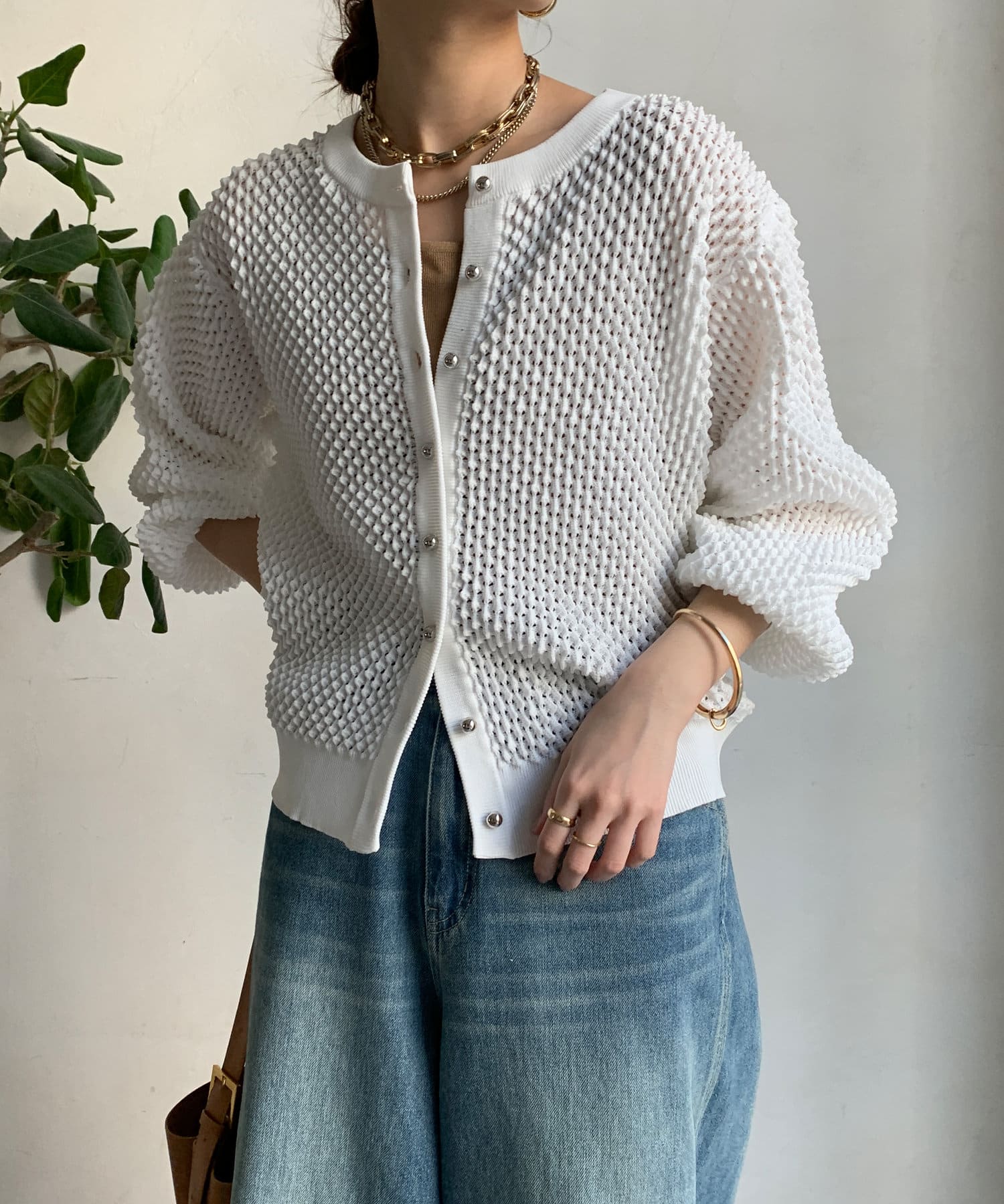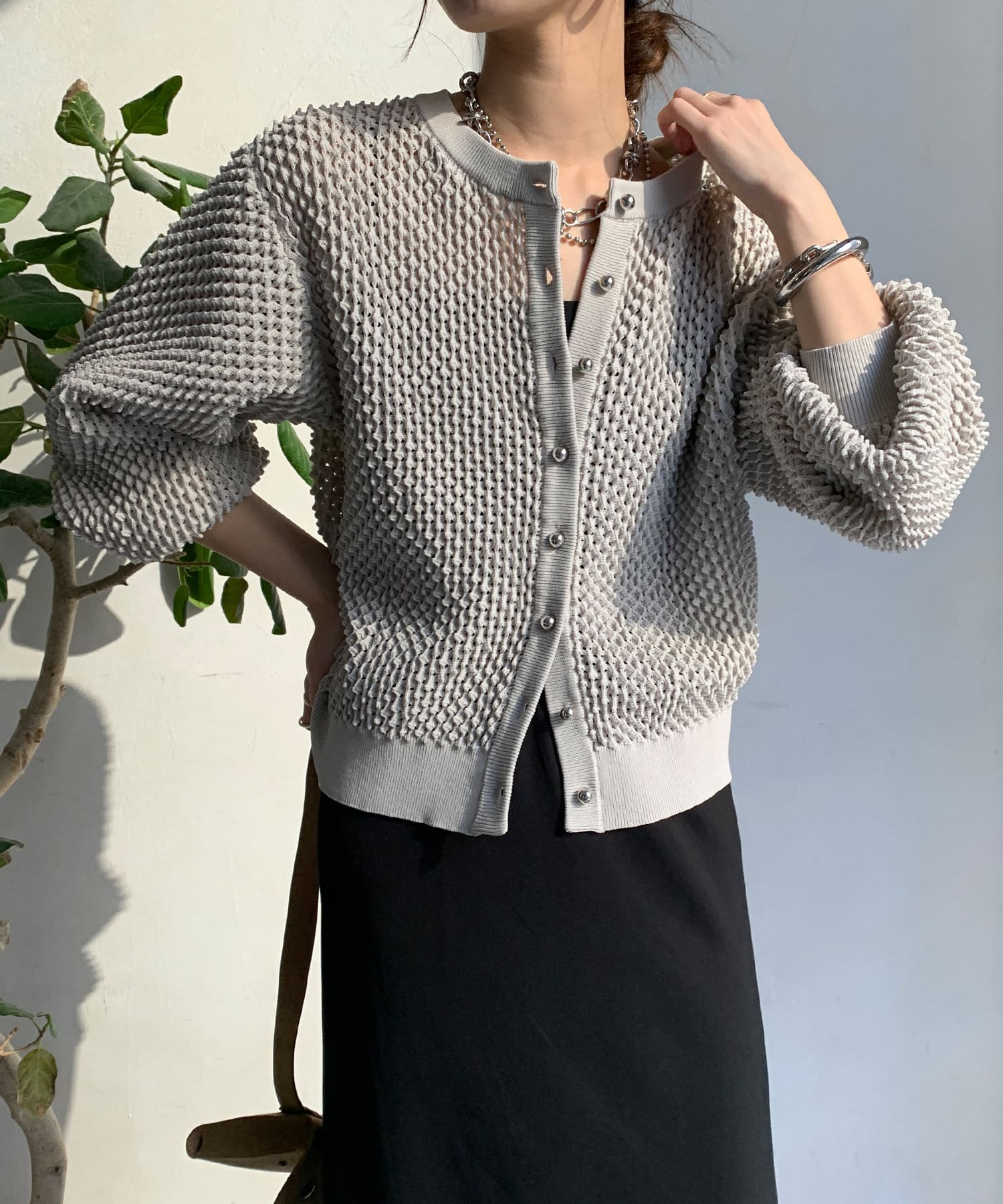 【スポンジライク】トゲトゲジャガード編みニットカーディガン