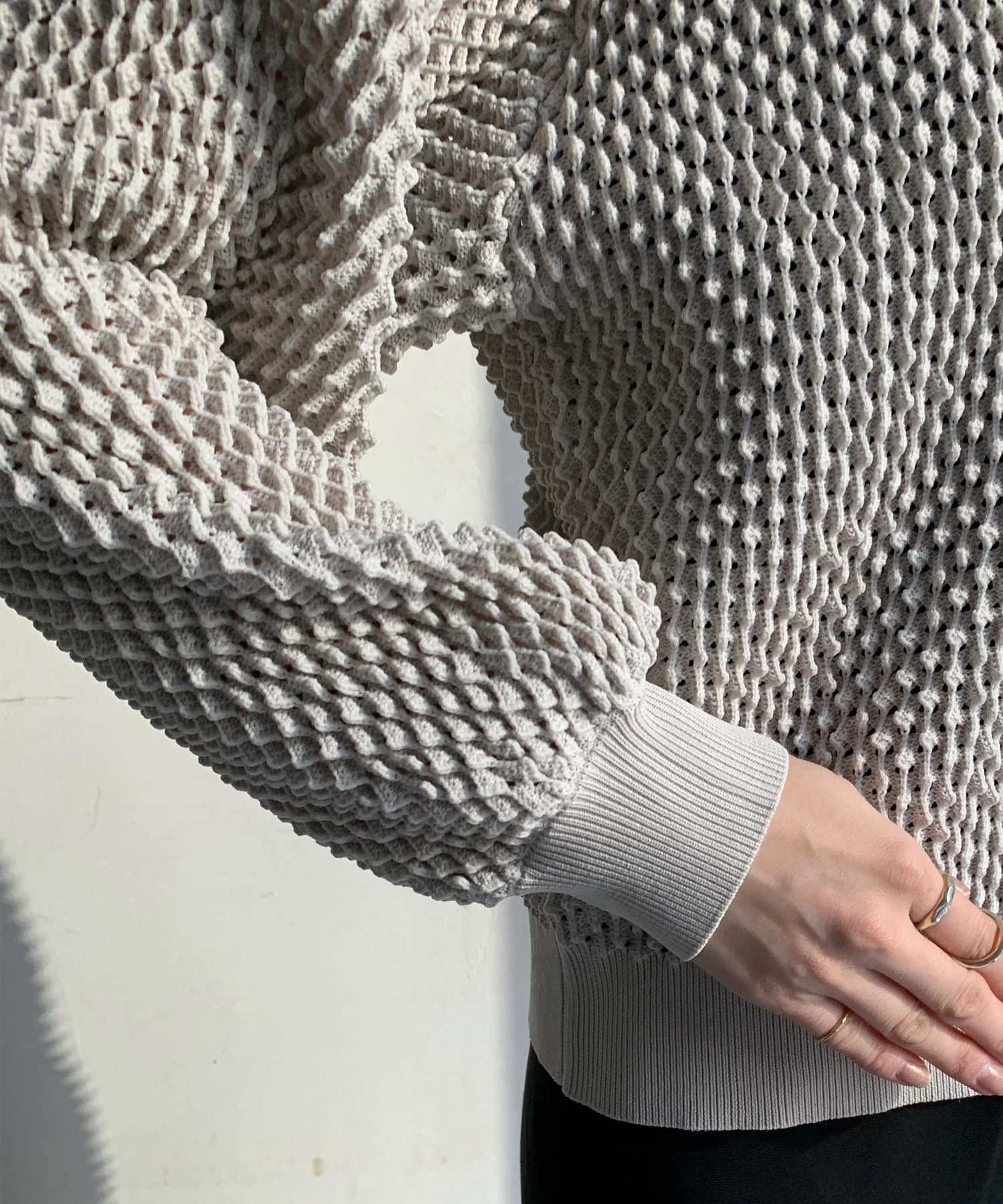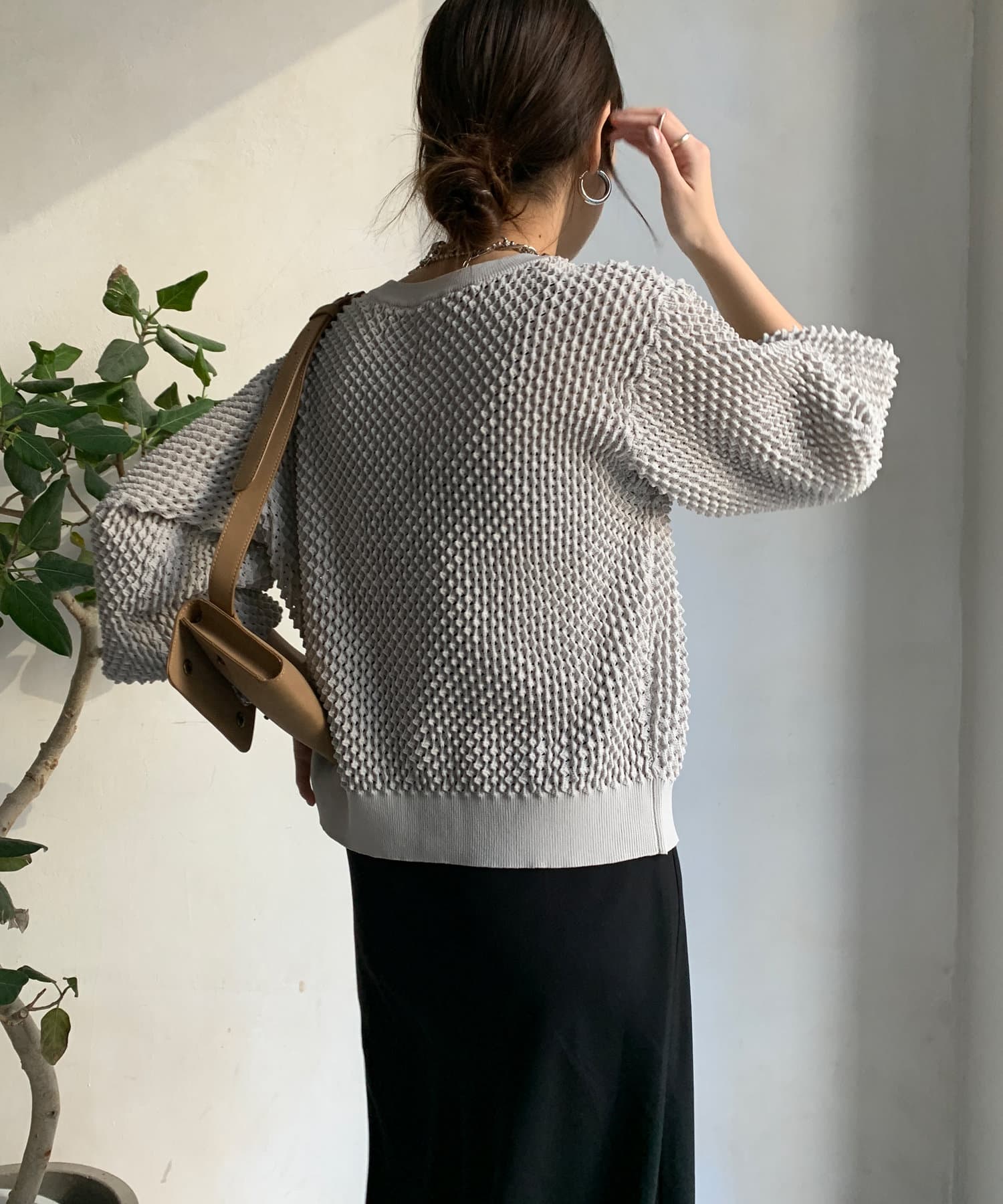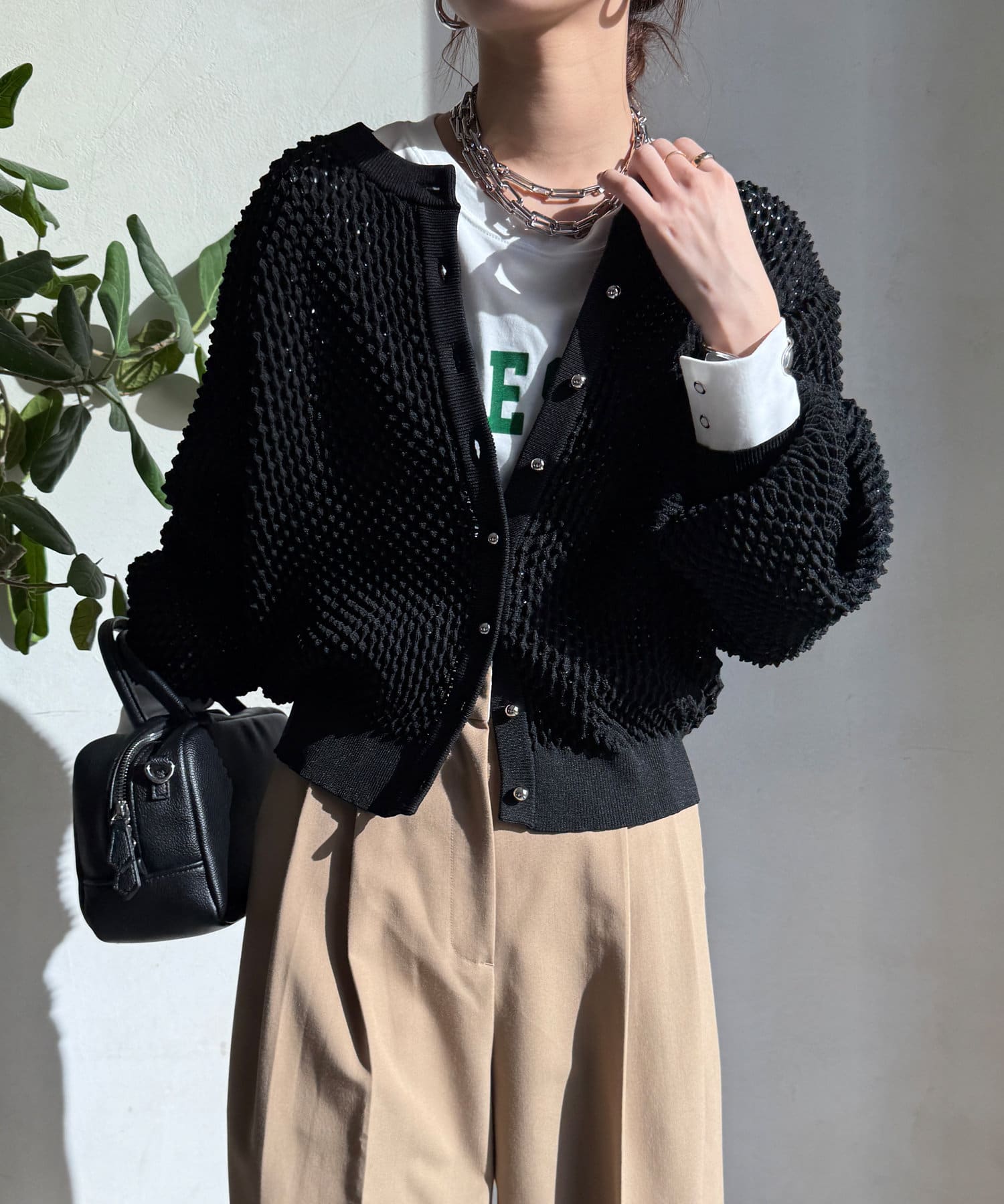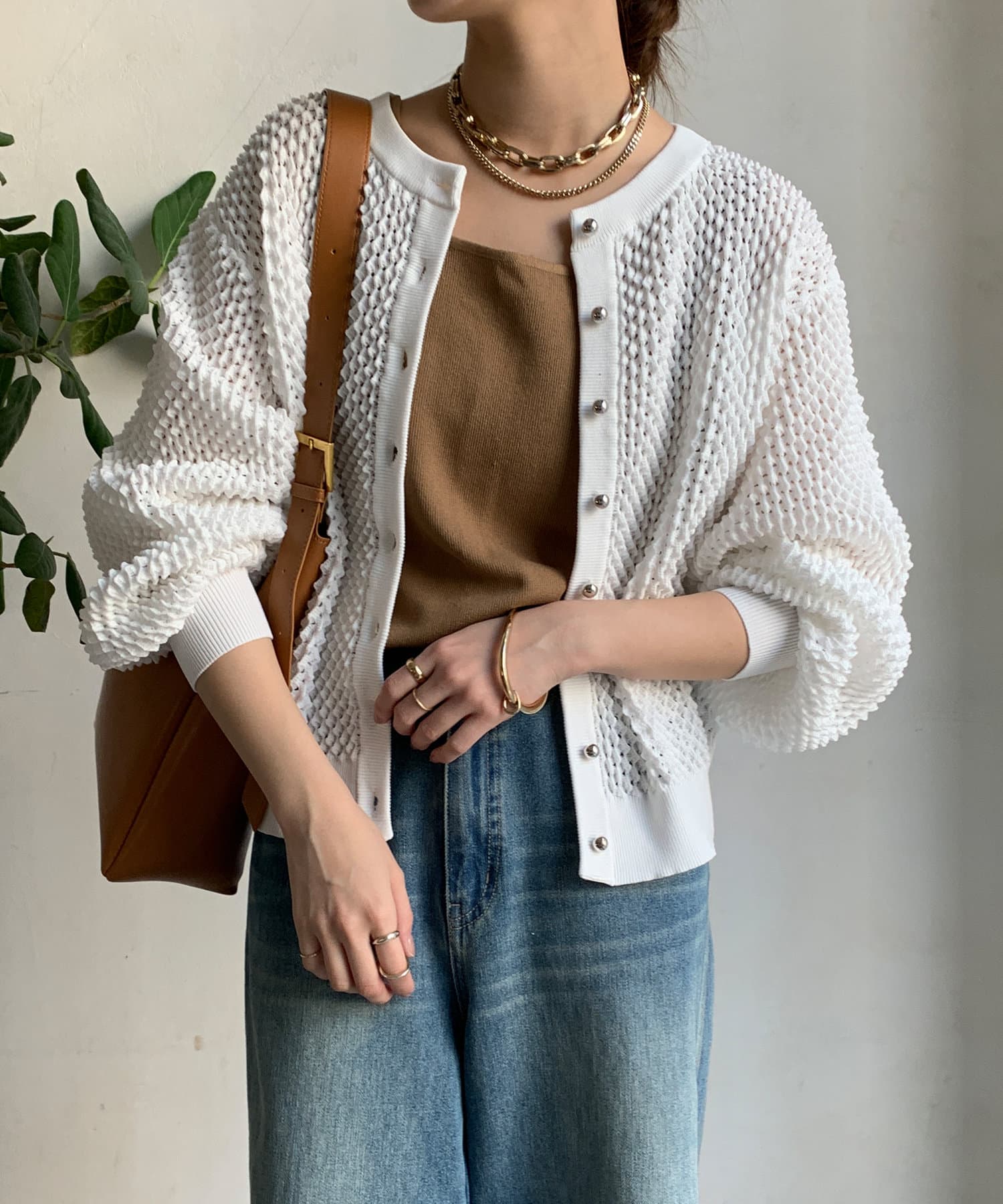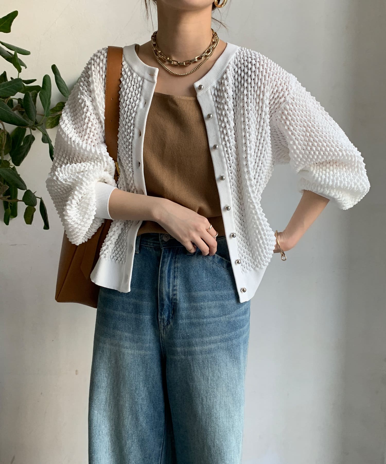 【スポンジライク】トゲトゲジャガード編みニットカーディガン