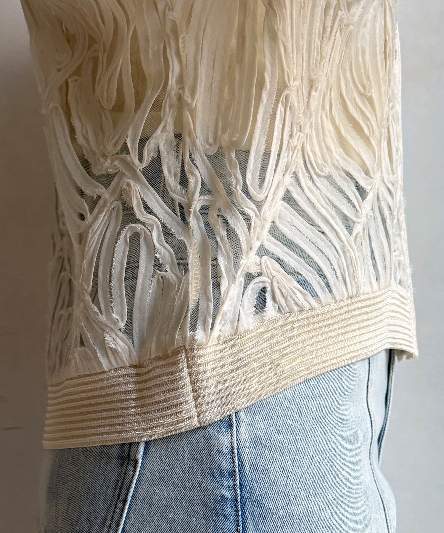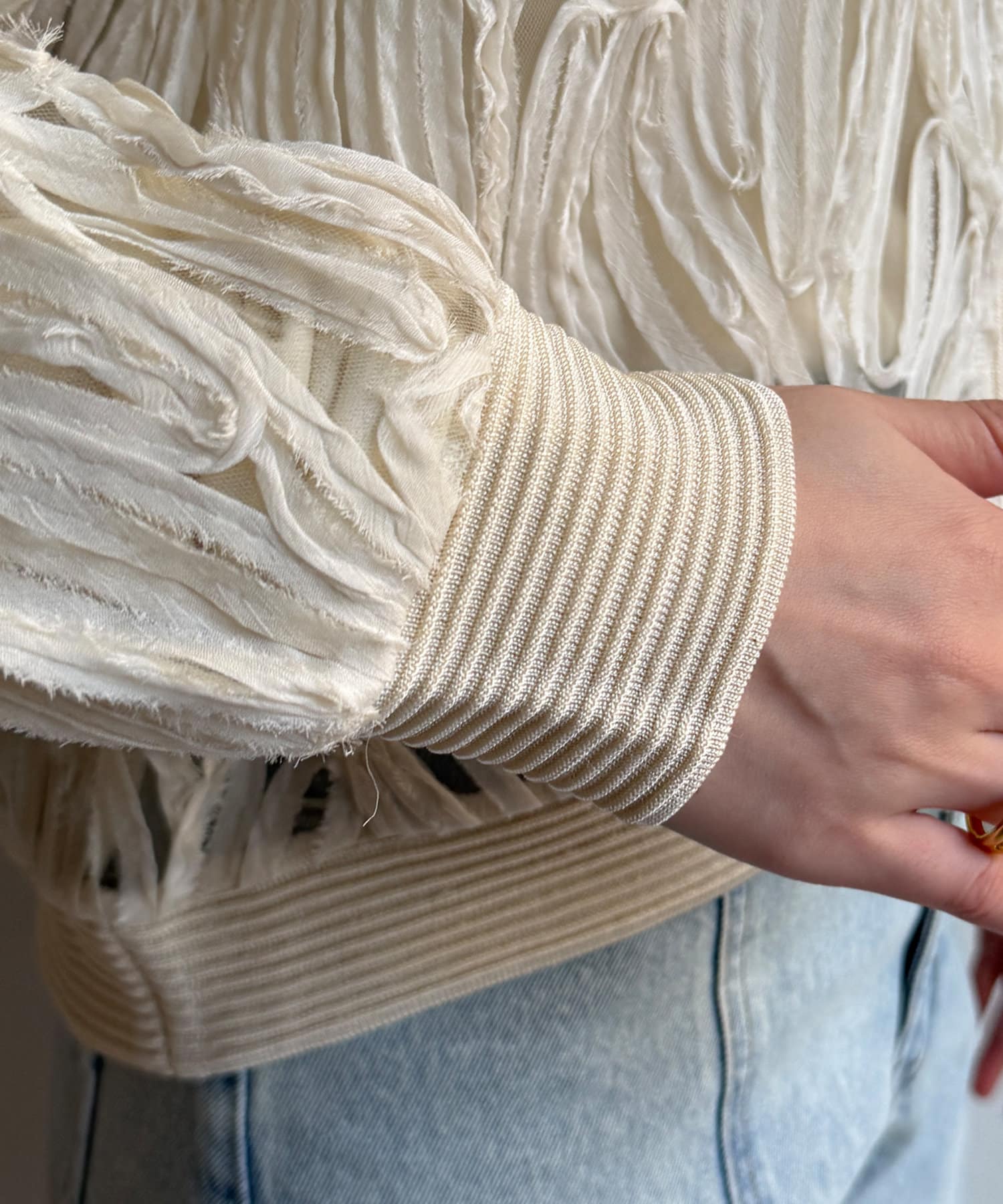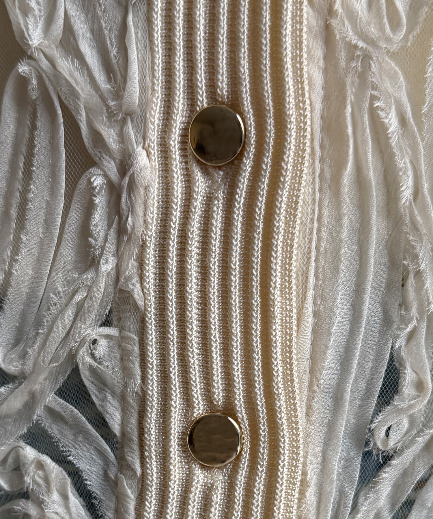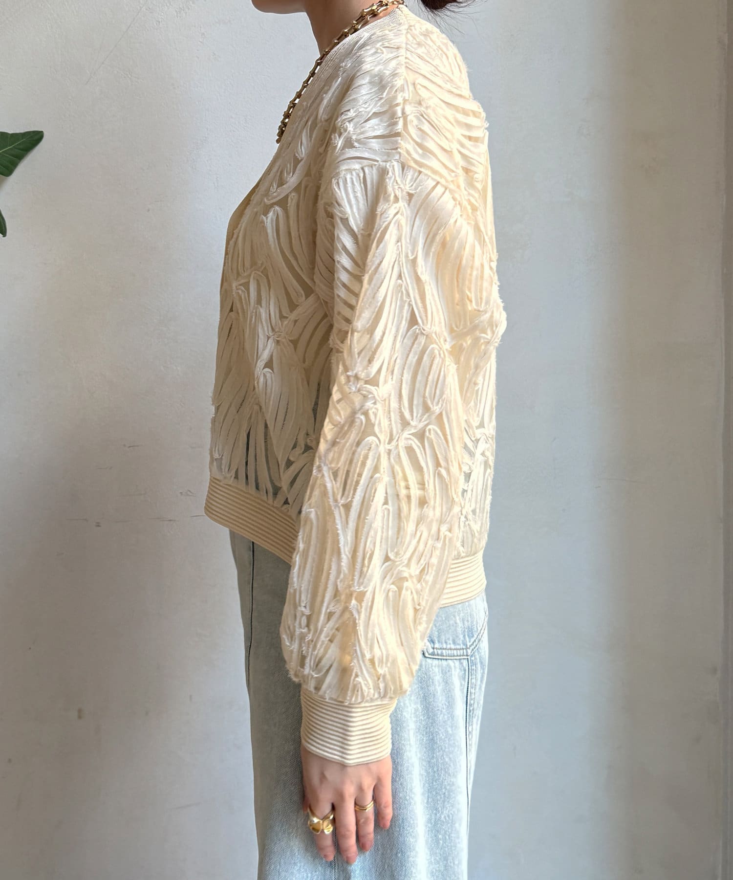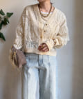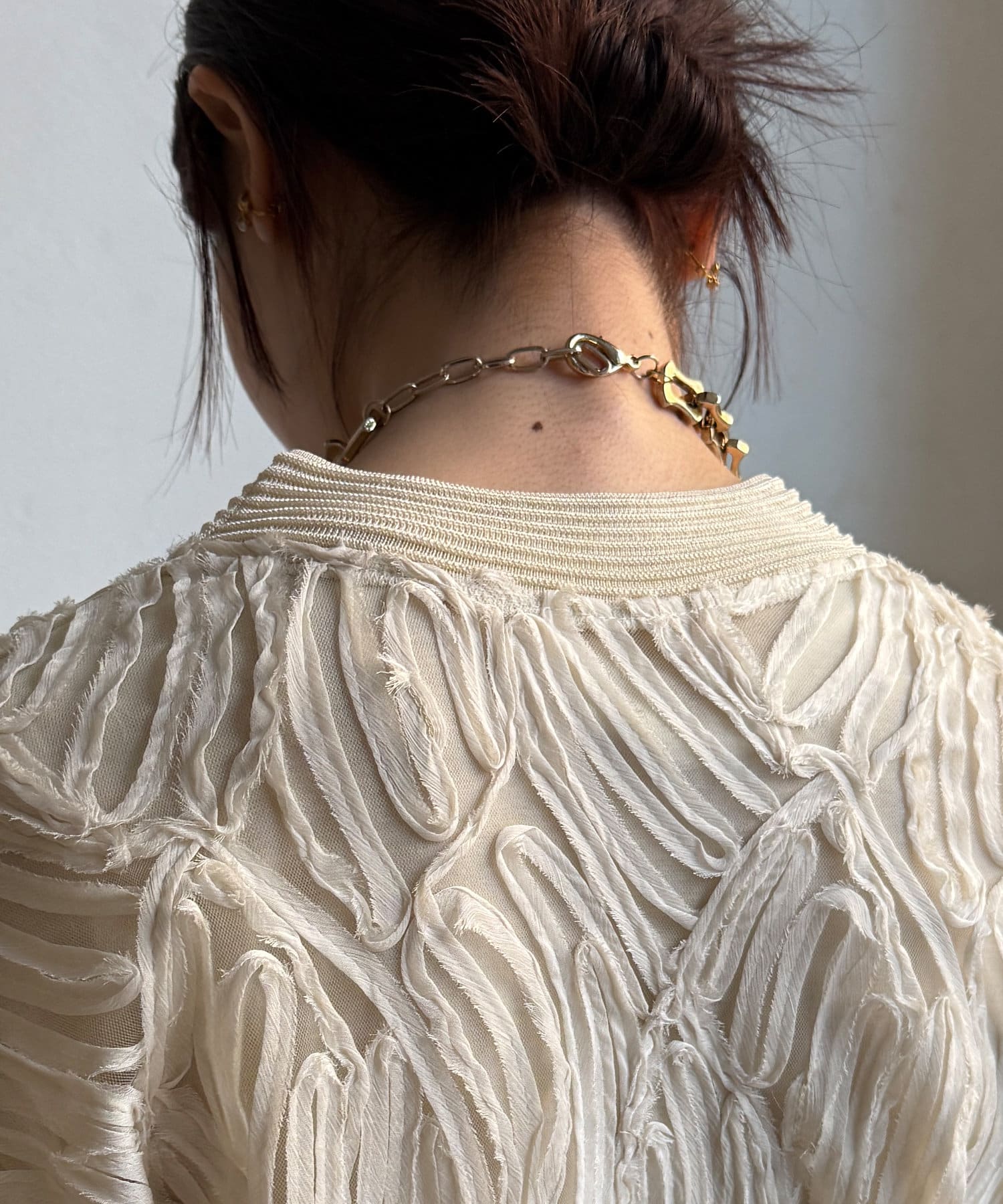 スタイリングを華やかに見せてくれる凹凸感のあるデザインのカーディガン。