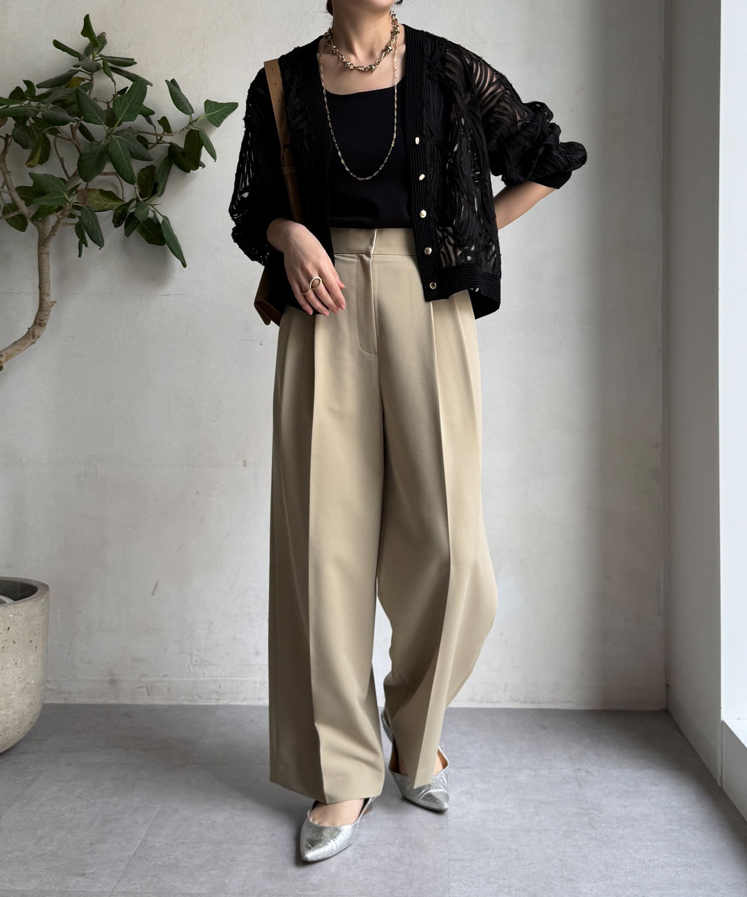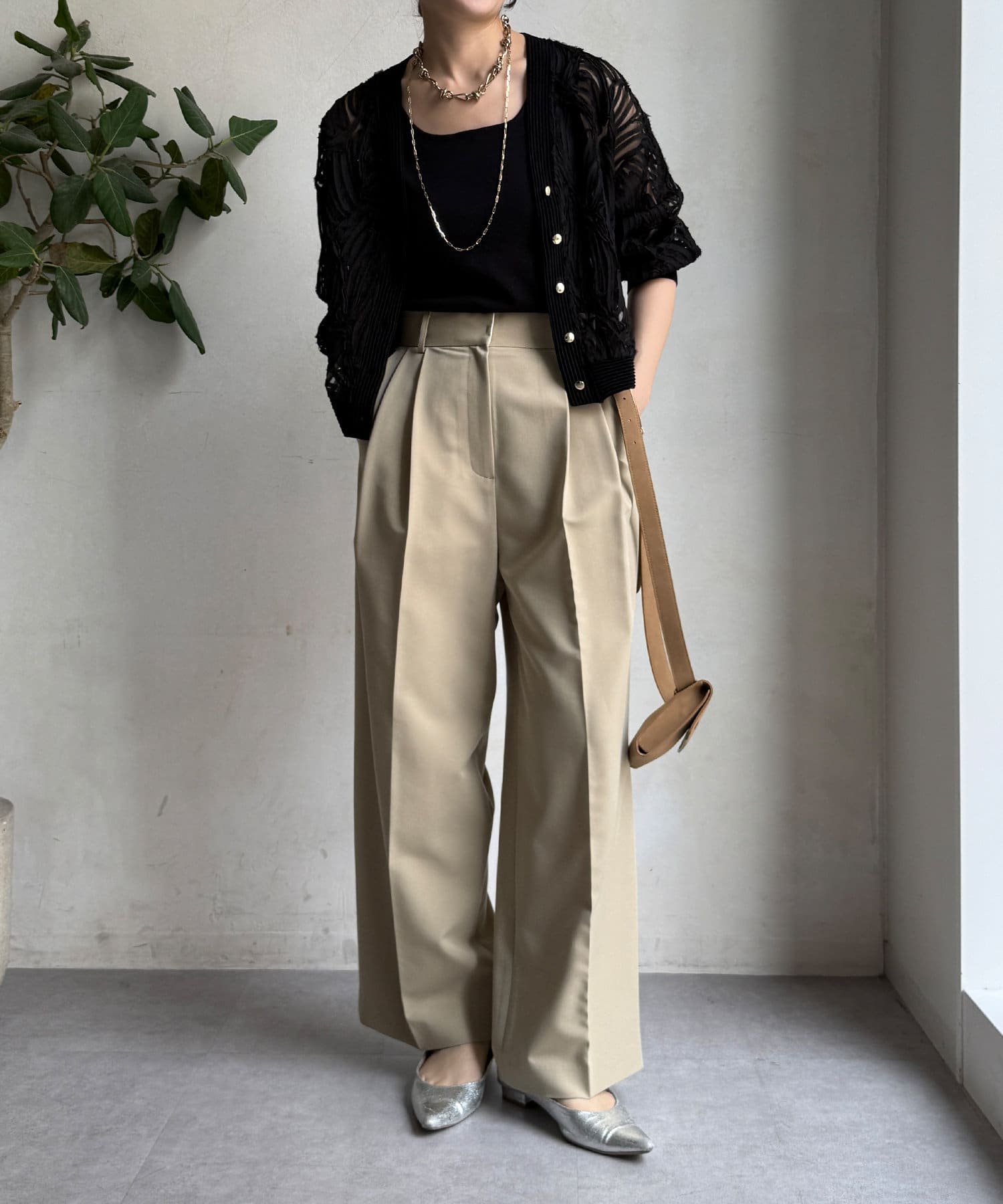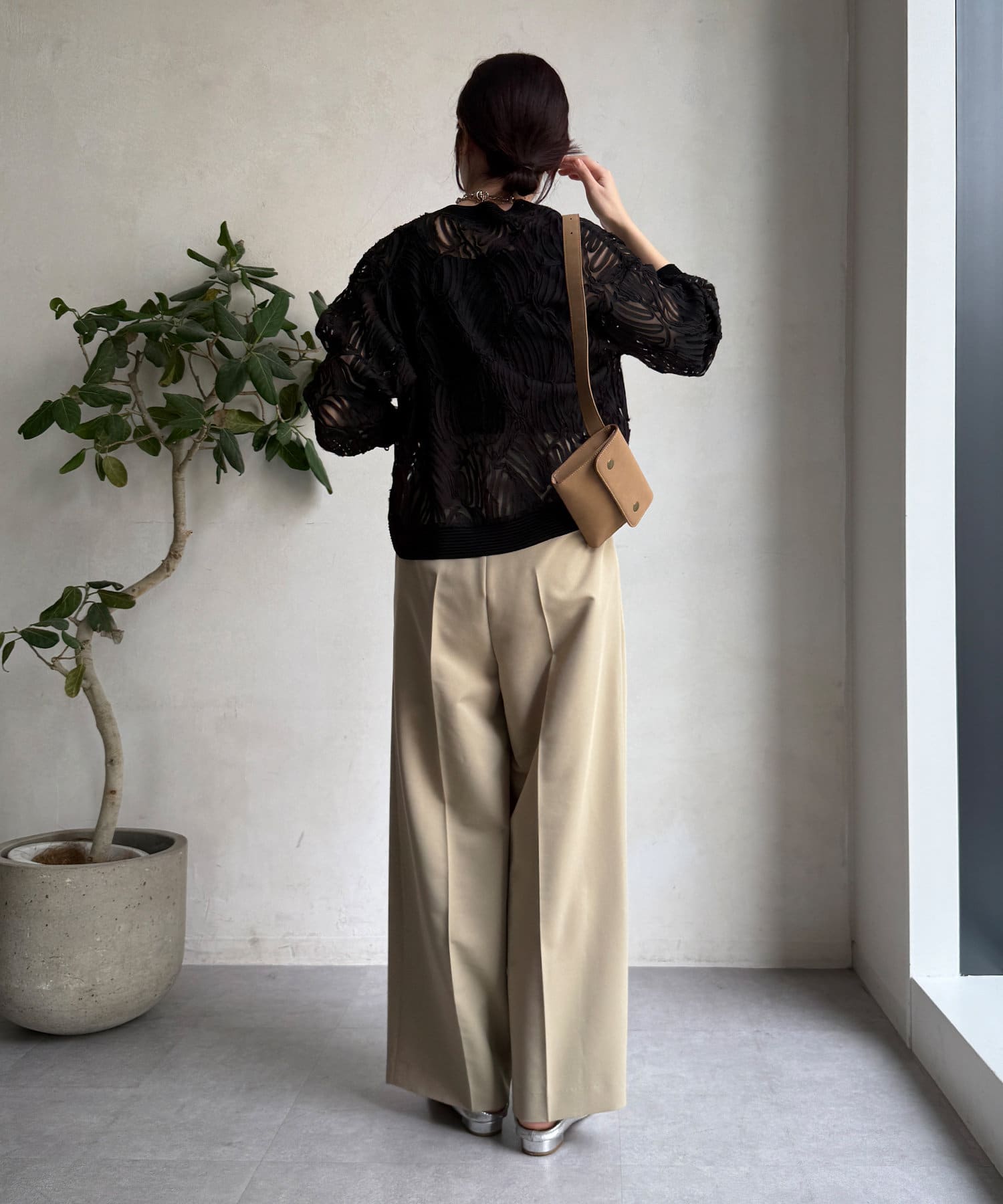 ワイドパンツやフレアスカートなど、ボリューム感のあるボトムとも相性よくスタイリングしていただけますよ◎