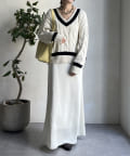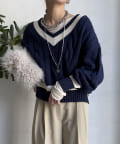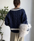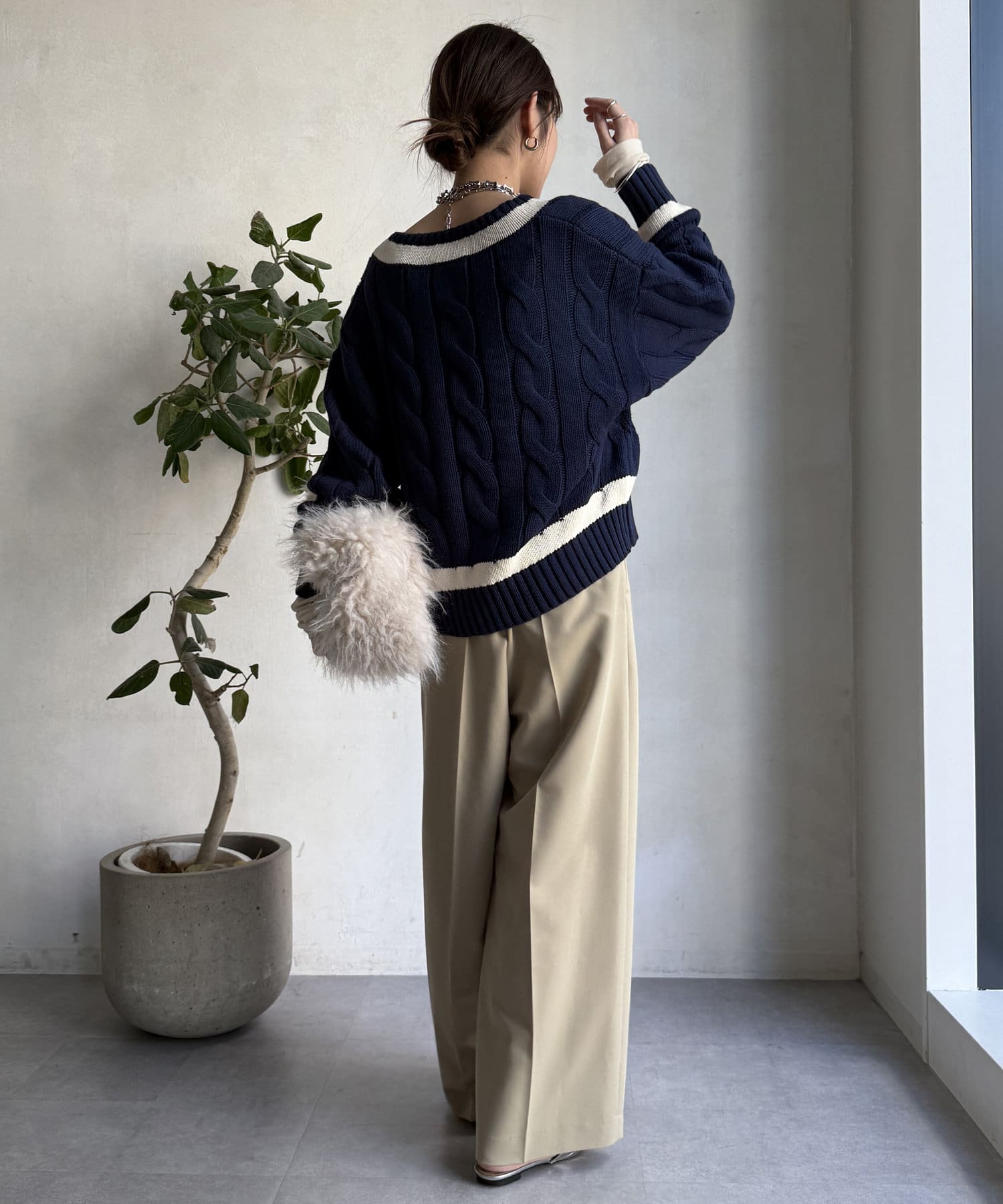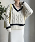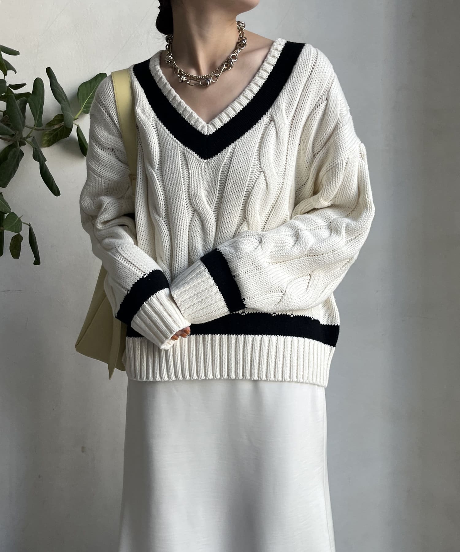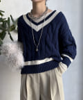 • DOUDOU(ドゥドゥ) 【WEB限定】配色ケーブル編みVプルオーバー