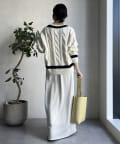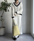 Vネックが顔回りをすっきりと見せてくれて、抜け感をサポート!