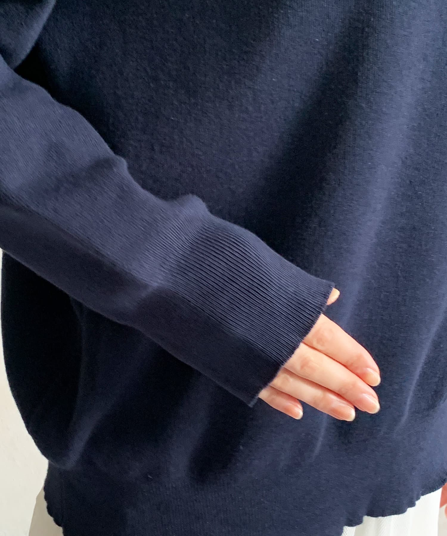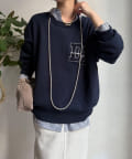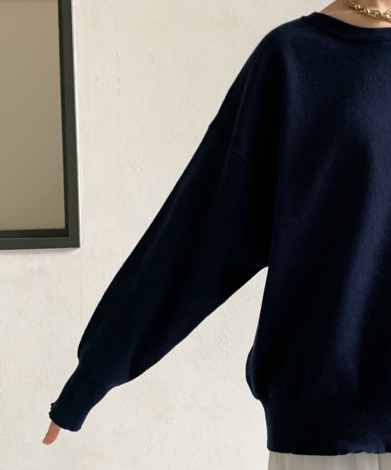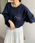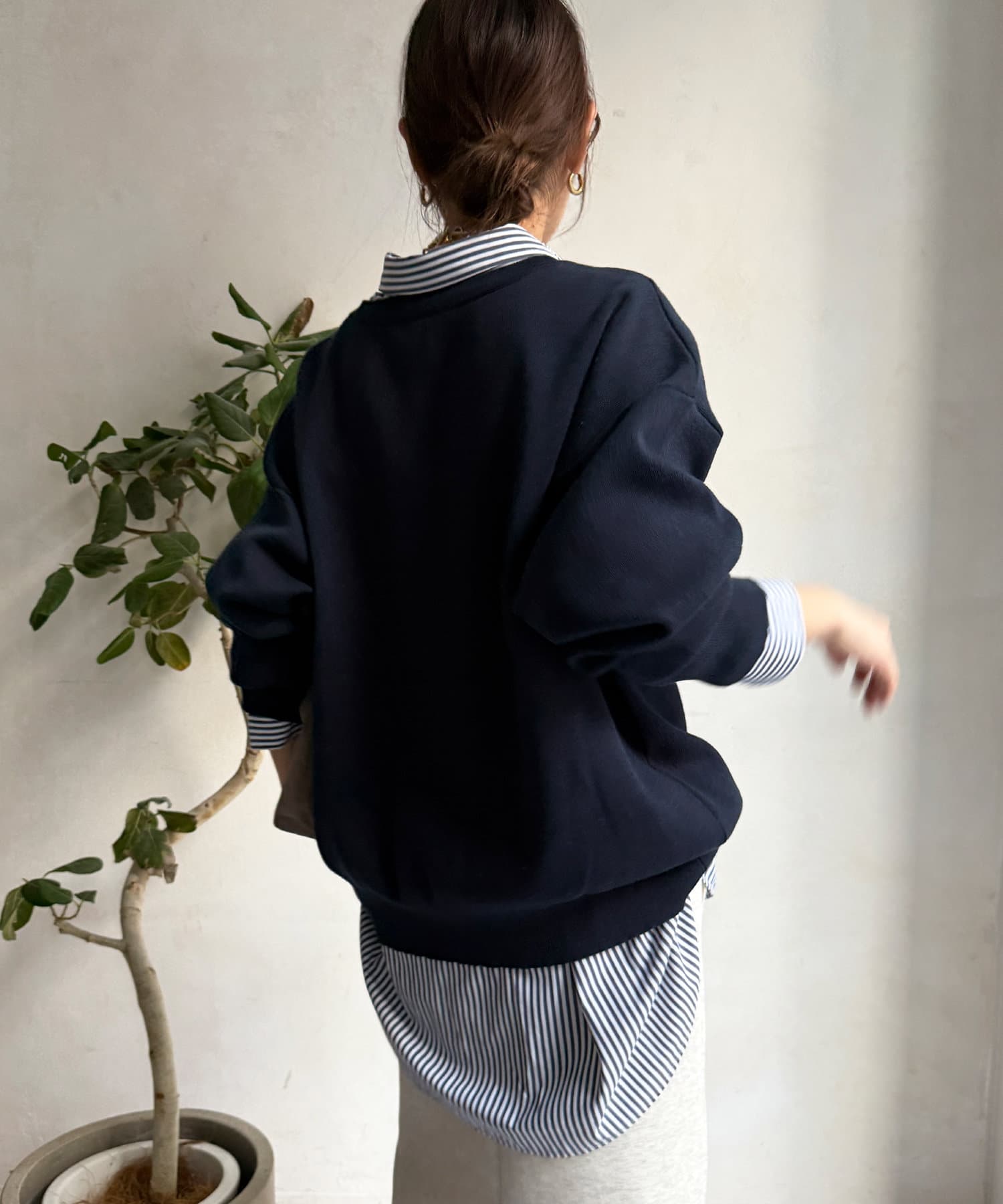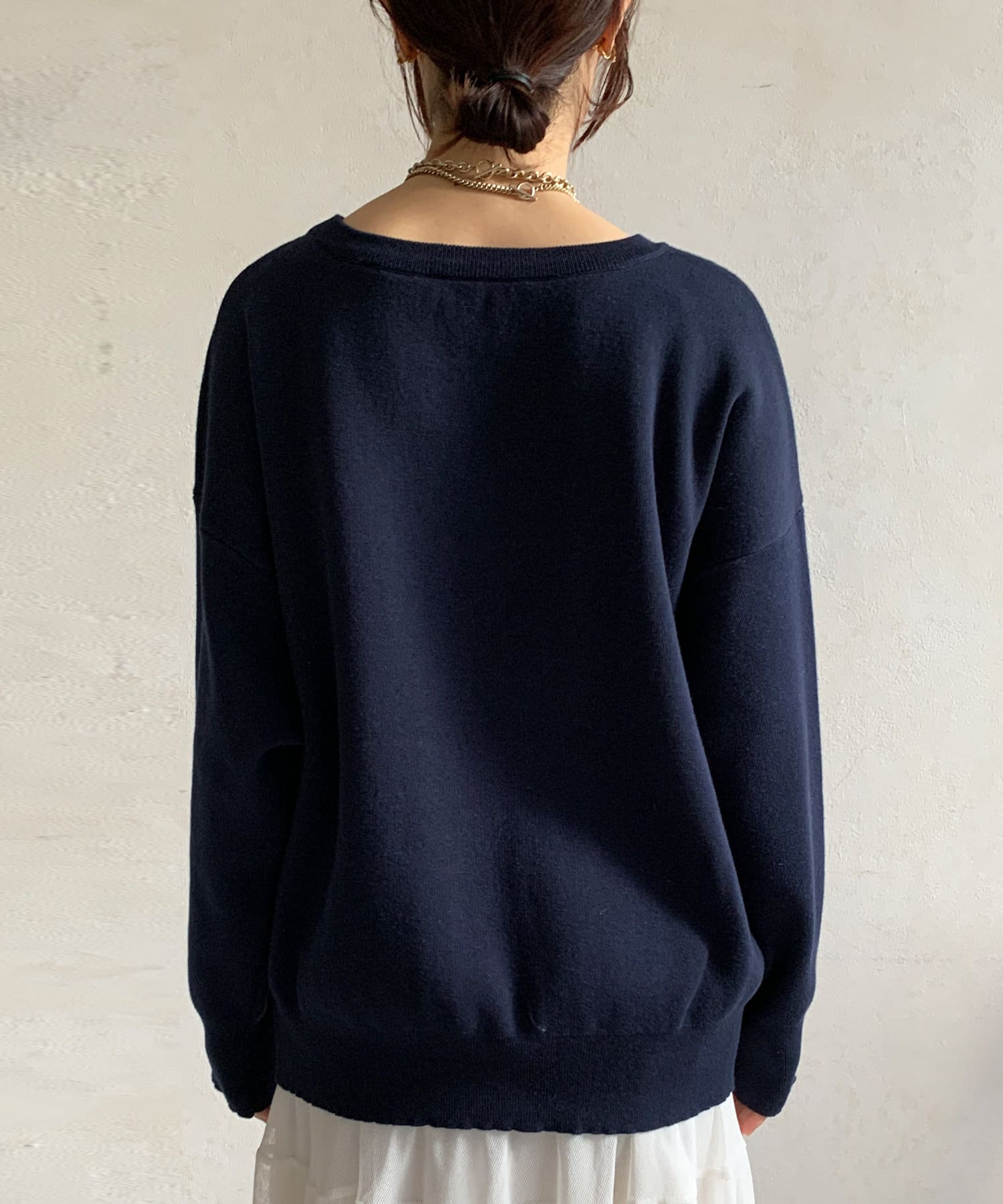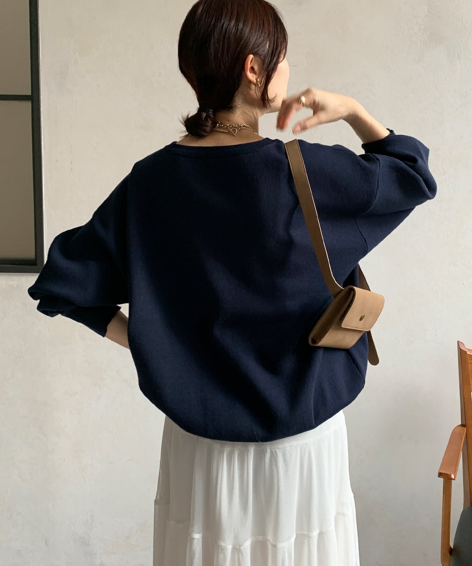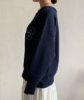 サガラ刺繍のワッペンがワンポイントになってくれるスウェットライクニット。