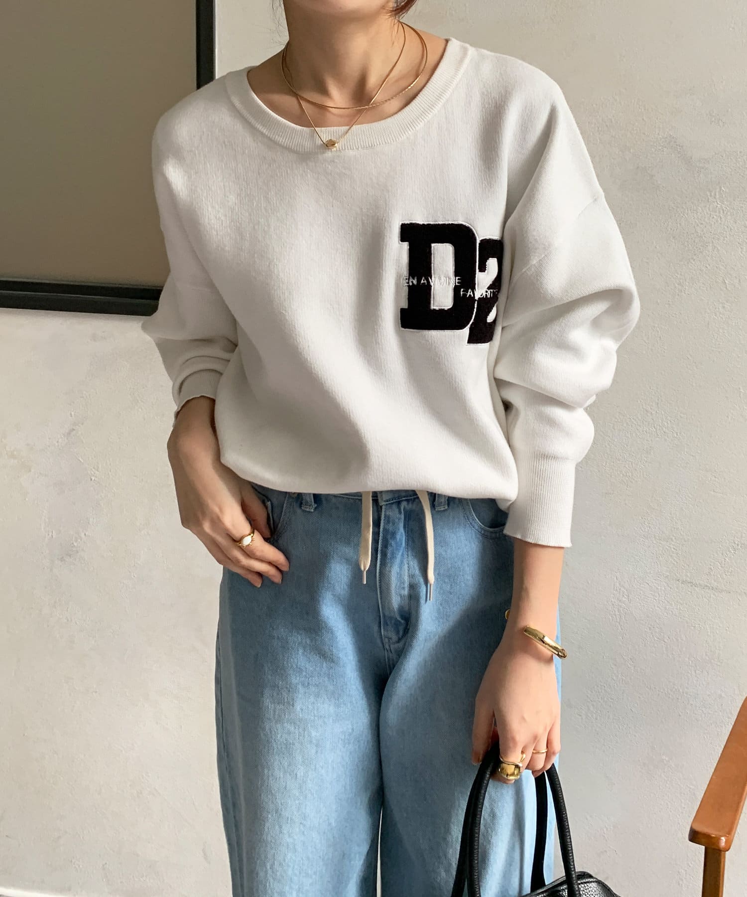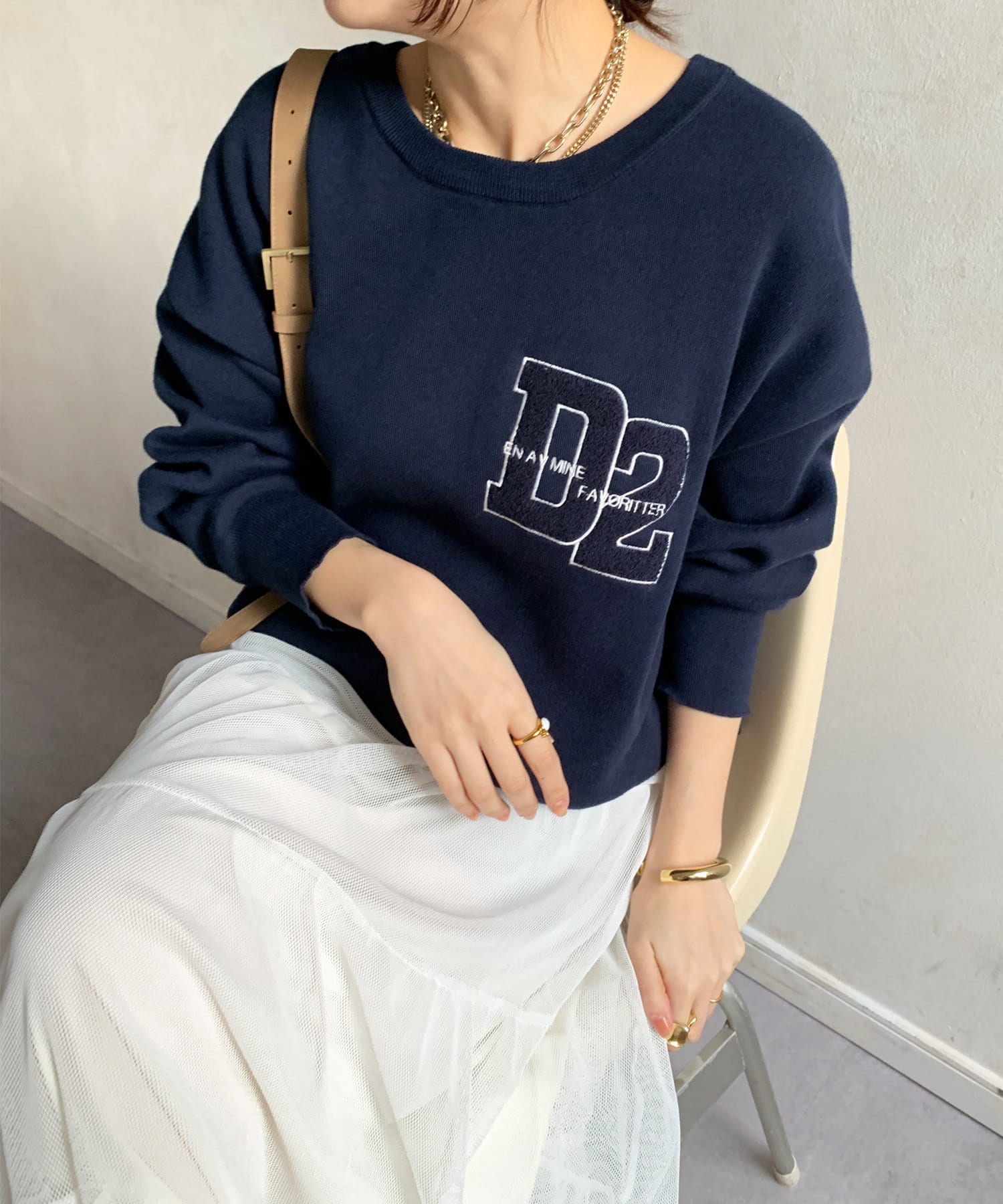 【大人が着られる!】D2ワッペンスウェットライクニット