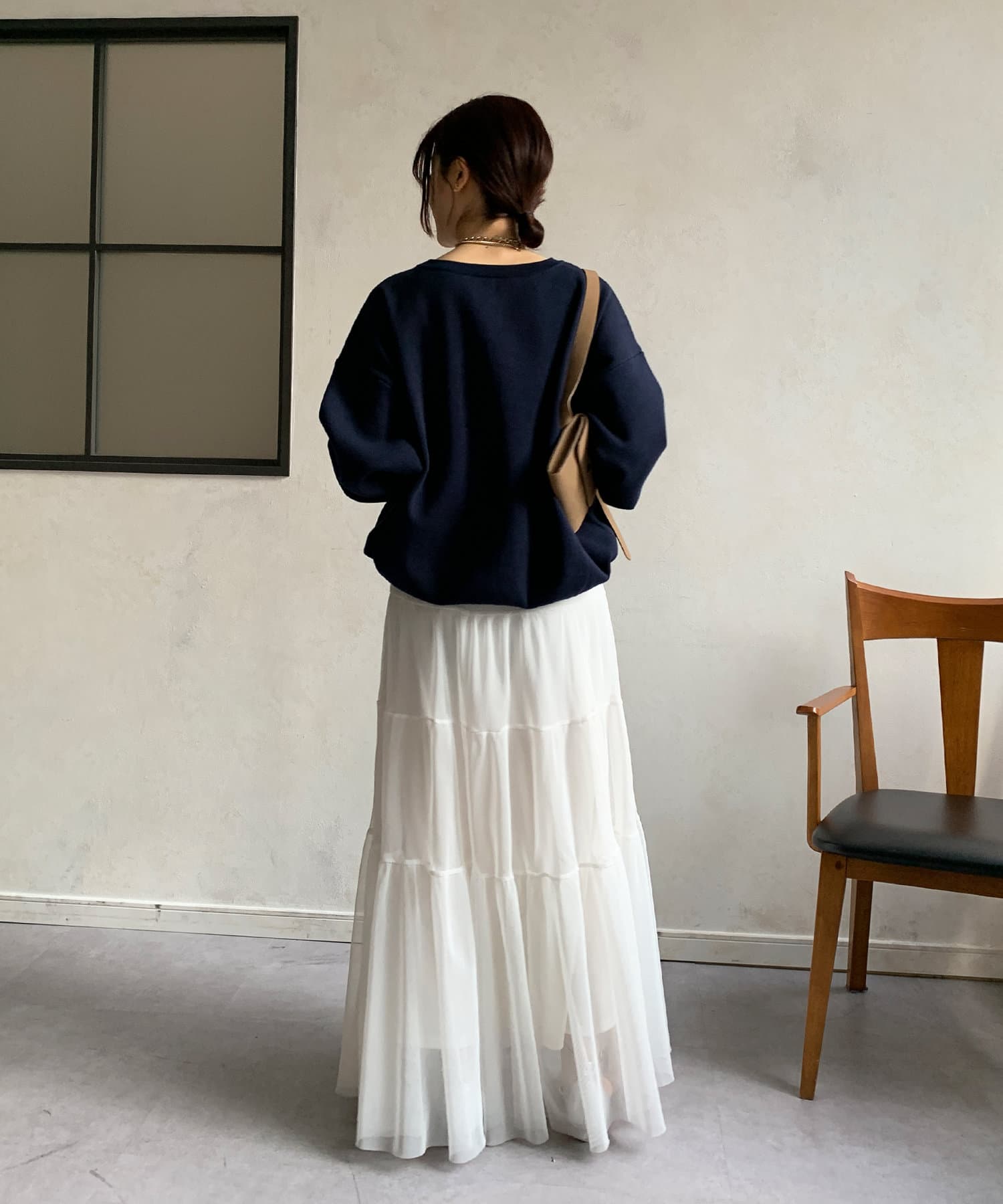 ポリエステルと綿素材のさらりとしたスウェットライクな素材で、ノンストレスな1着。