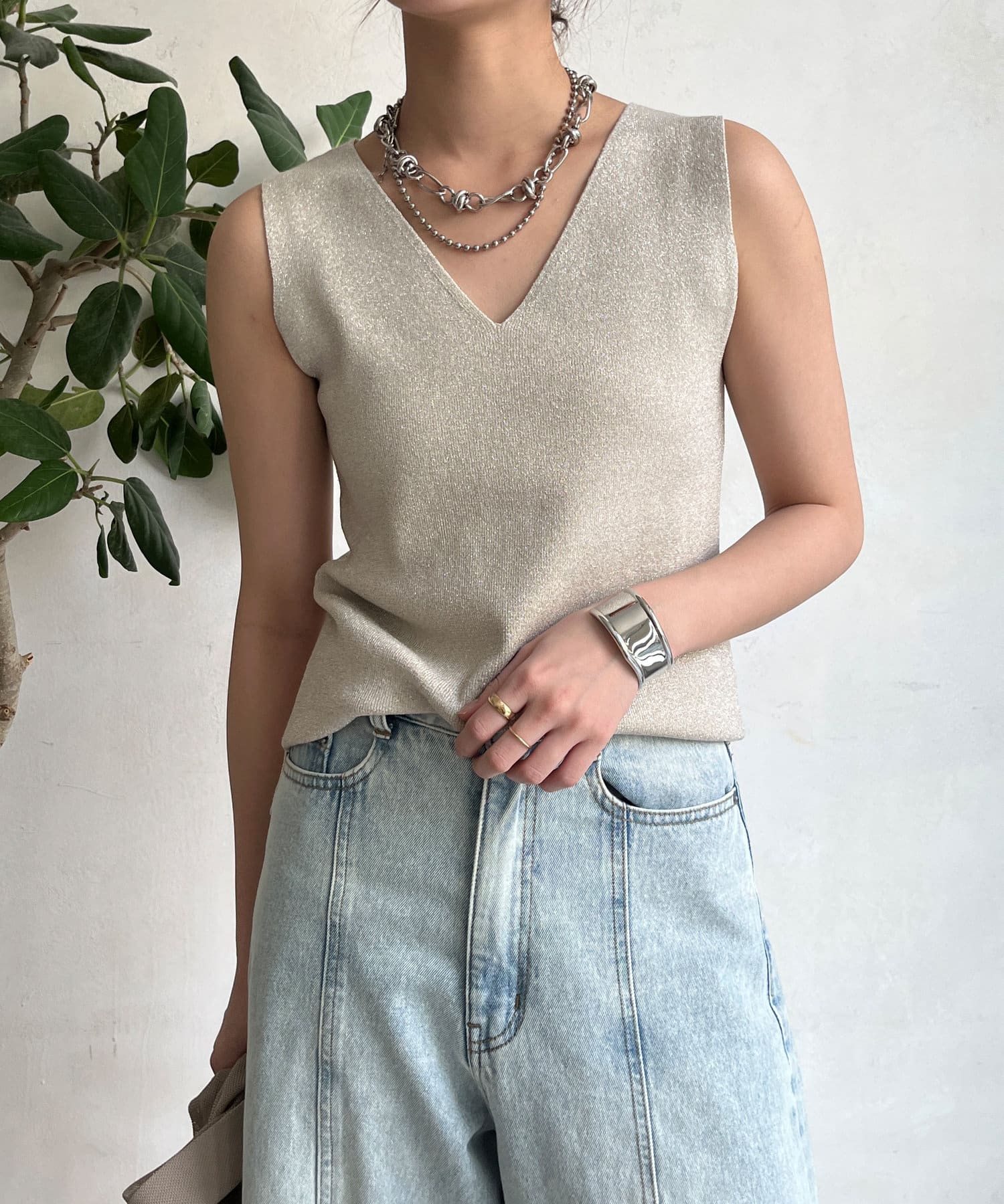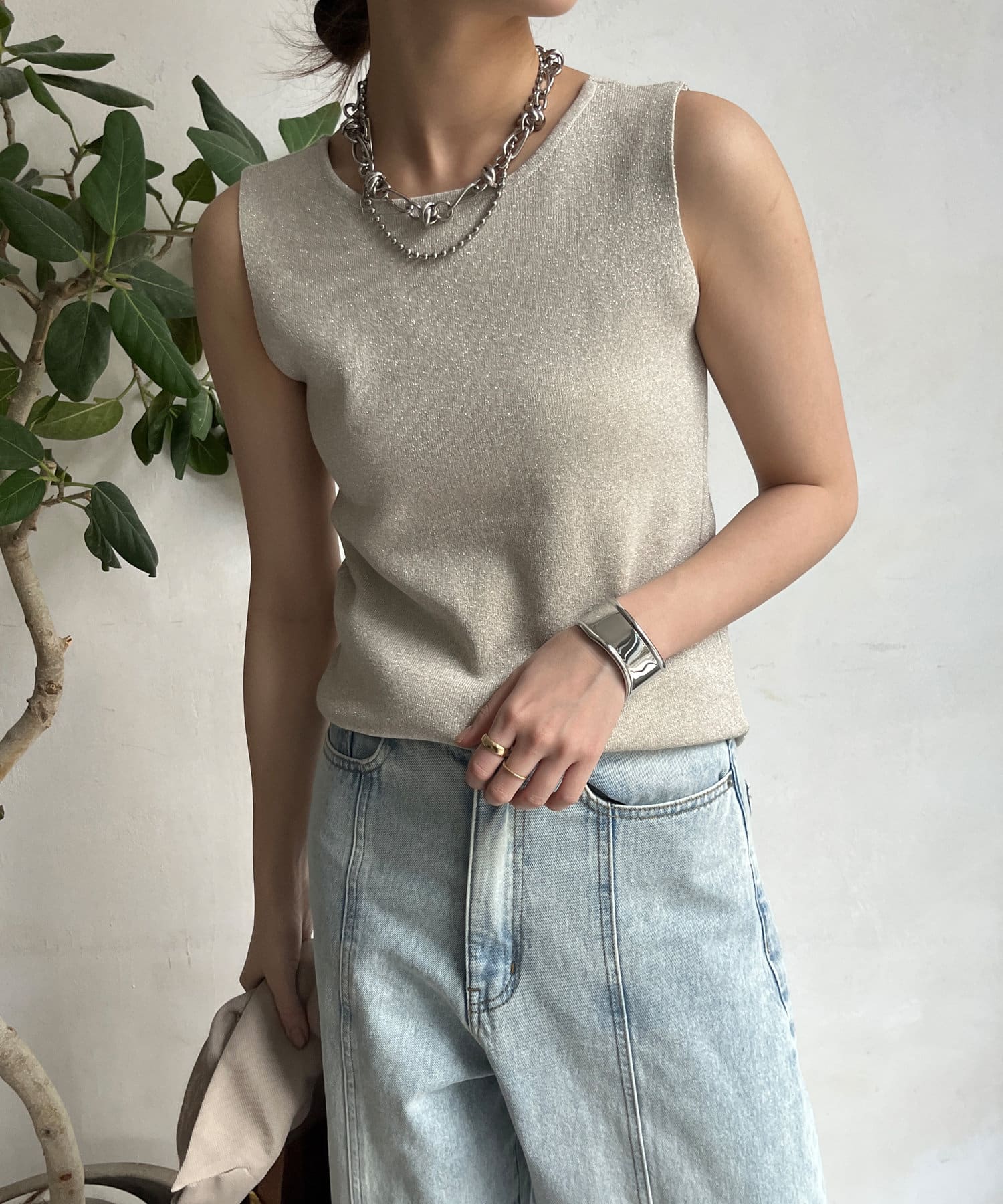 DOUDOU(ドゥドゥ) 前後2WAYラメニットタンク