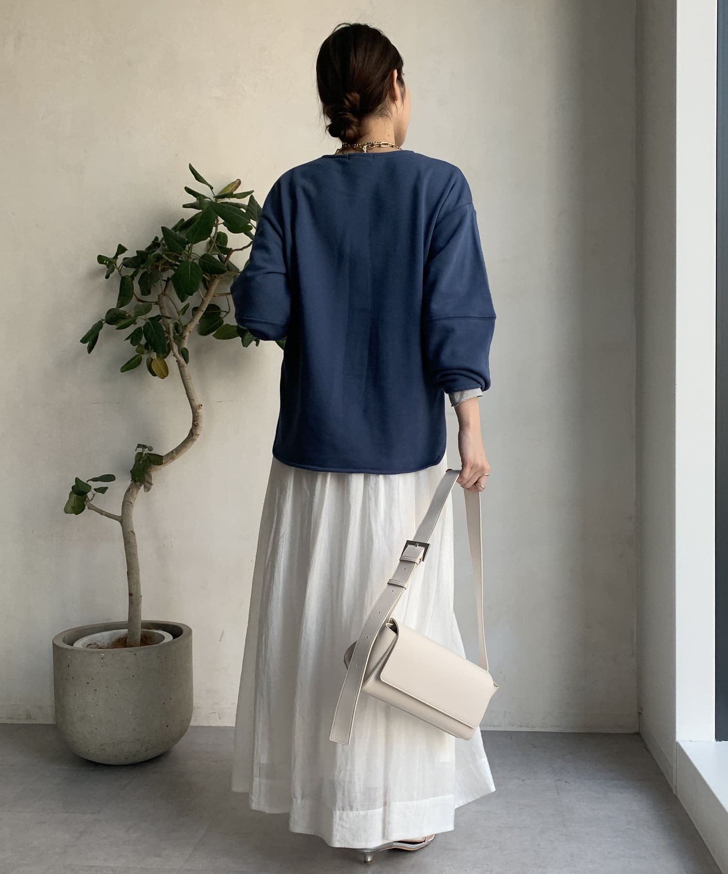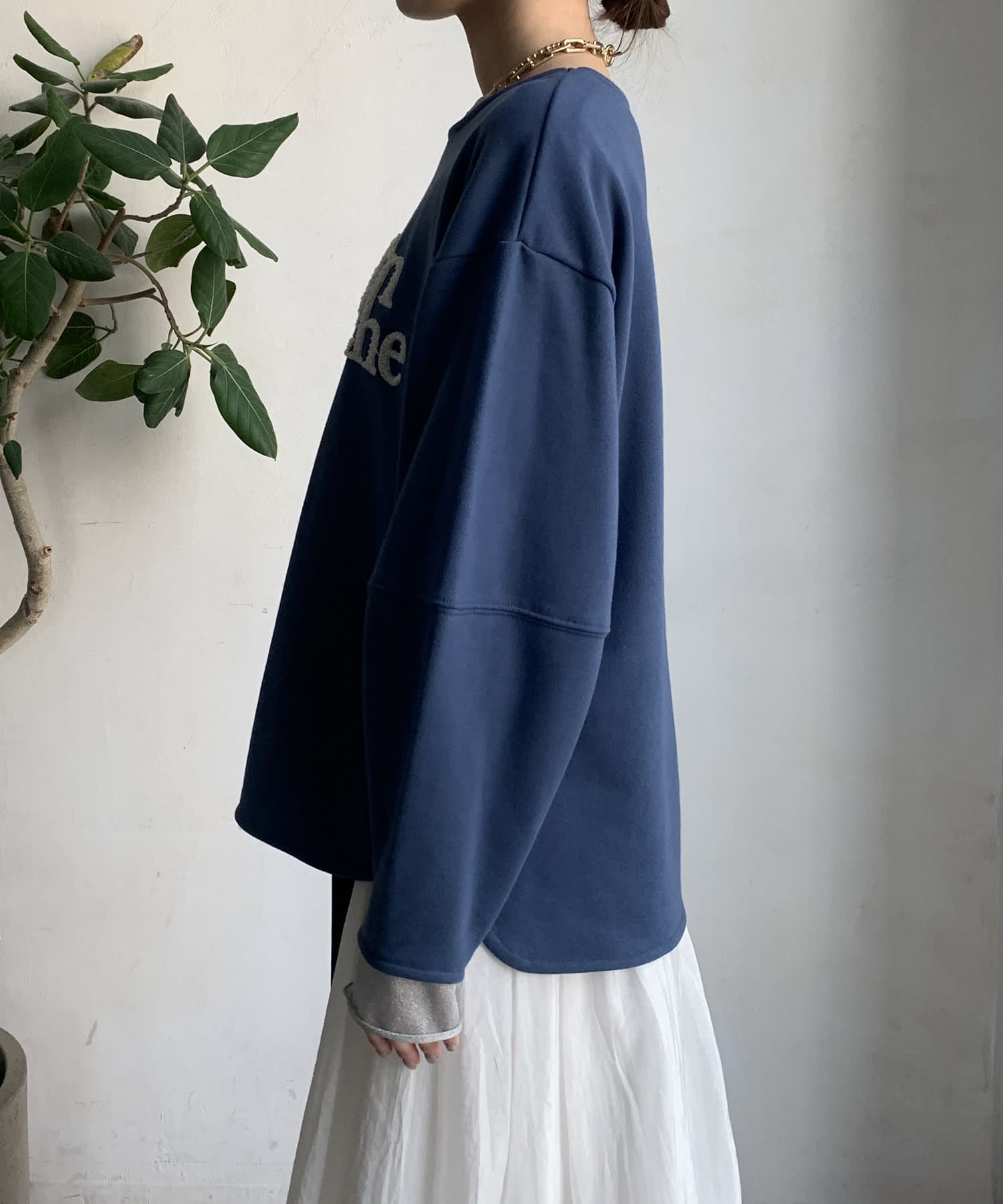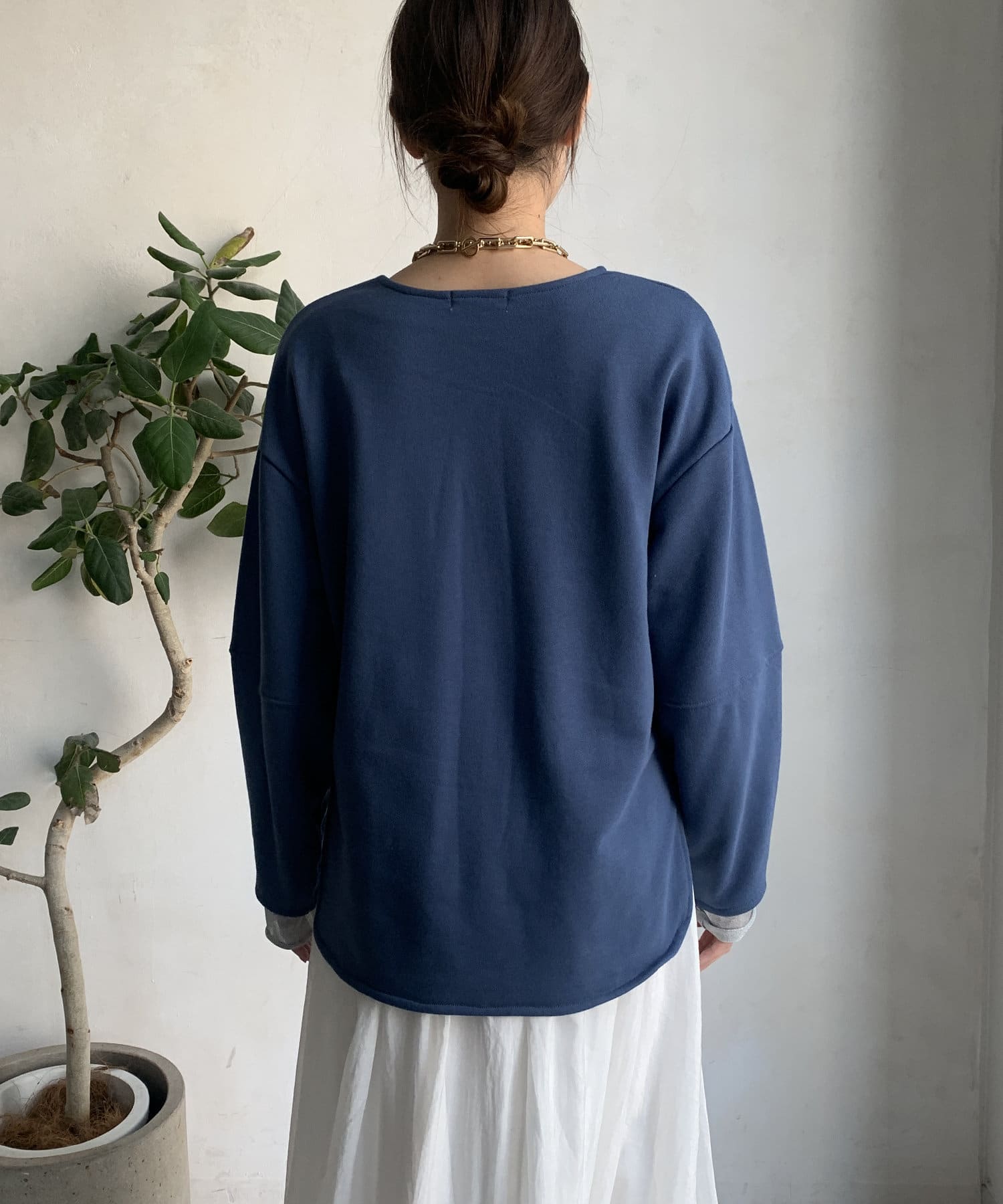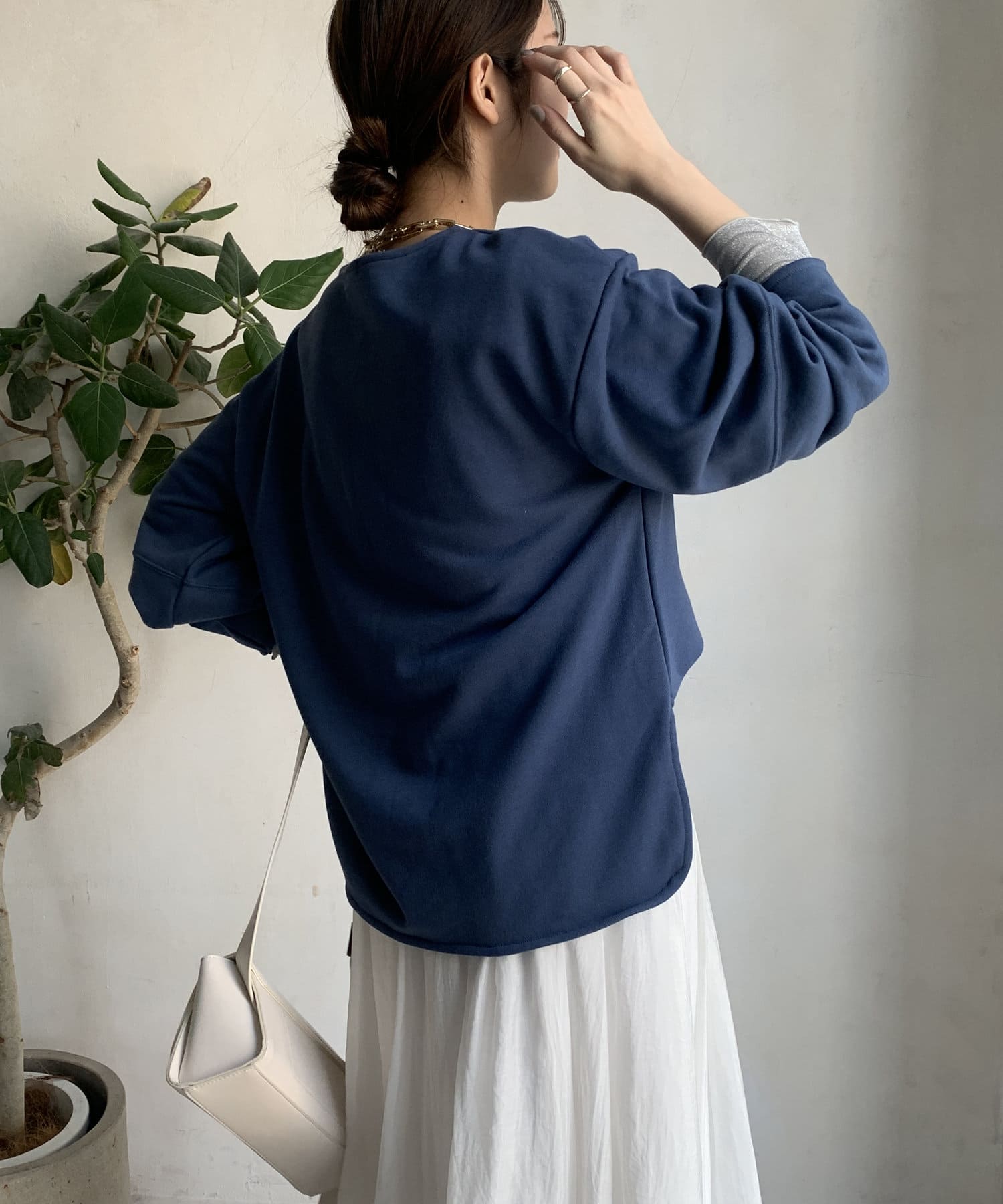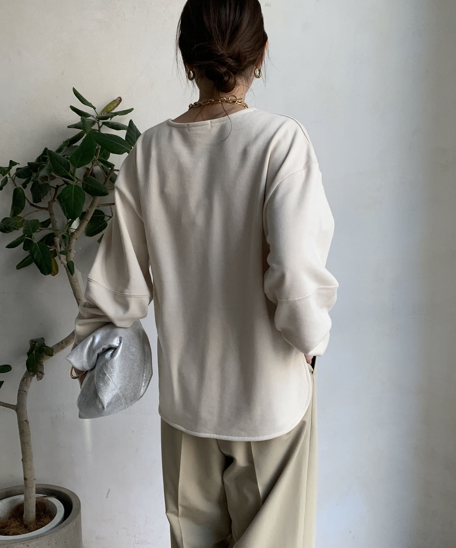 緩やかなネックが首元をすっきりと見せてくれて、女性らしいスタイリングにしてくれます!