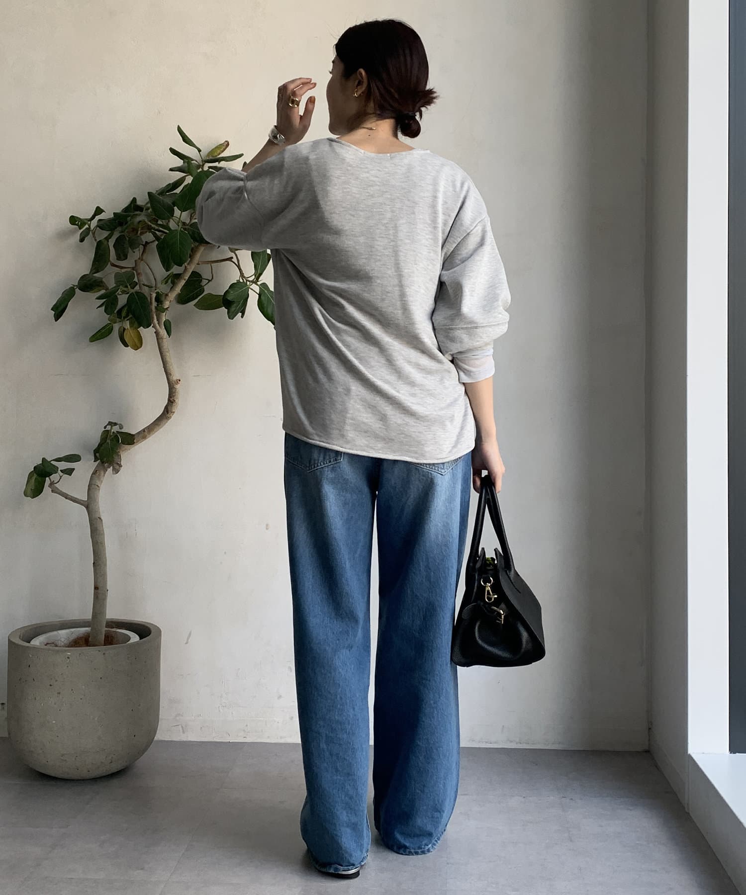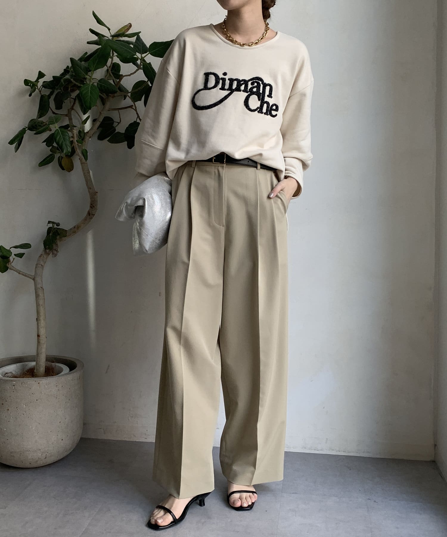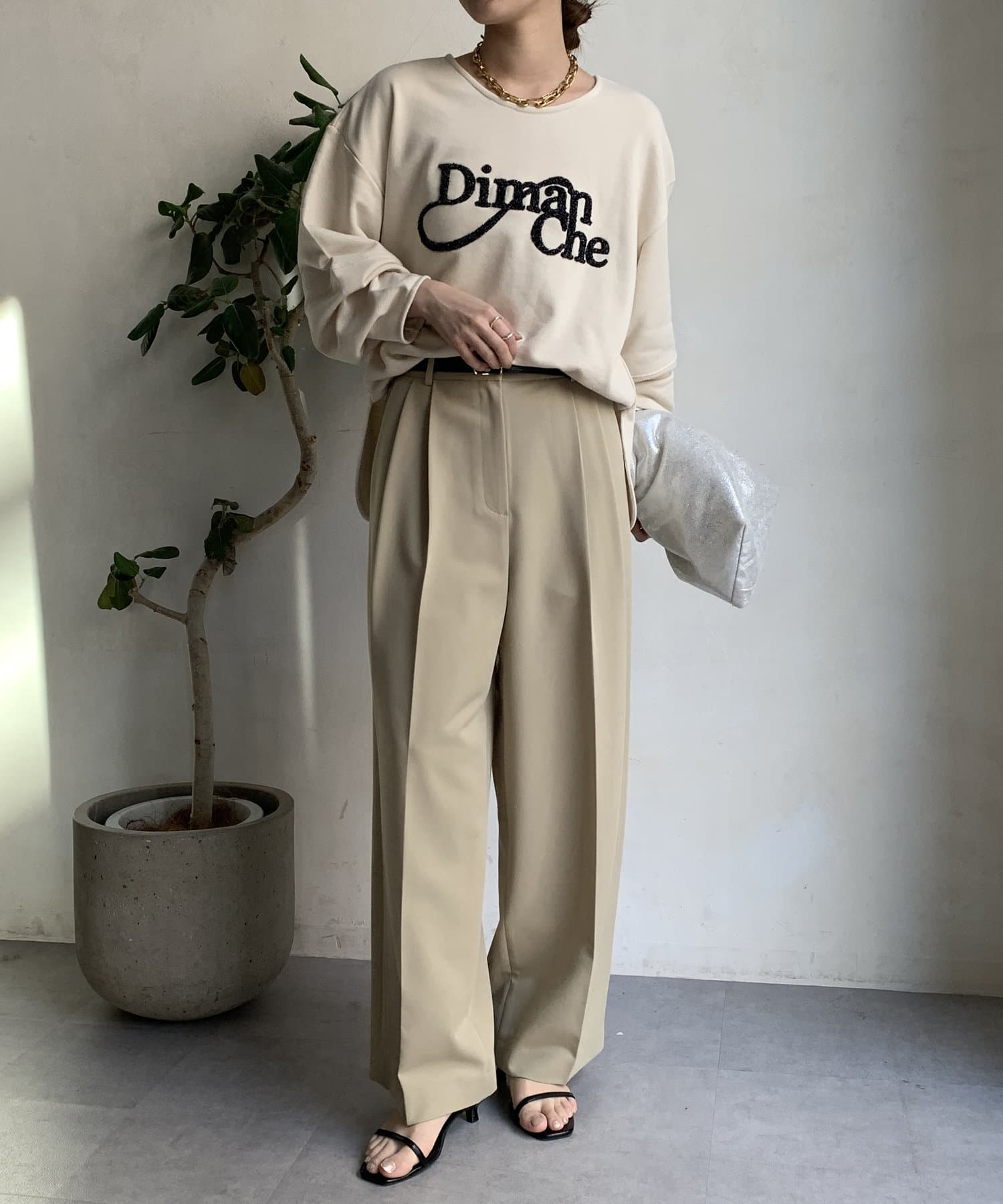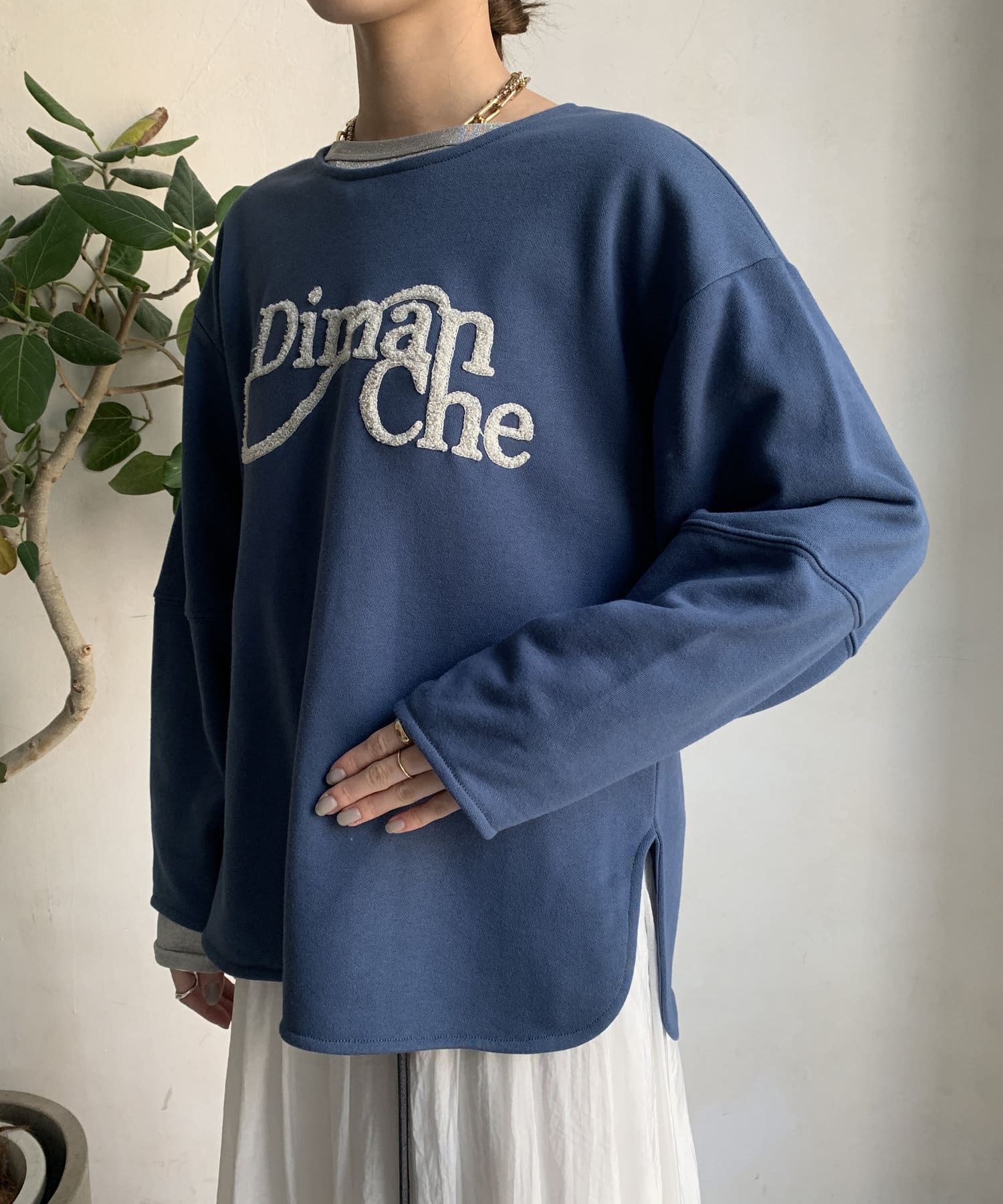 緩やかなネックが首元をすっきりと見せてくれて、女性らしいスタイリングにしてくれます!