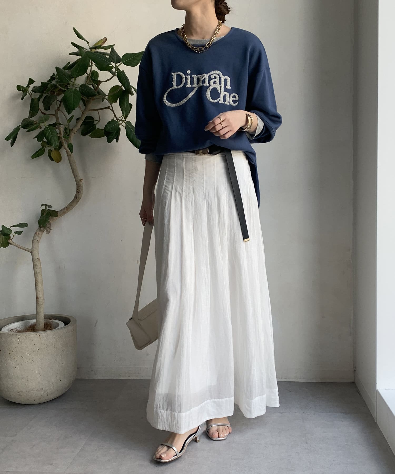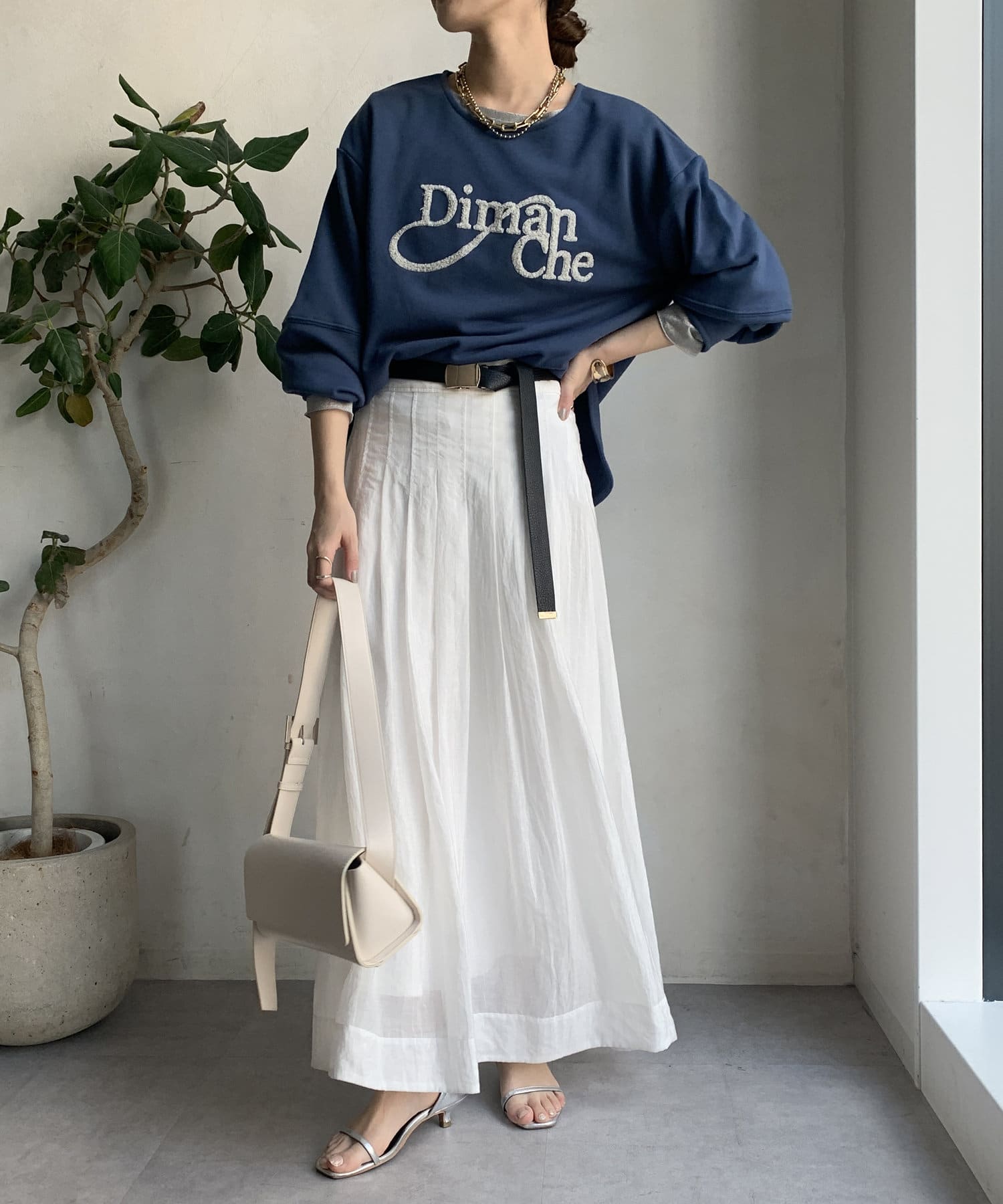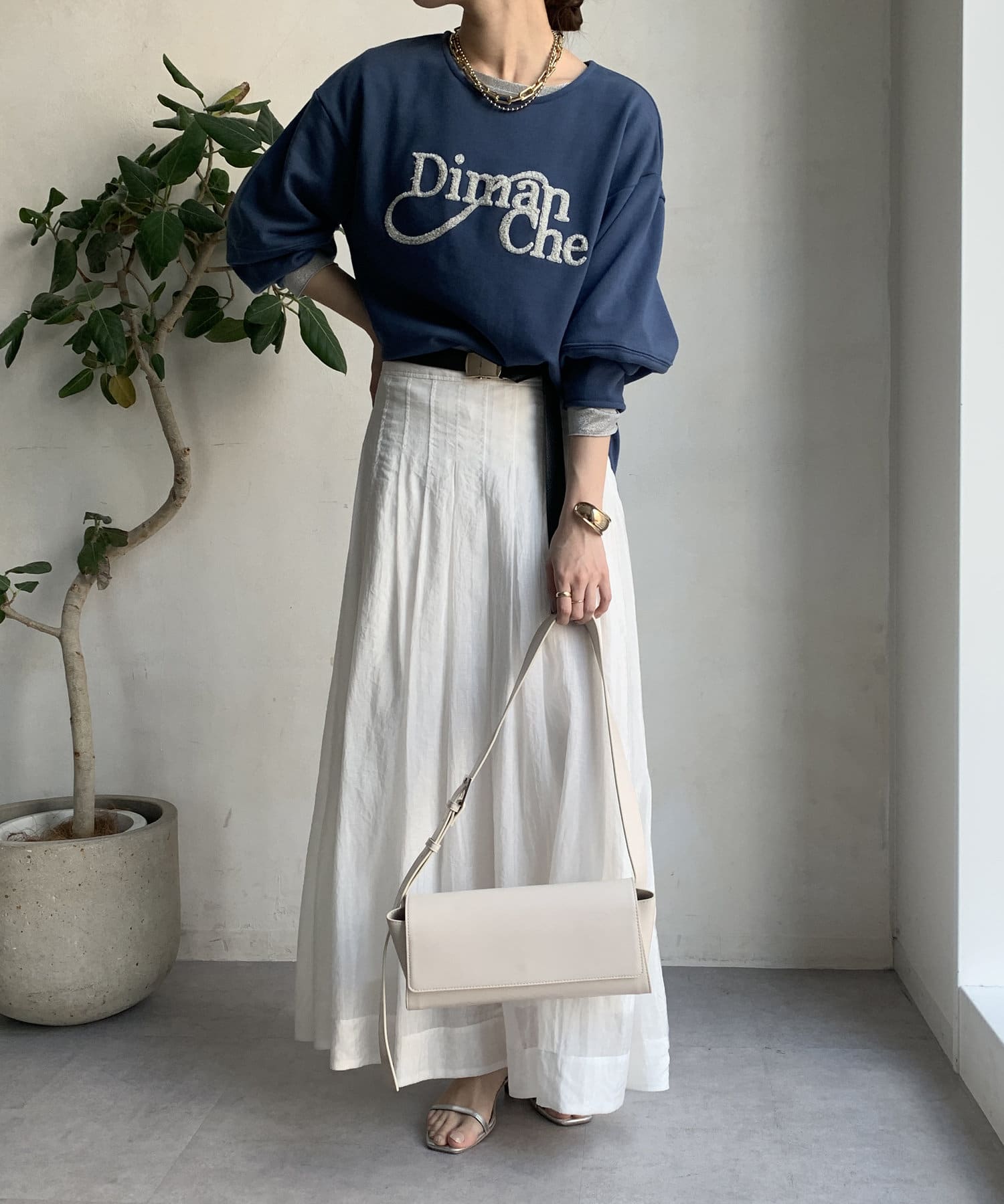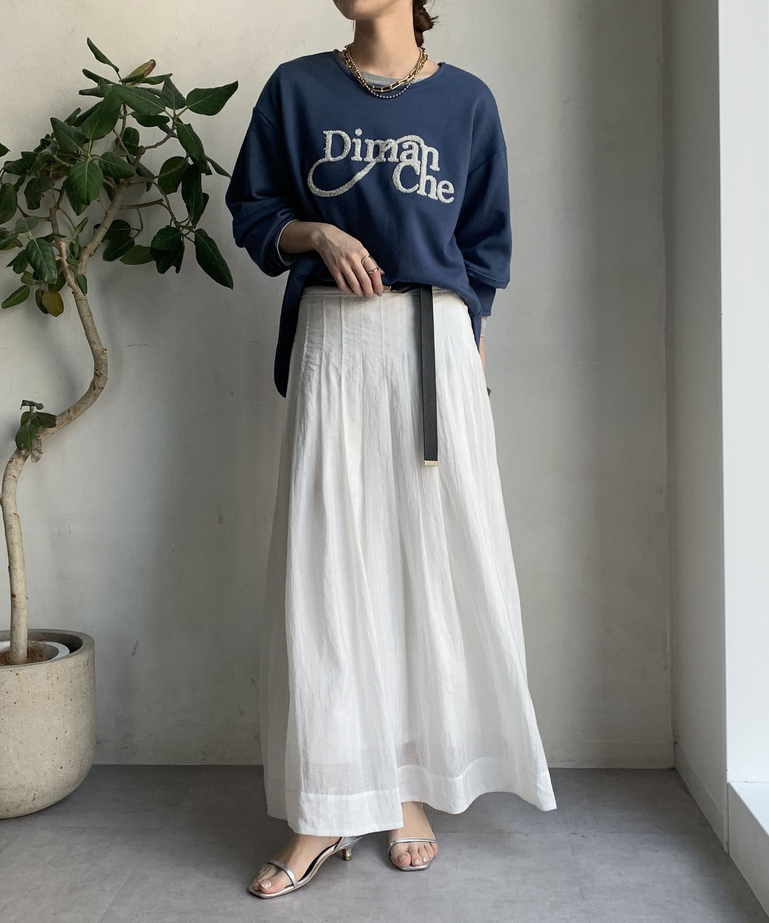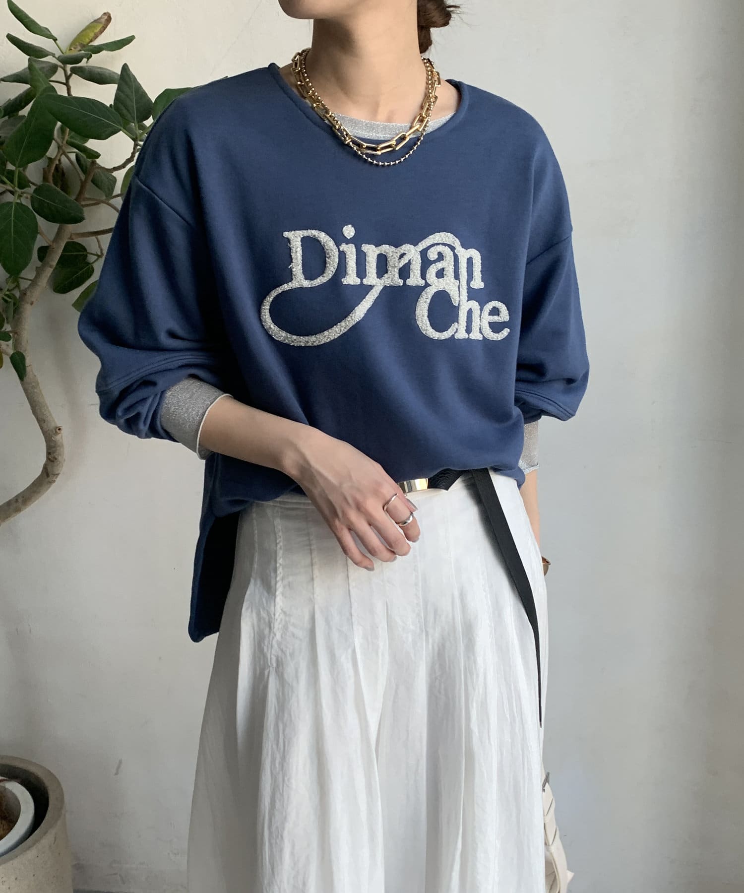 緩やかなネックが首元をすっきりと見せてくれて、女性らしいスタイリングにしてくれます!