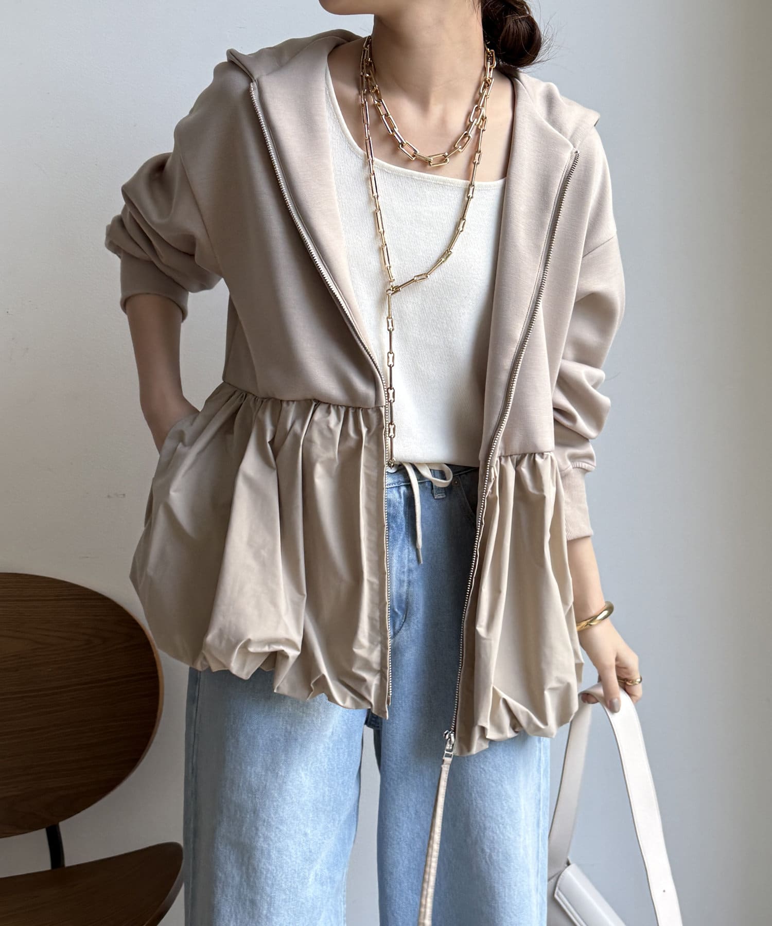 ペプラムデザインでボリューム感がスタイリングの主役級になるアイテムです。