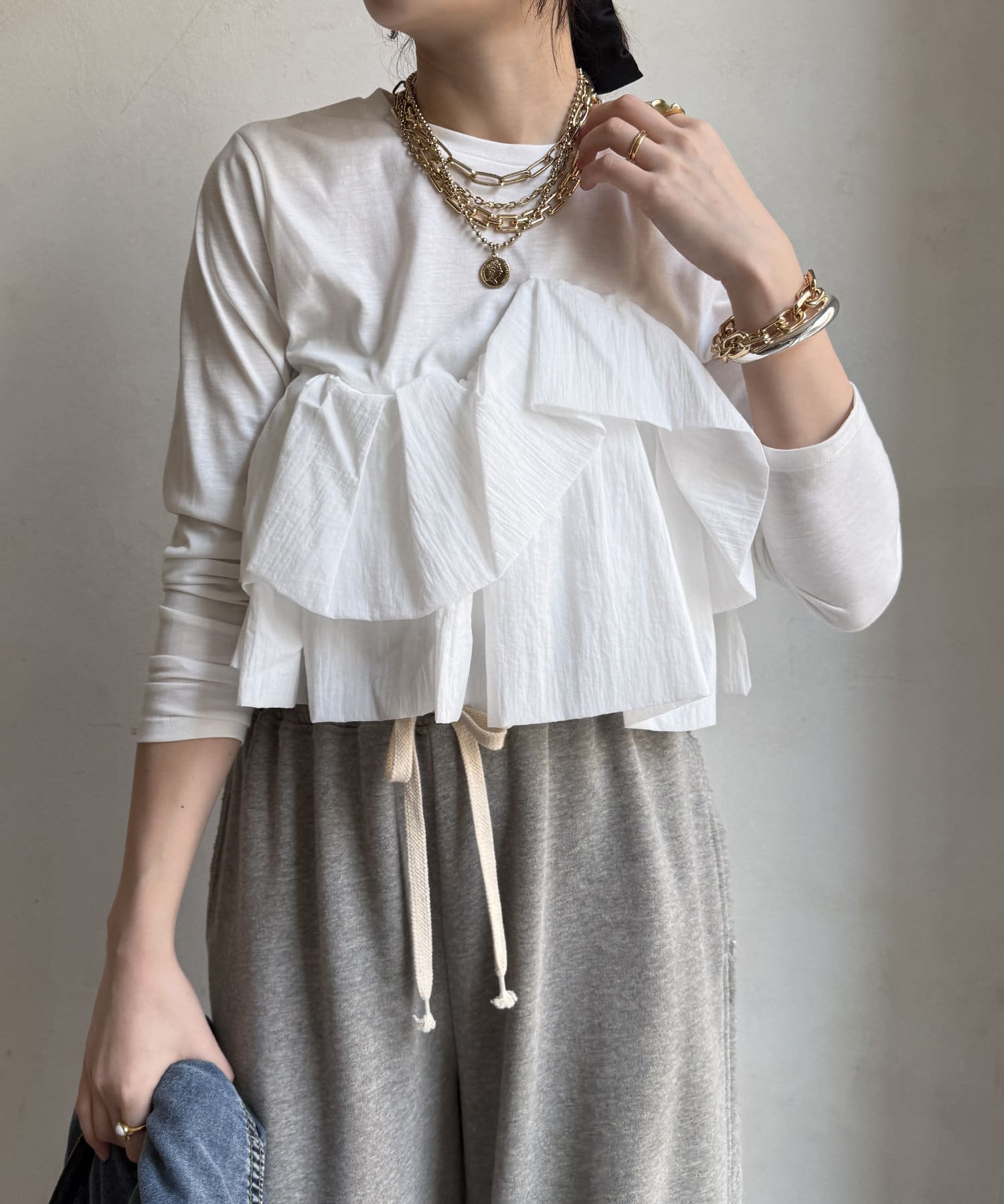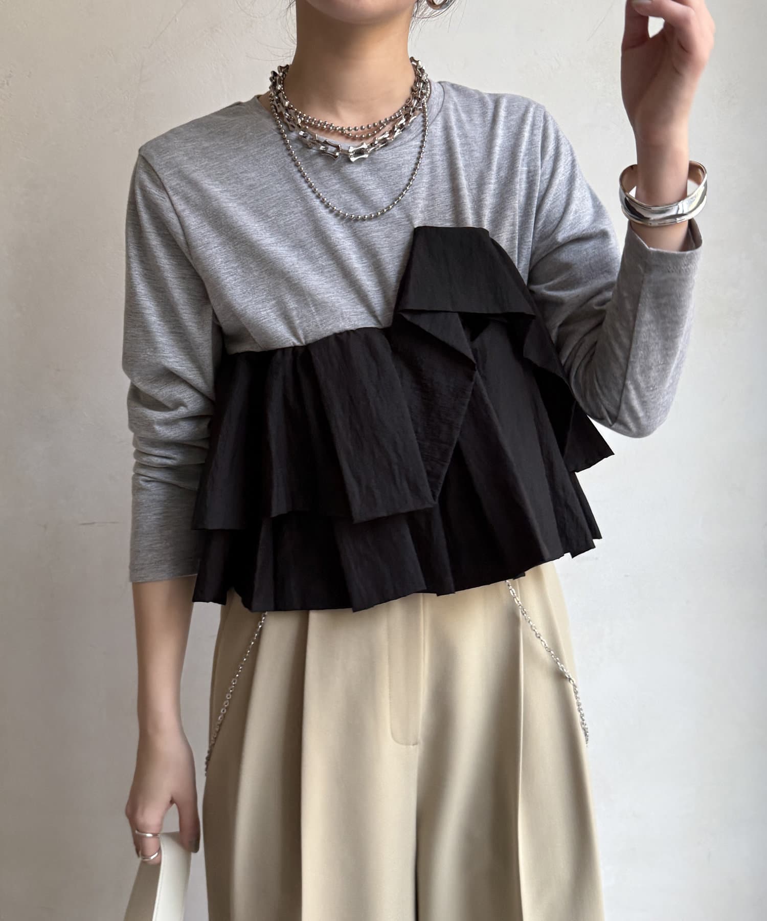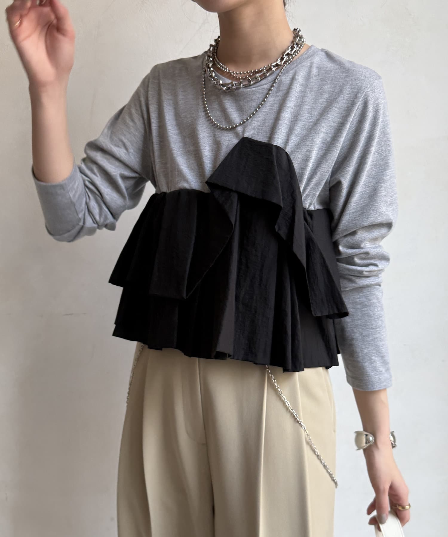 TOP > DOUDOU > レディース > トップス > Tシャツ/カットソー > 【WEB限定】 フリルビスチェドッキングトップス