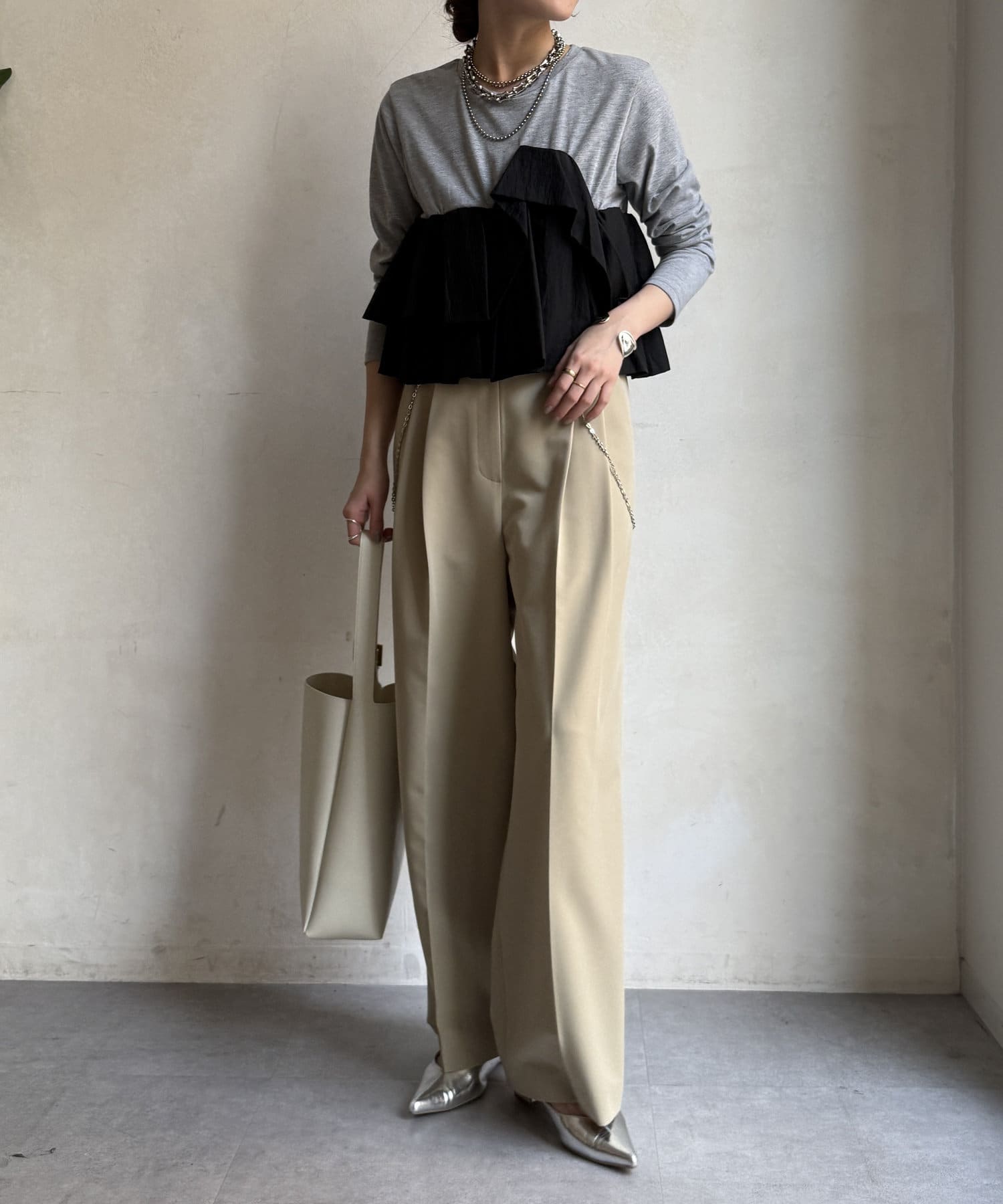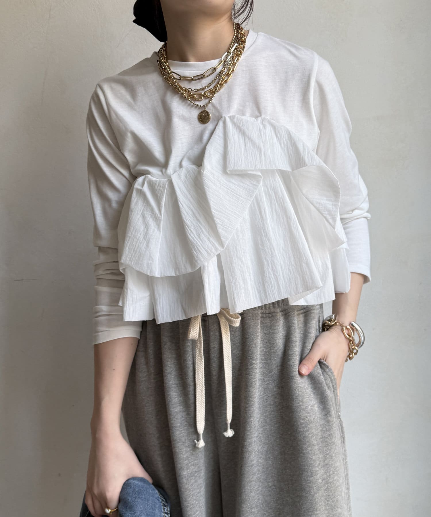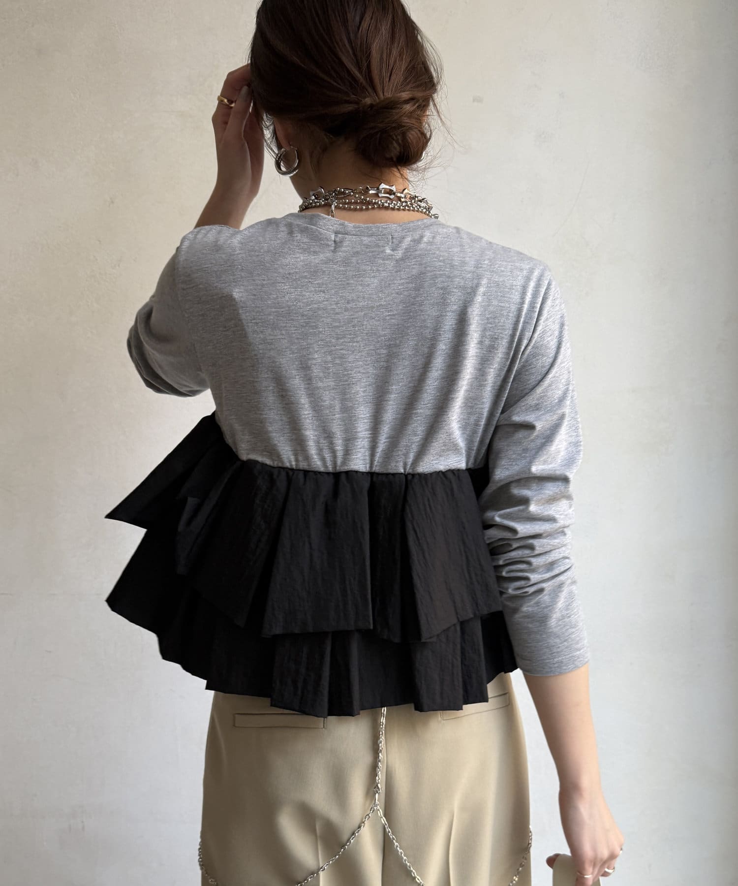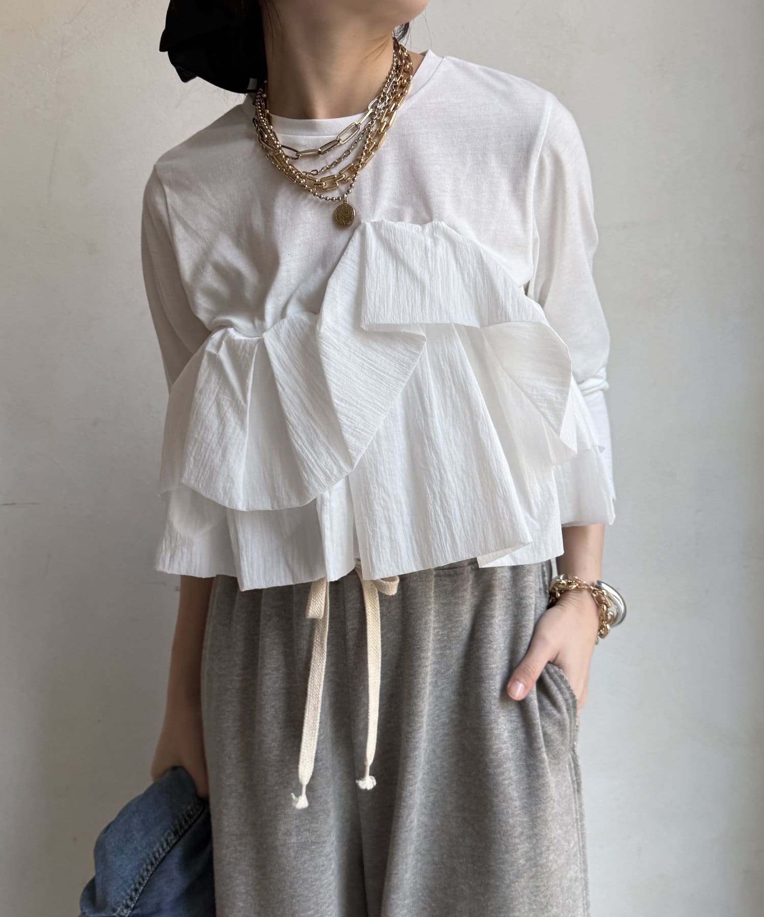 TOP > DOUDOU > レディース > トップス > Tシャツ/カットソー > 【WEB限定】 フリルビスチェドッキングトップス