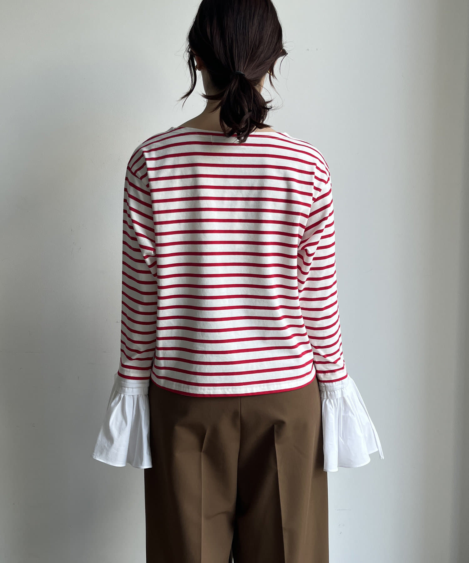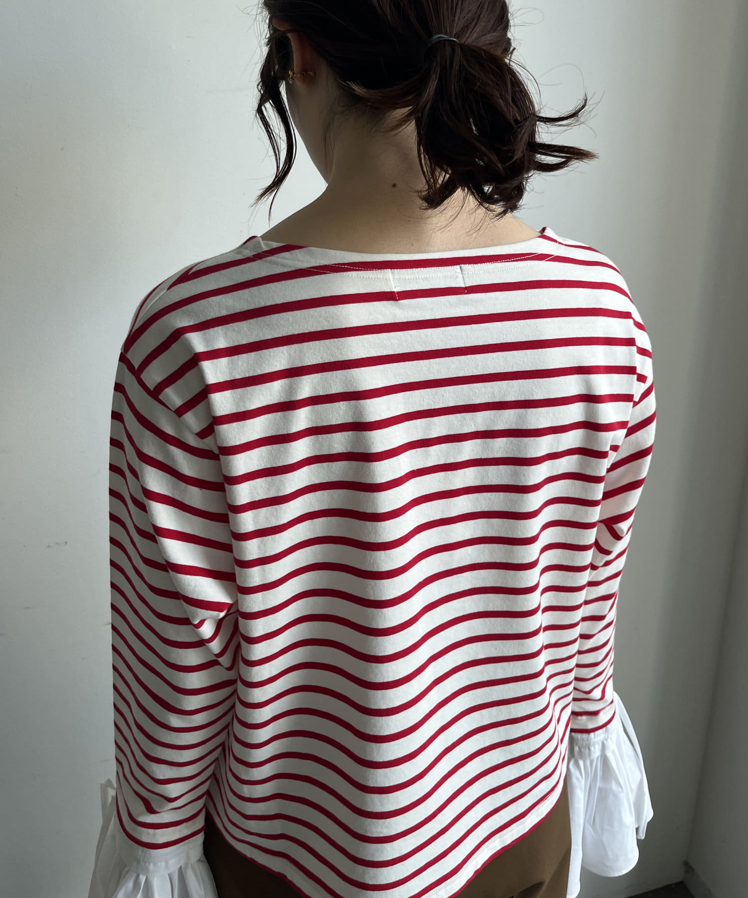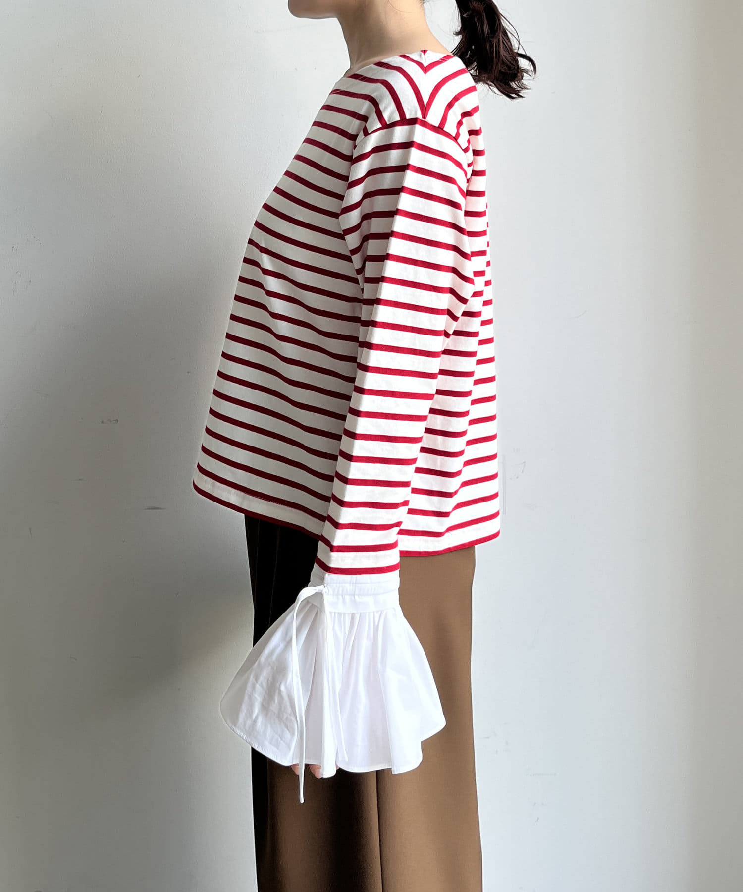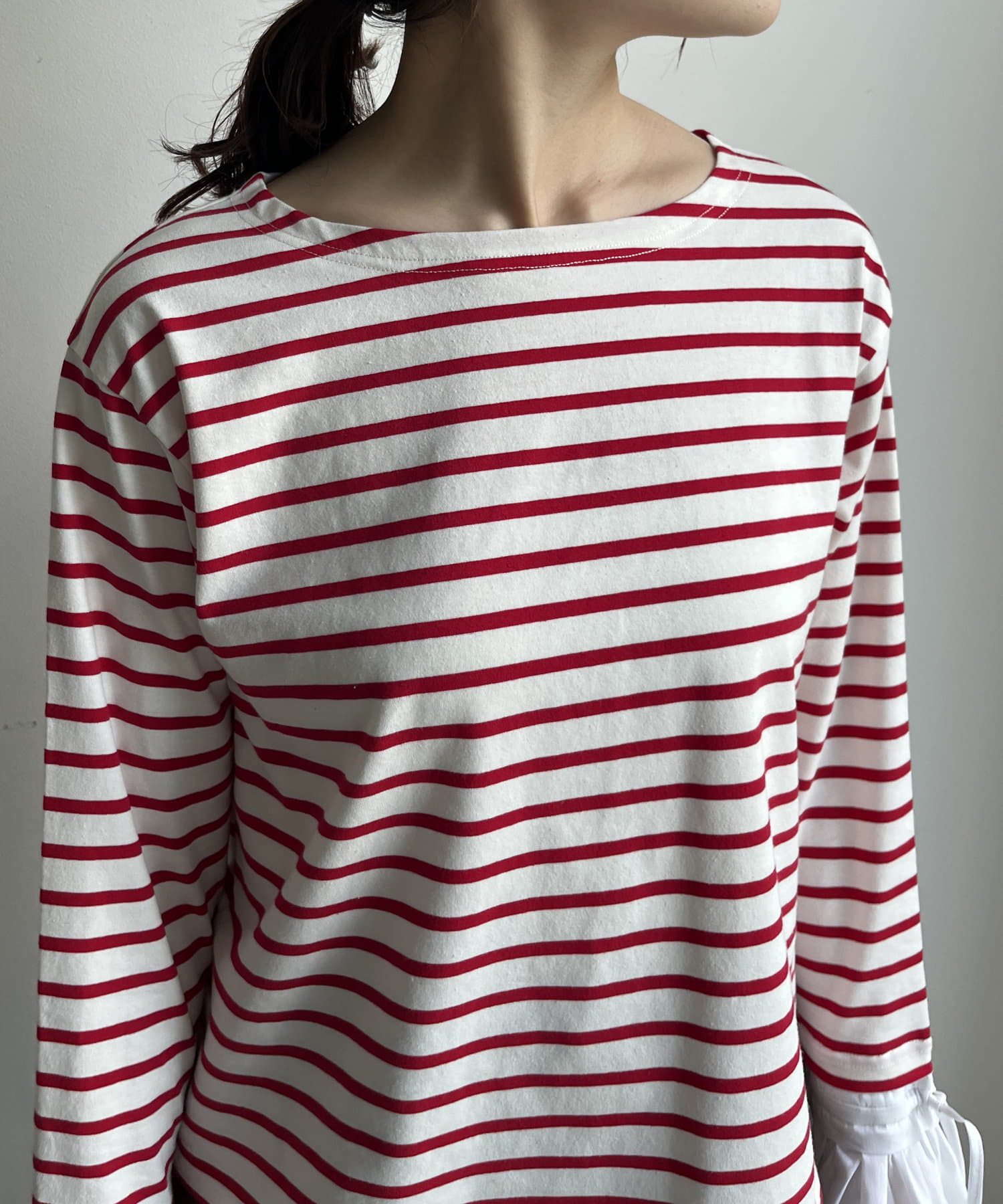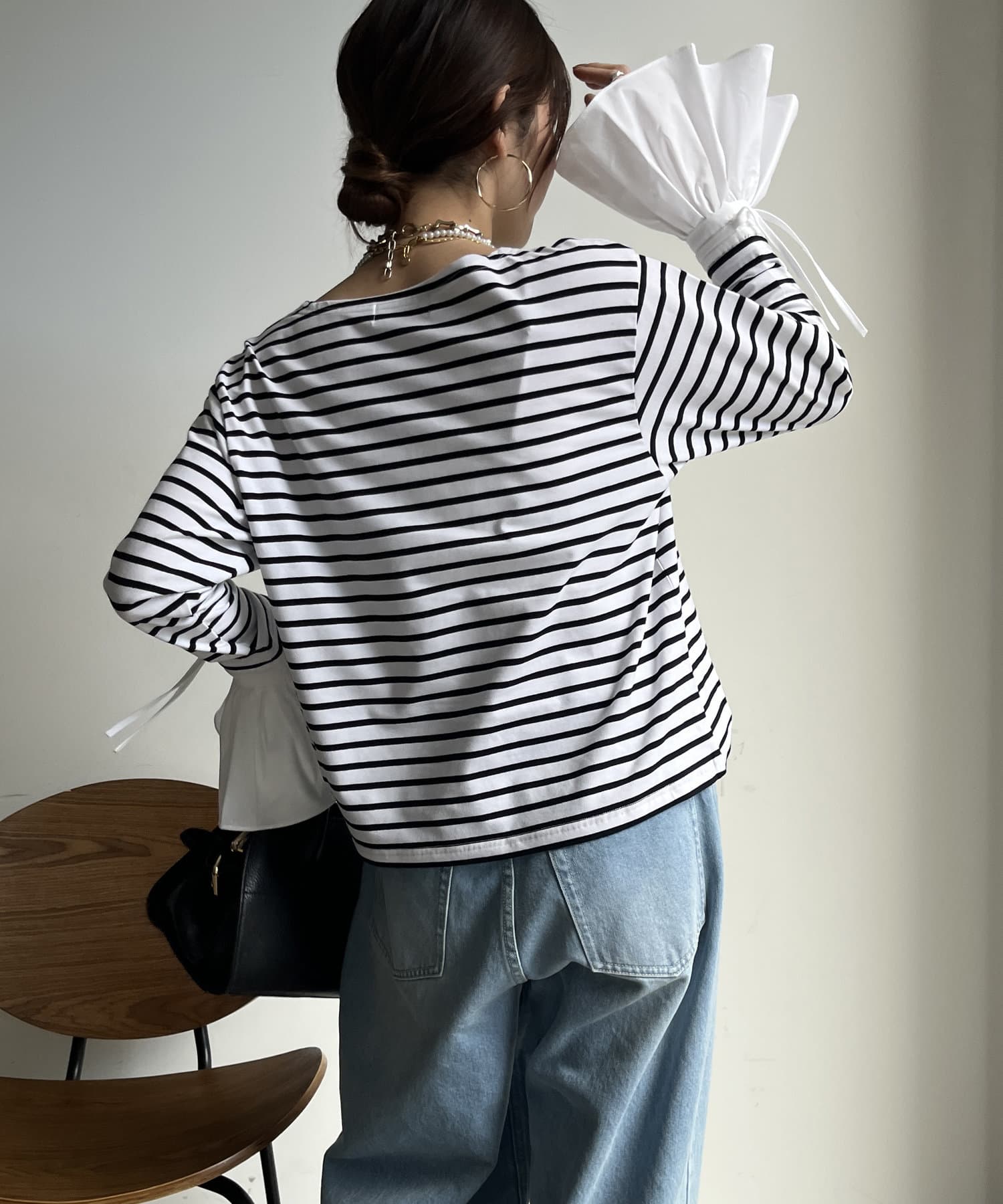 DOUDOU(ドゥドゥ) 【WEB限定】シャツスリーブボーダープルオーバー