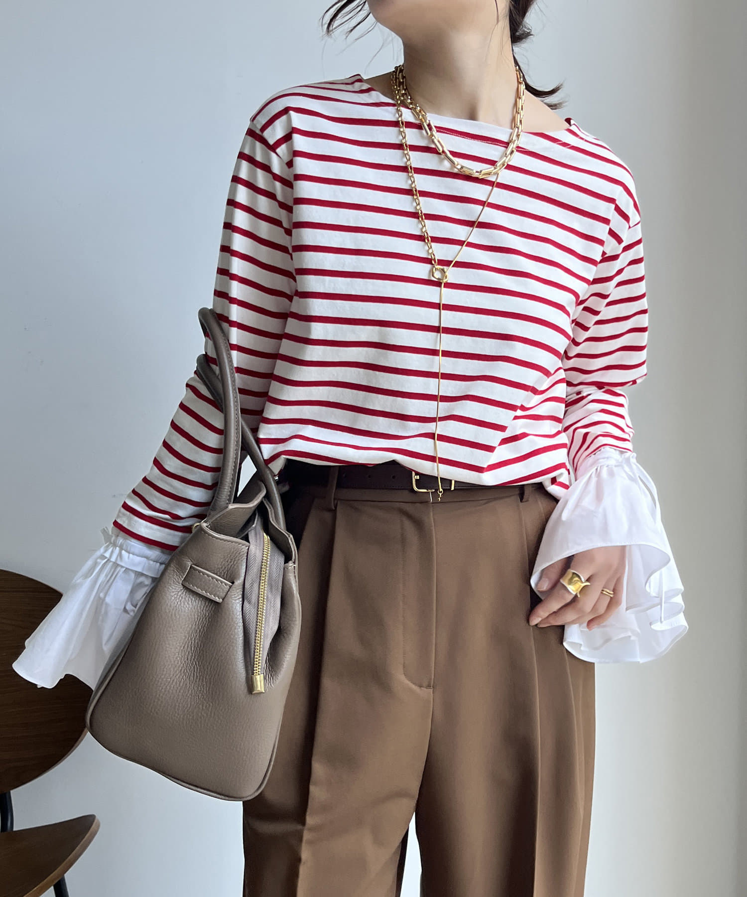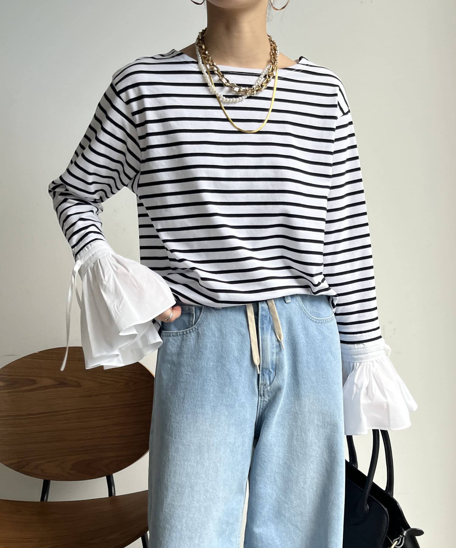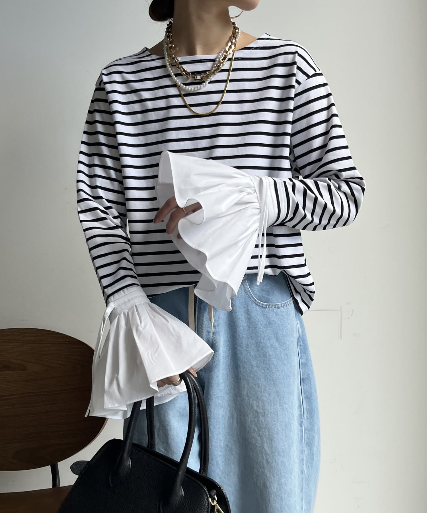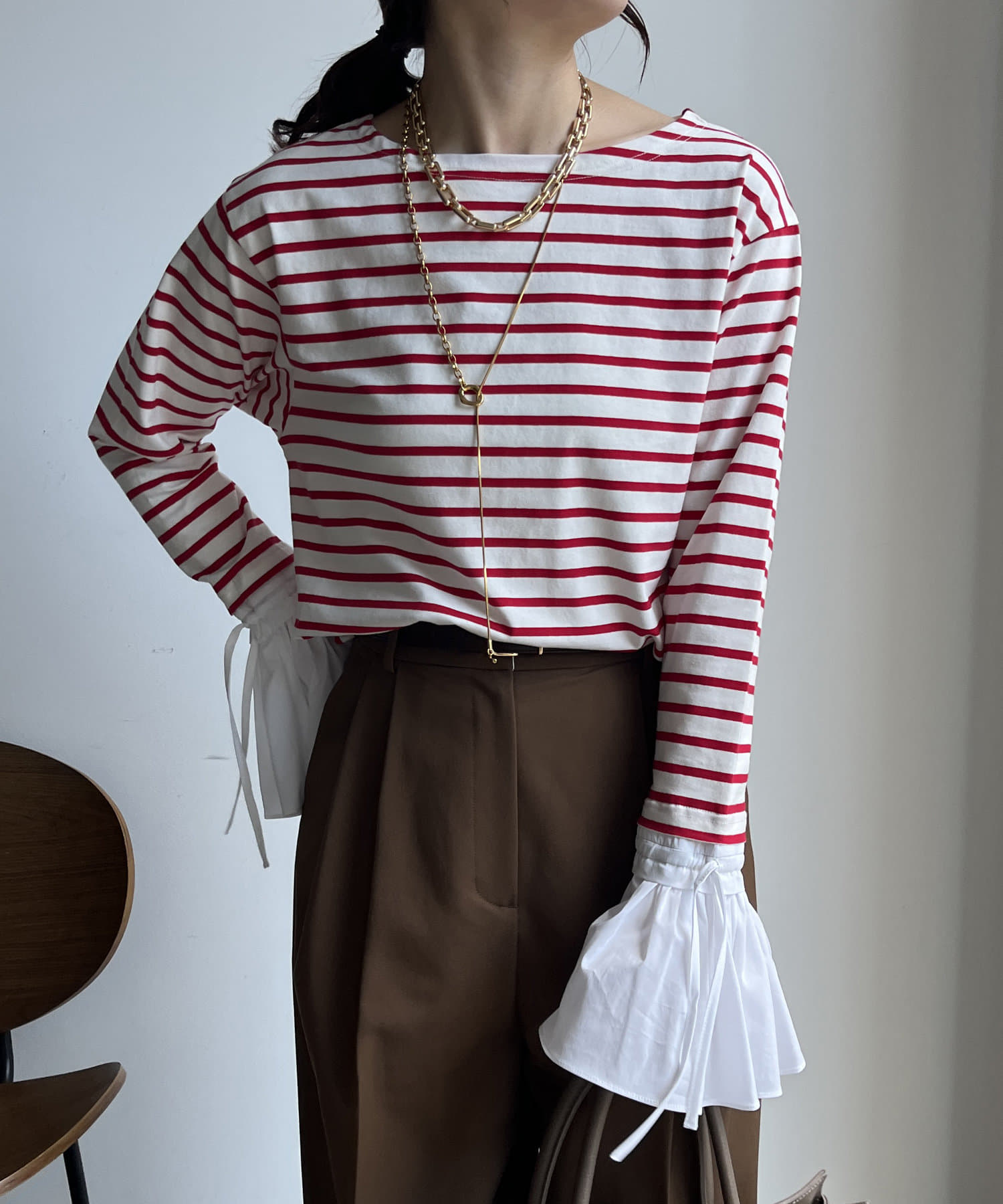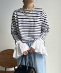 DOUDOU(ドゥドゥ) 【WEB限定】シャツスリーブボーダープルオーバー