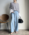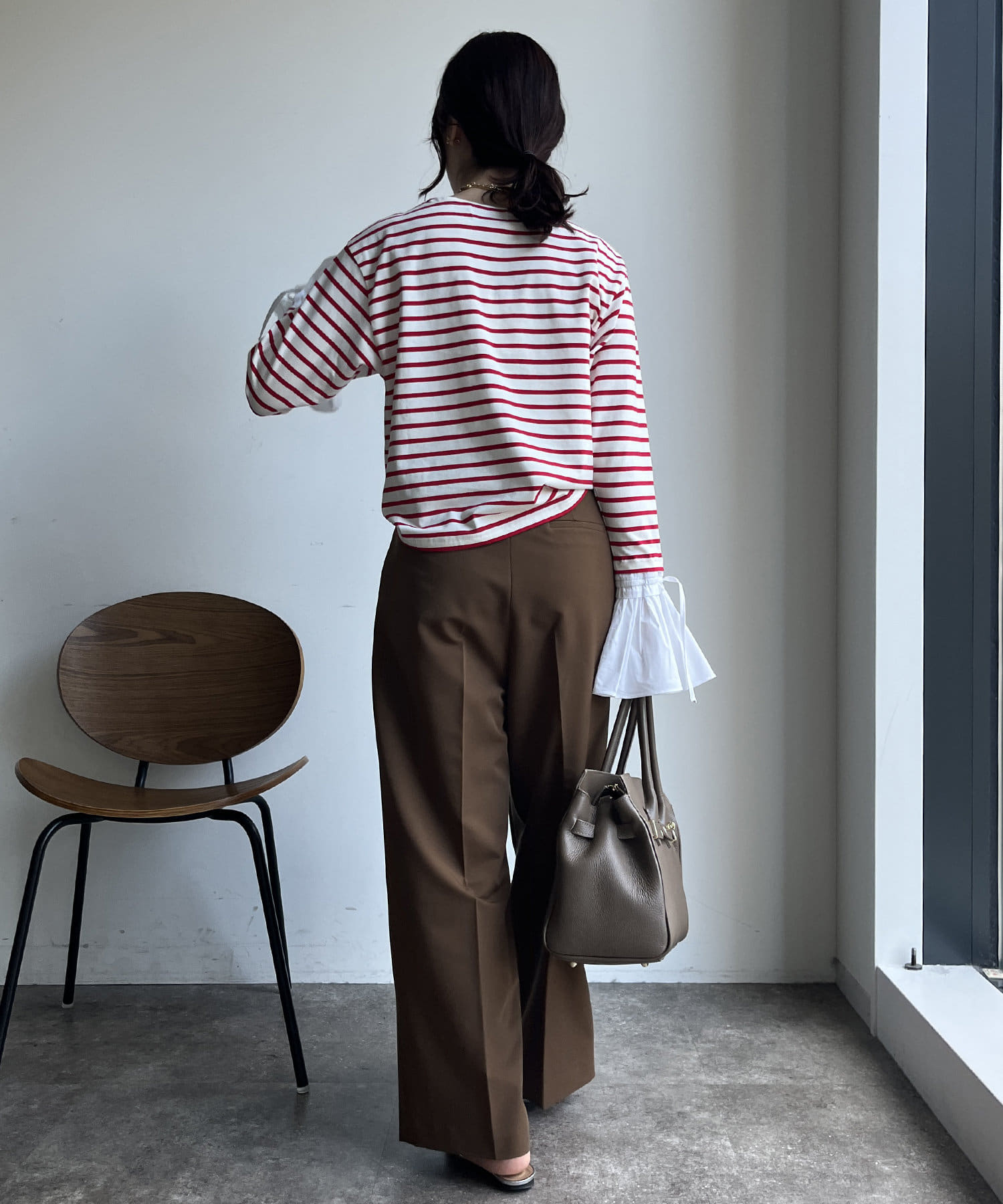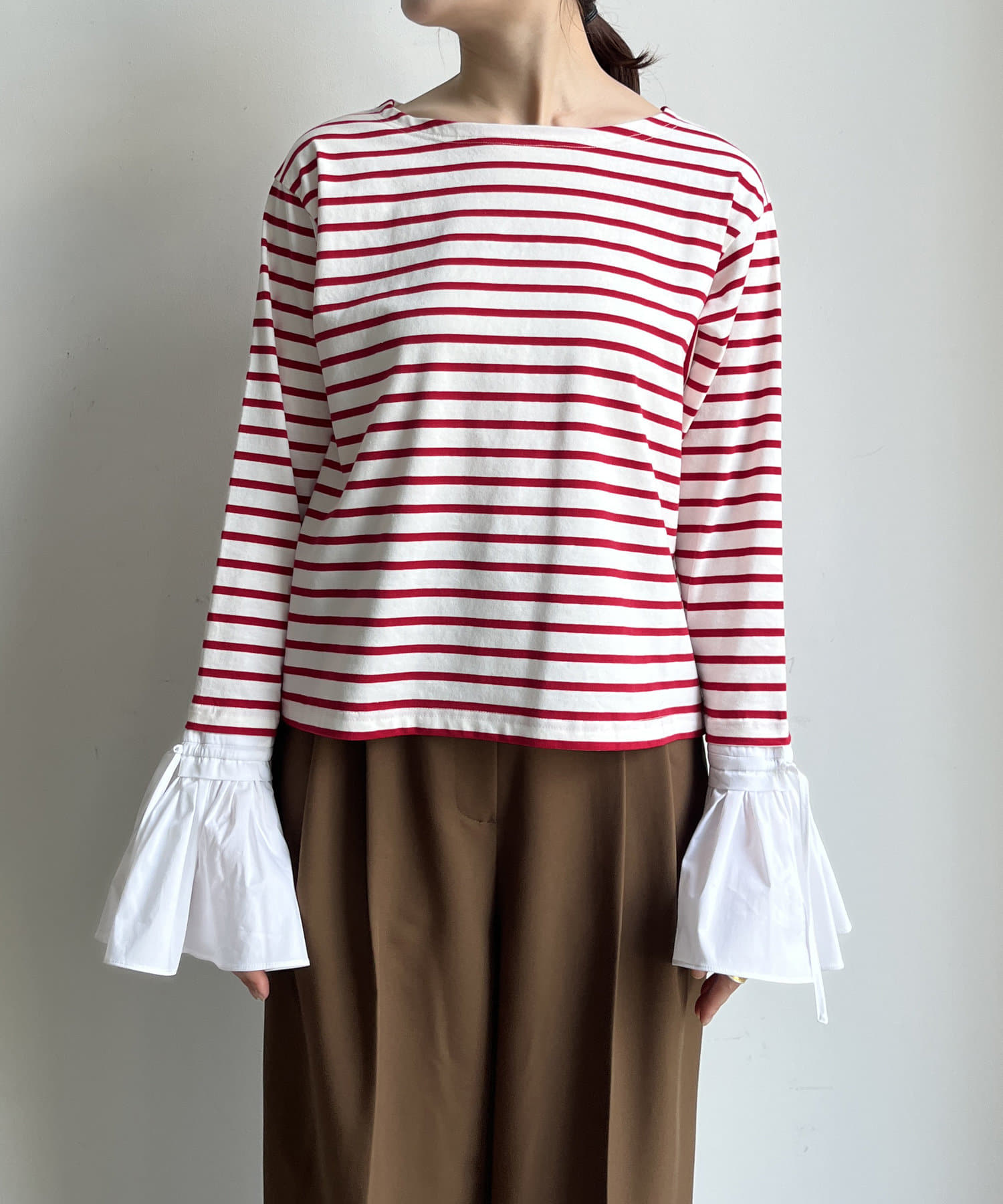 TOP > DOUDOU > レディース > トップス > Tシャツ/カットソー > 【WEB限定】シャツスリーブボーダープルオーバー