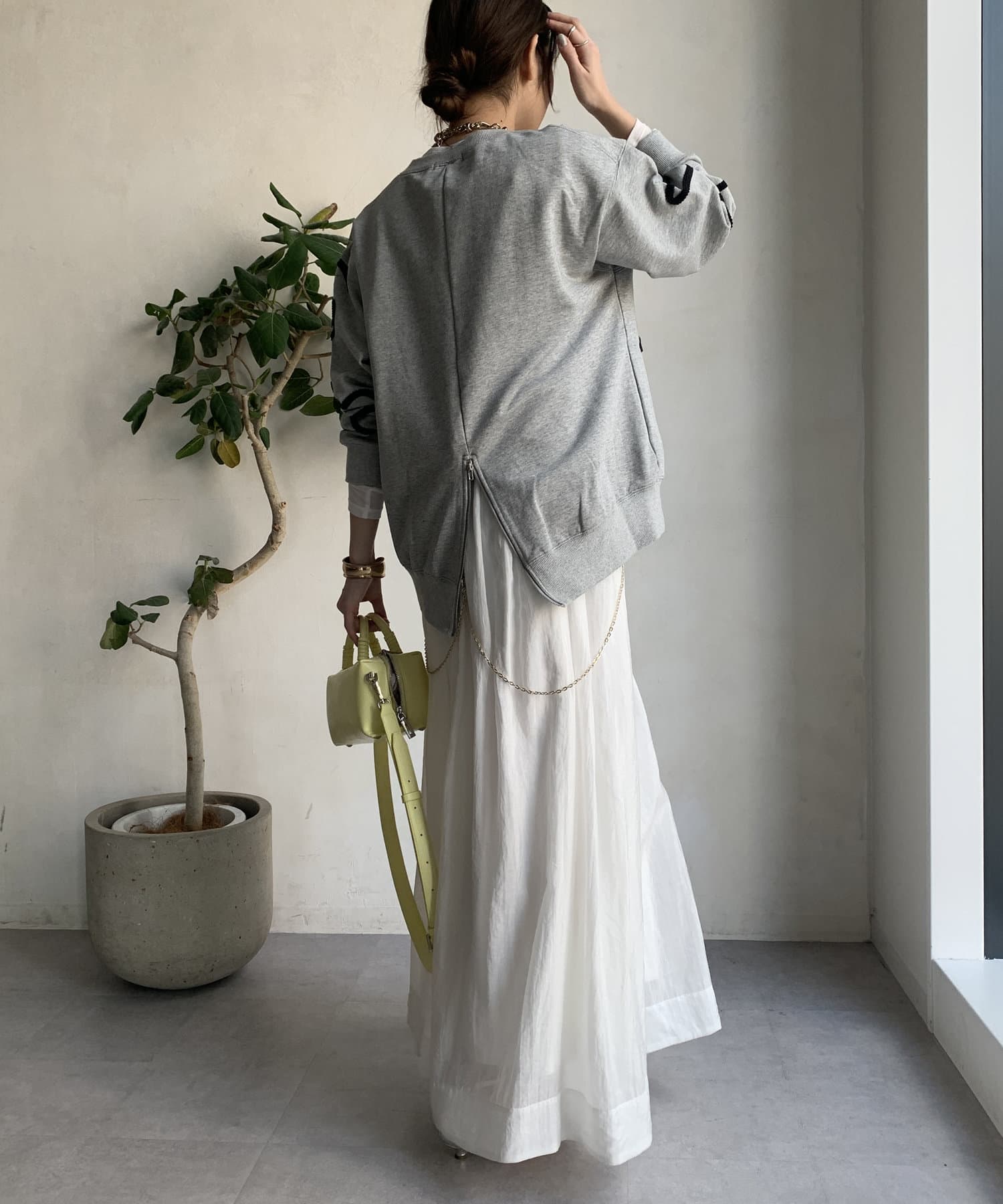バックには裾にジップがあり、スリットを作り出すことができるので、