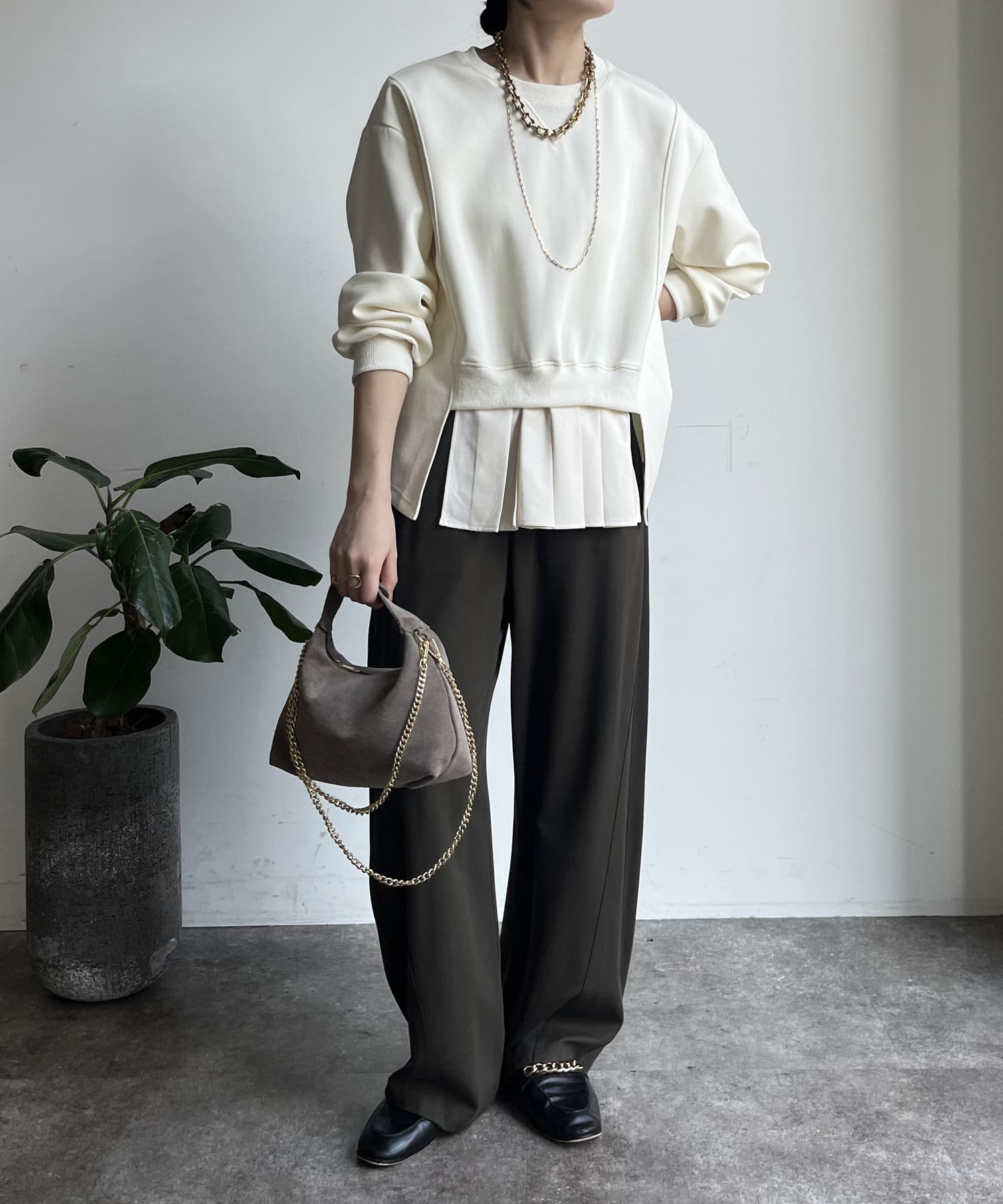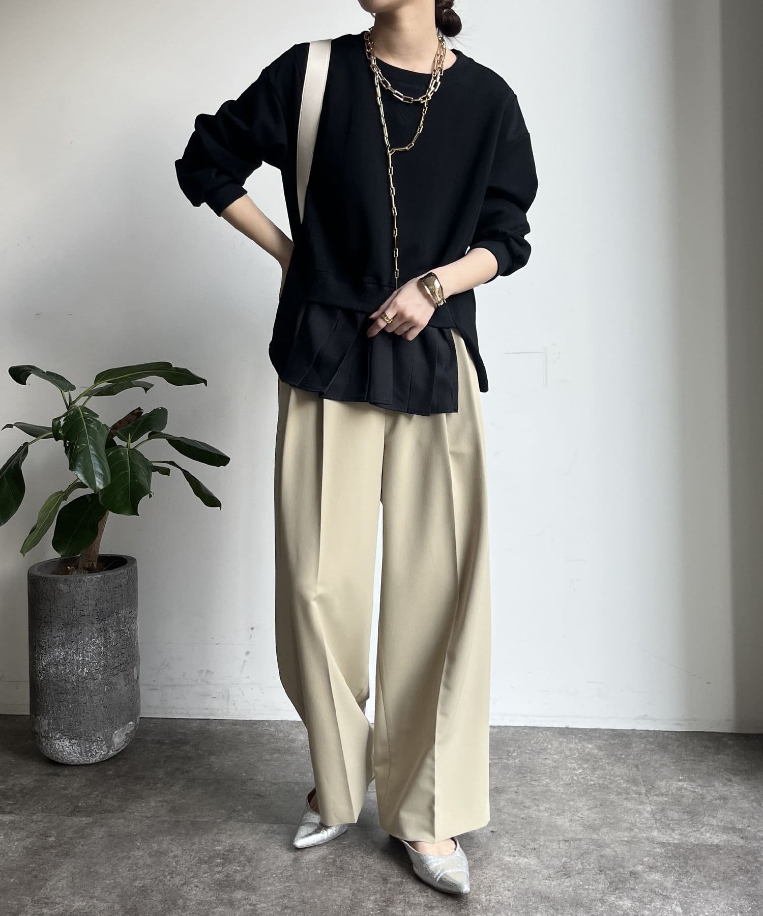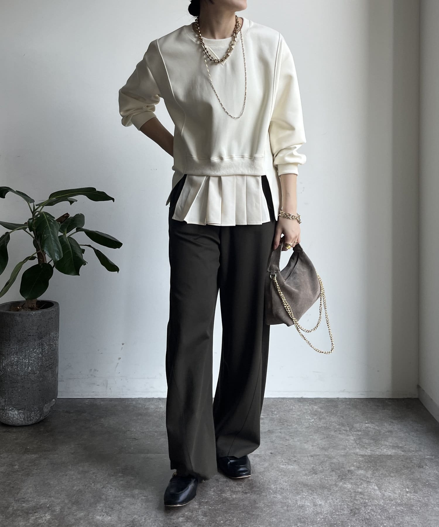 プリーツが上品見えしてくれながらも、女性らしい印象になりますよ!