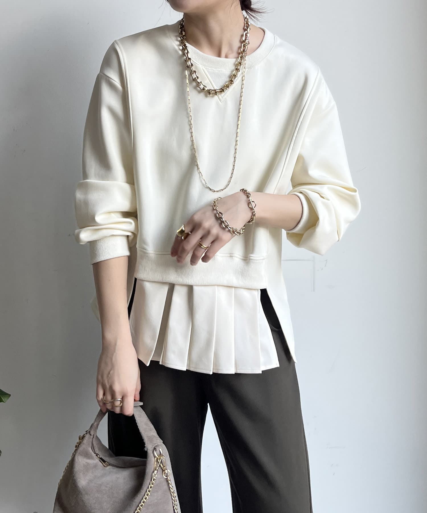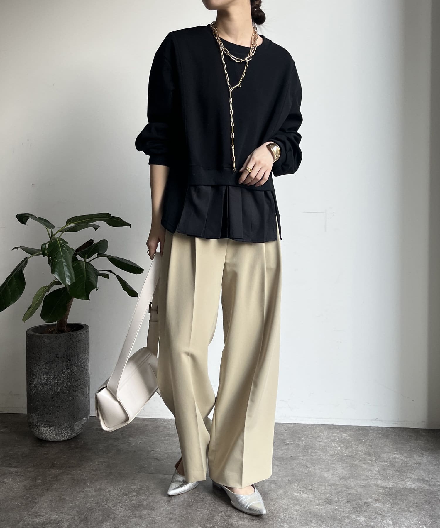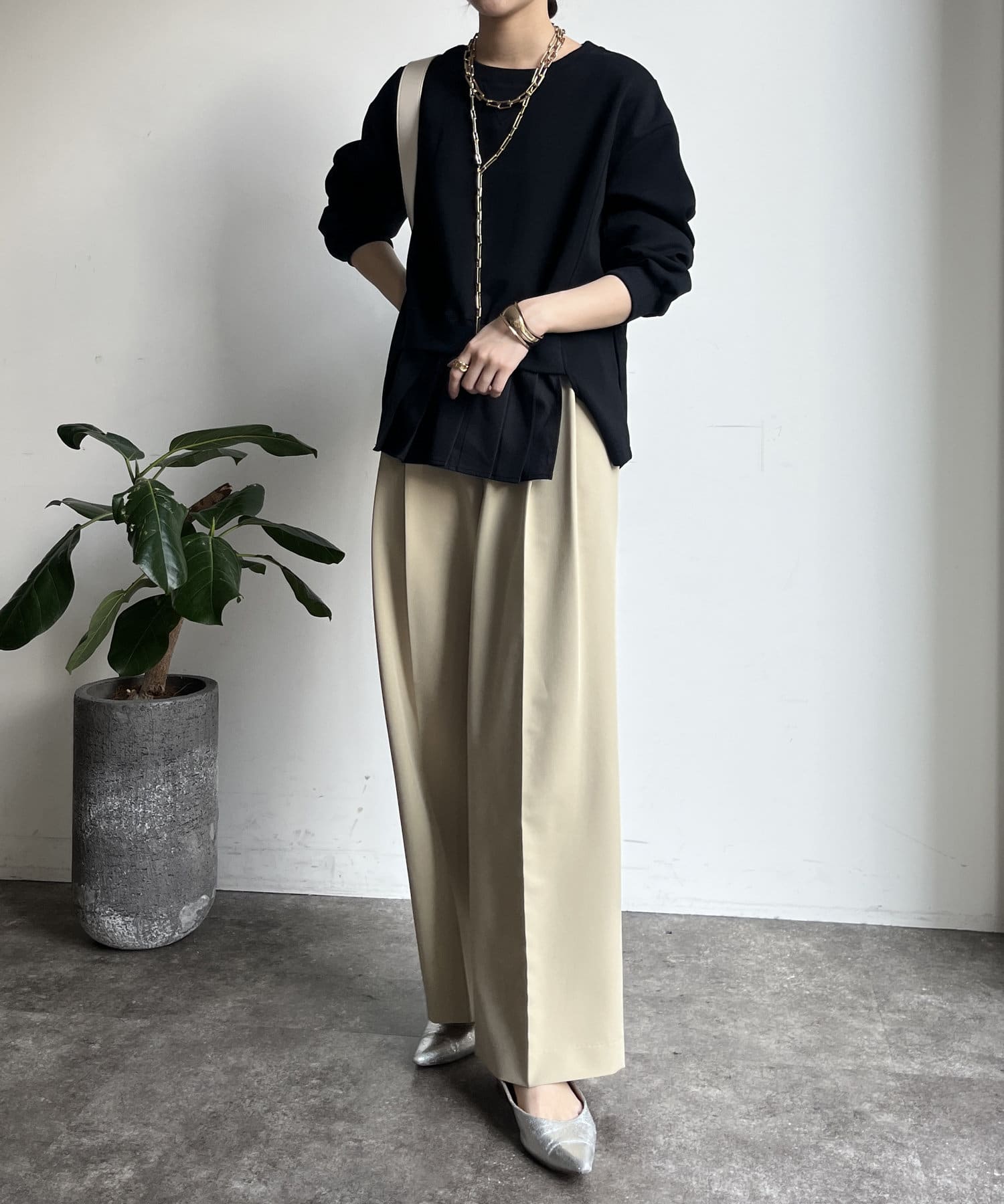 プリーツが上品見えしてくれながらも、女性らしい印象になりますよ!