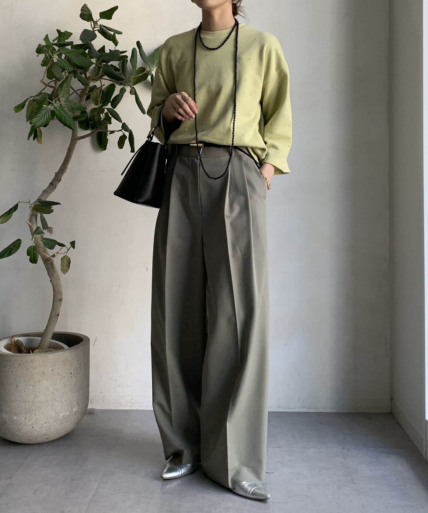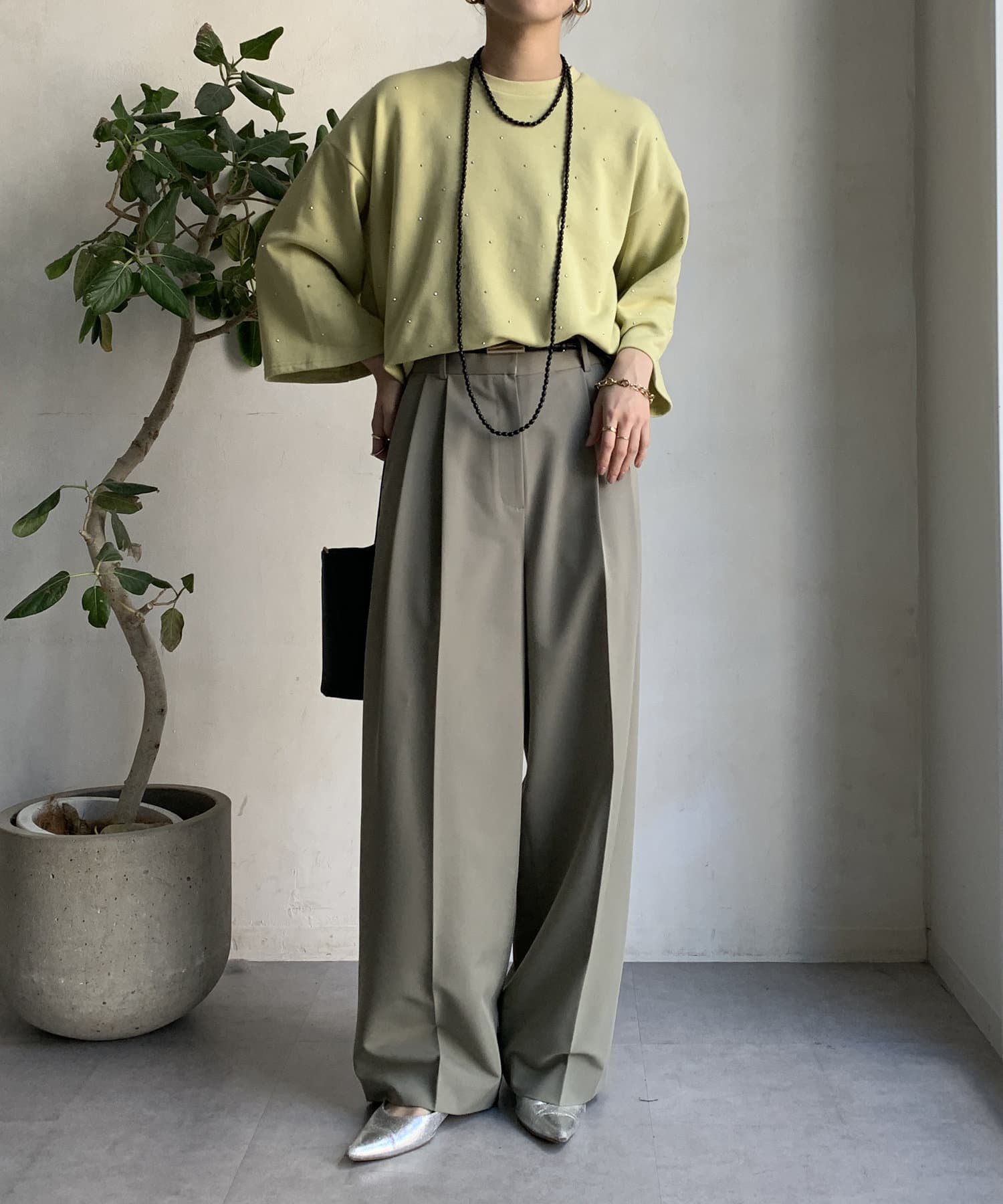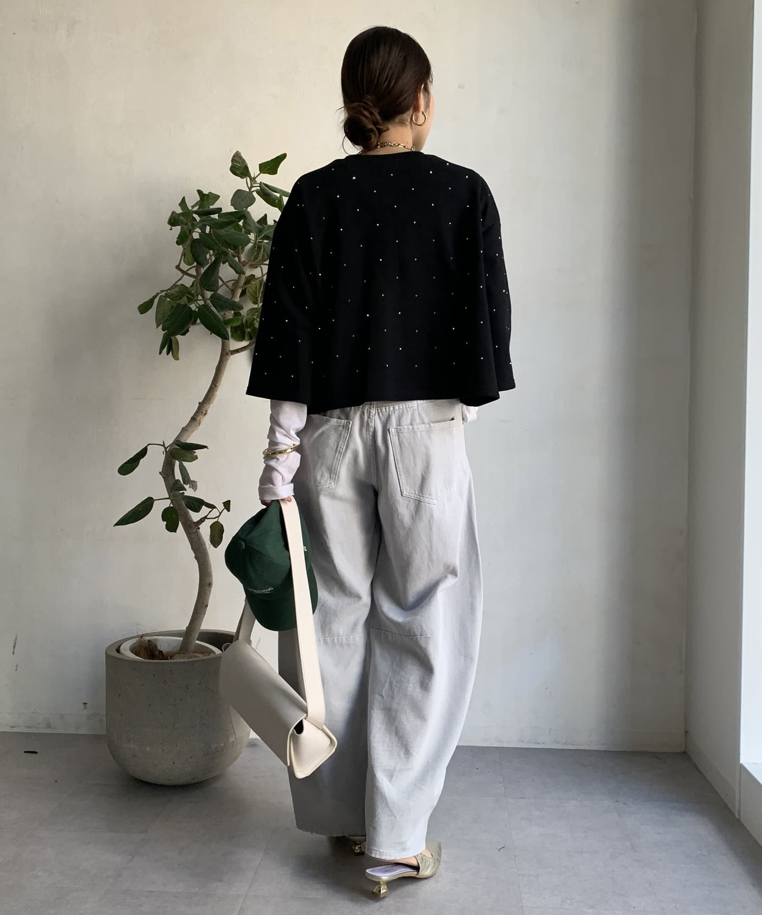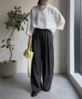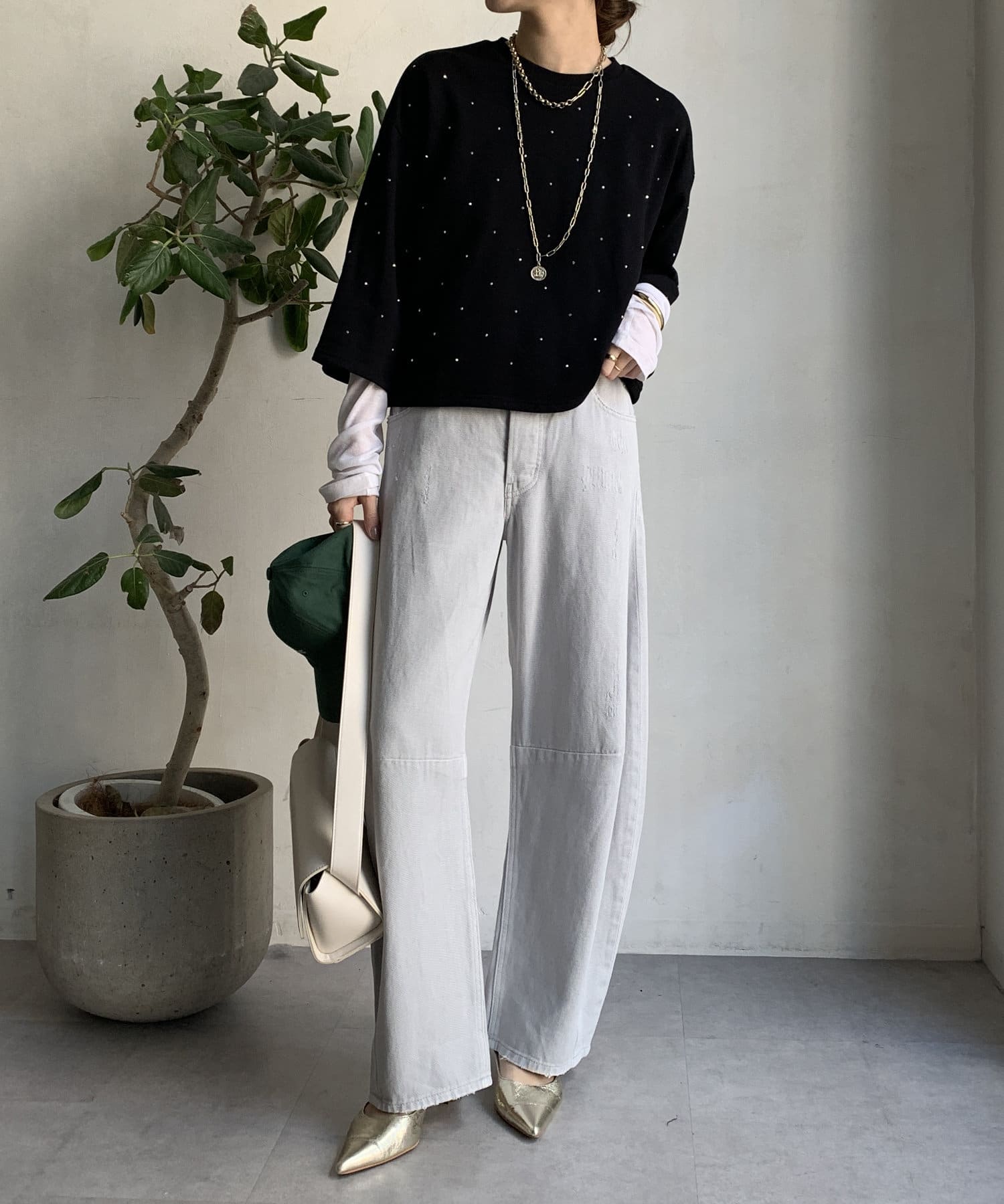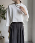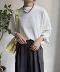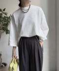 長めの袖丈が全体のバランスをまとめてくれて、どんなボトムスにもマッチしてくれますよ◎