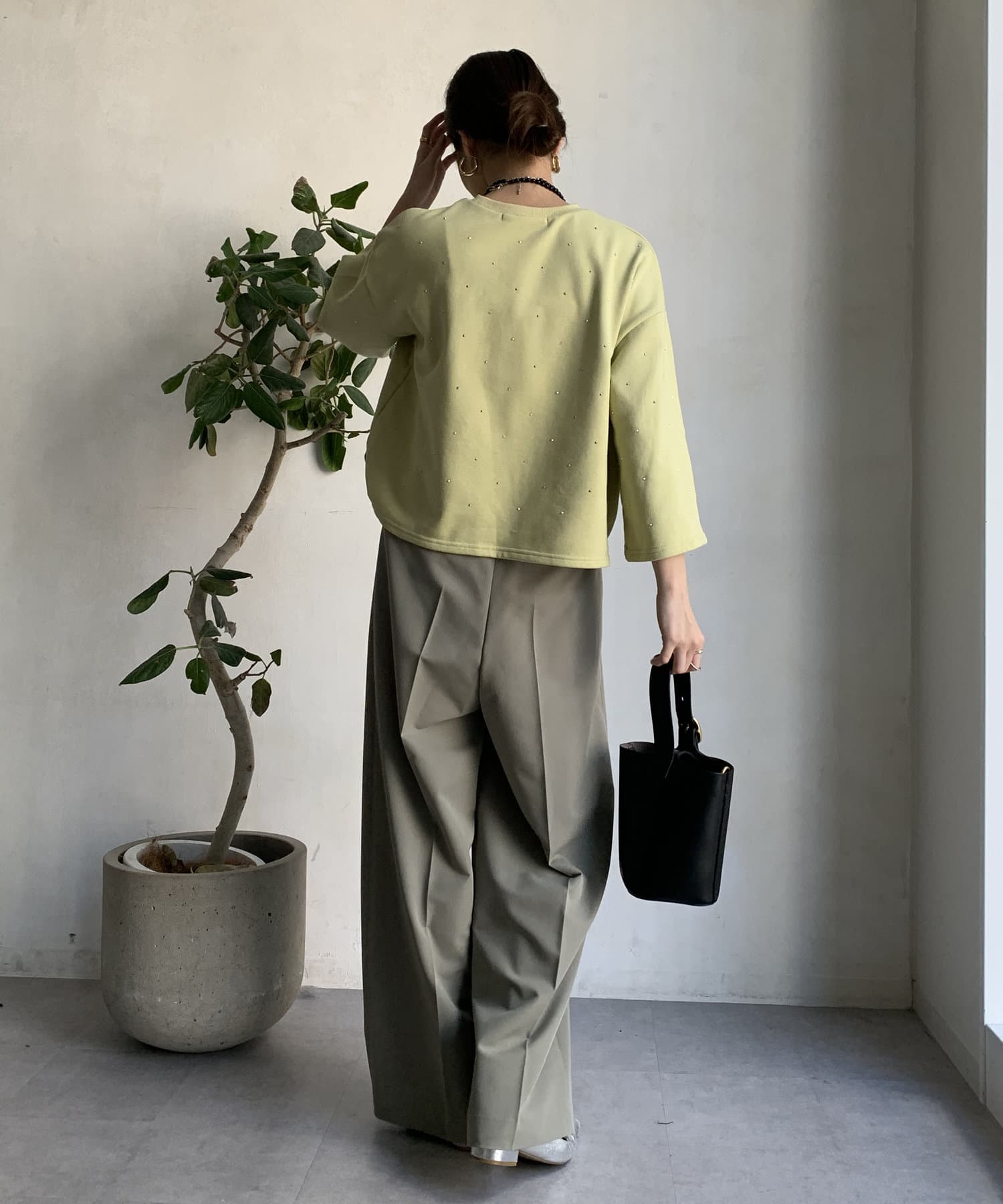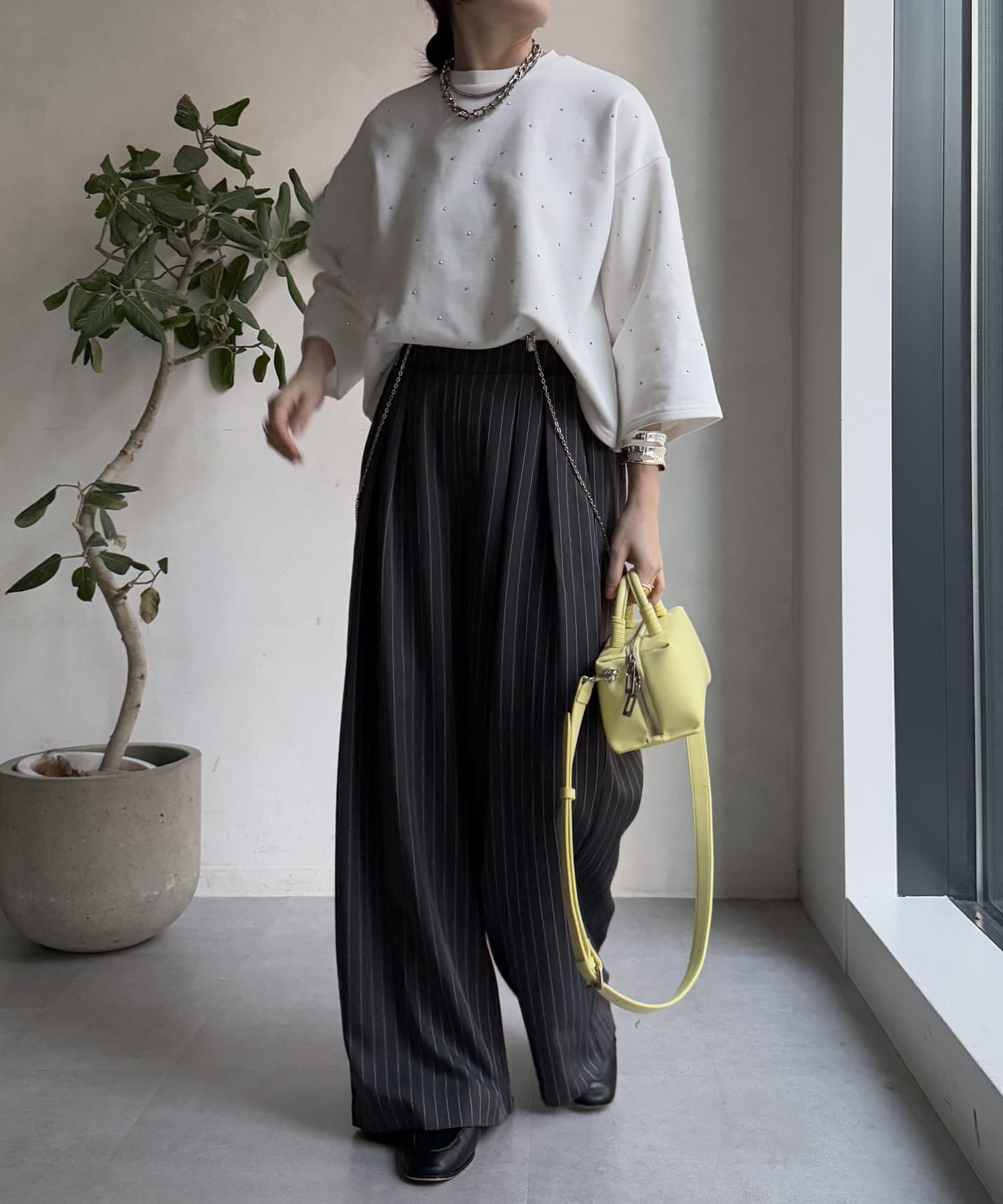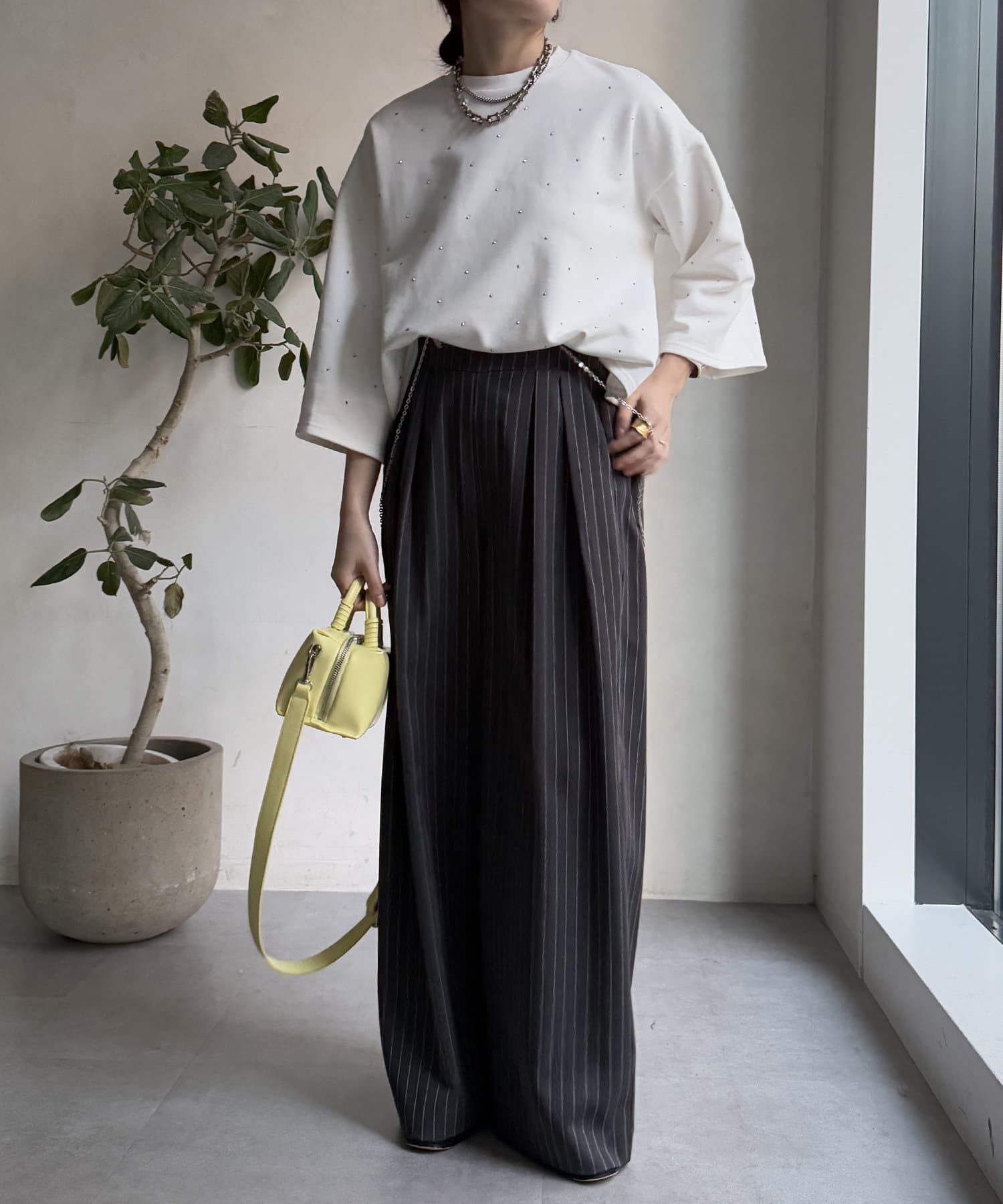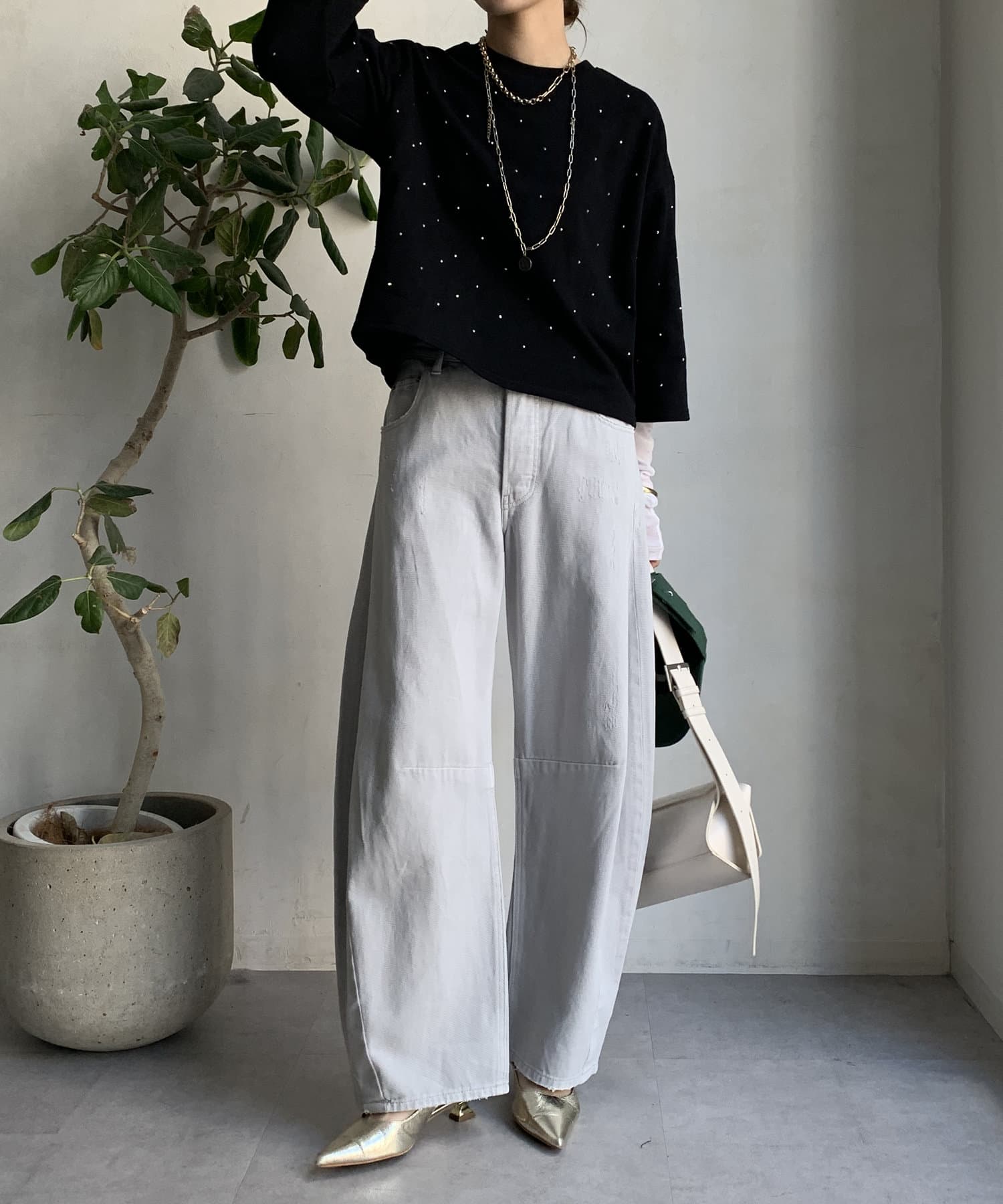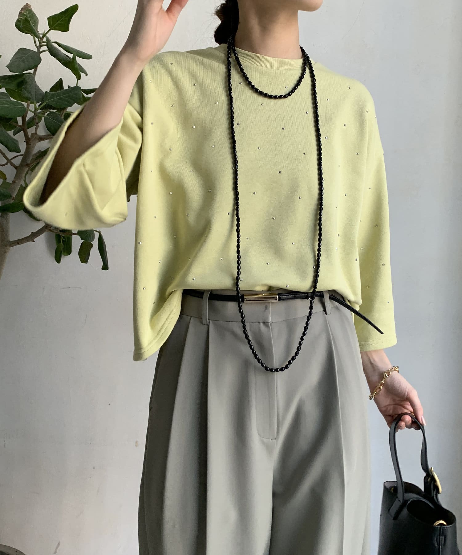長めの袖丈が全体のバランスをまとめてくれて、どんなボトムスにもマッチしてくれますよ◎