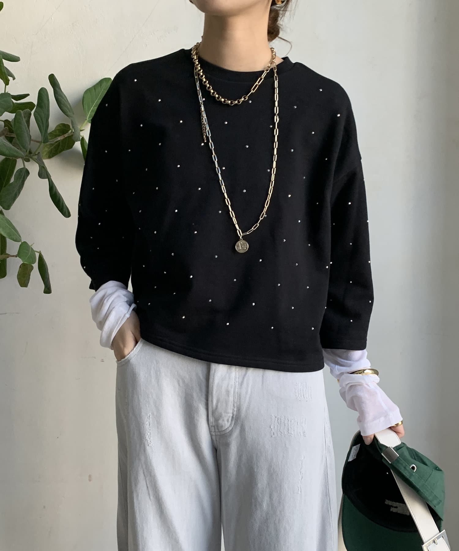 細やかなパーツが散りばめられ、1枚でも華やぐデザインになっています!
