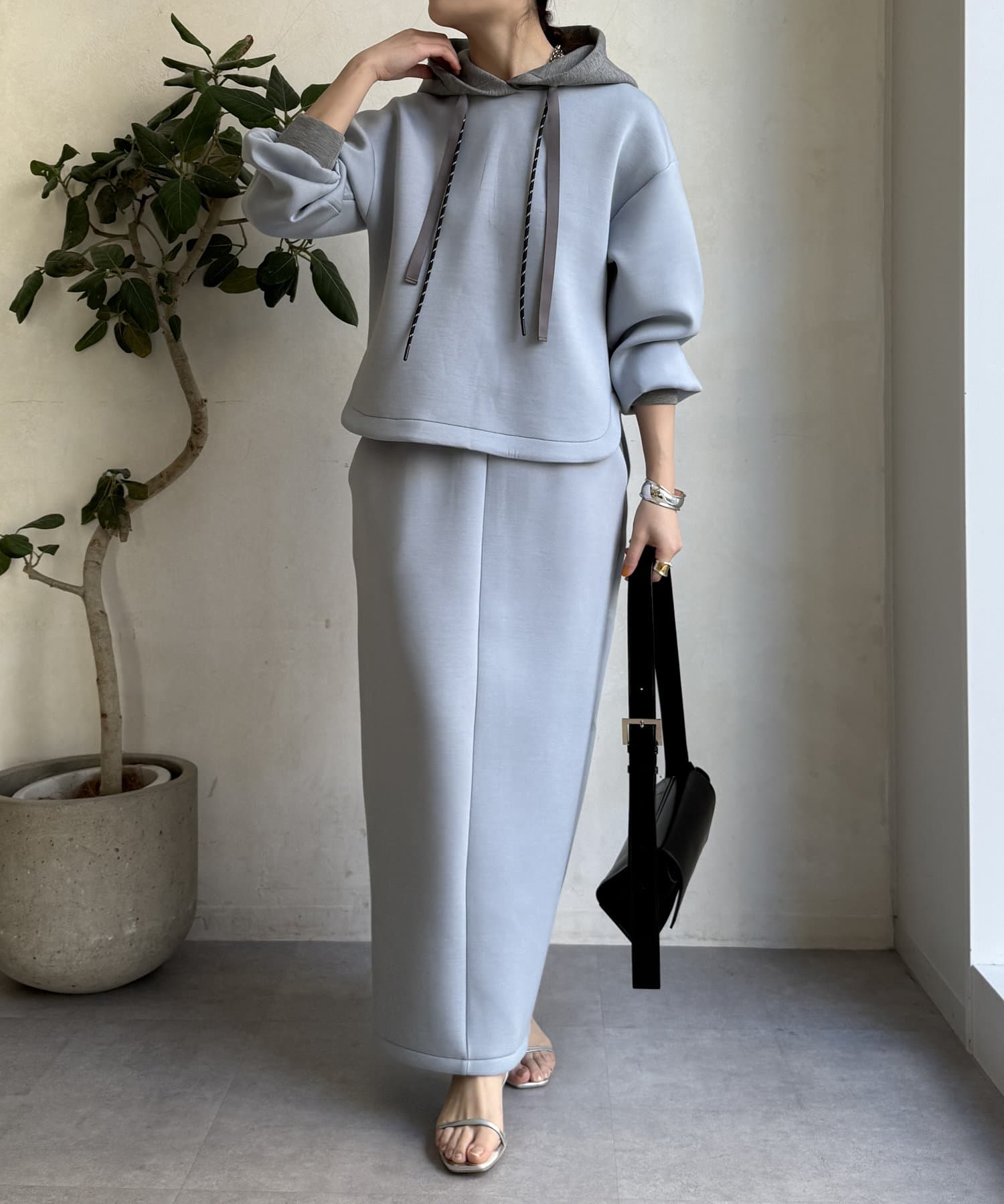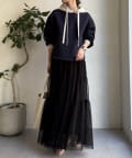 同素材のスカート(【WEB限定】配色スカート/DDZ1051101A0010)とのセットアップコーデもおススメです。