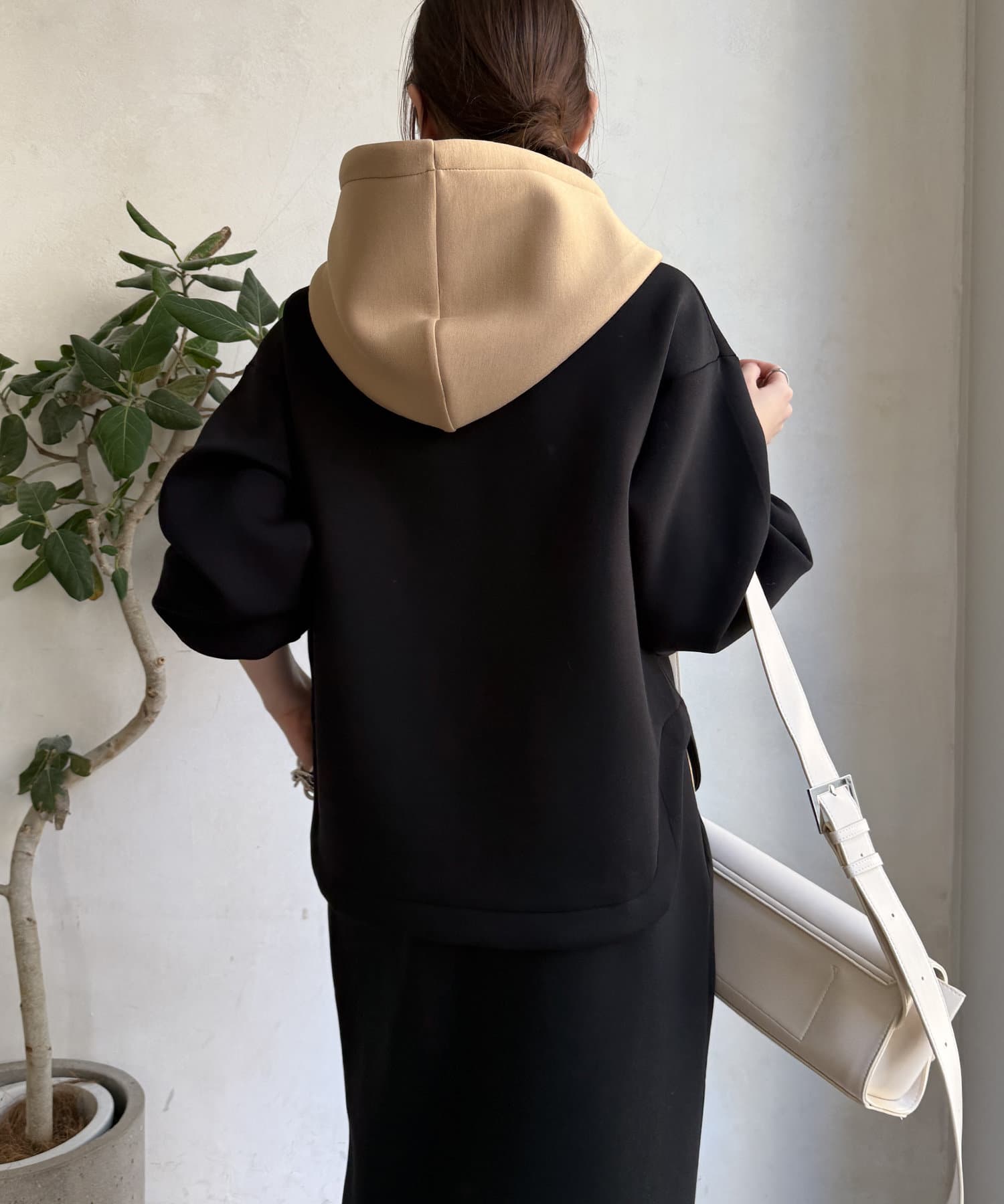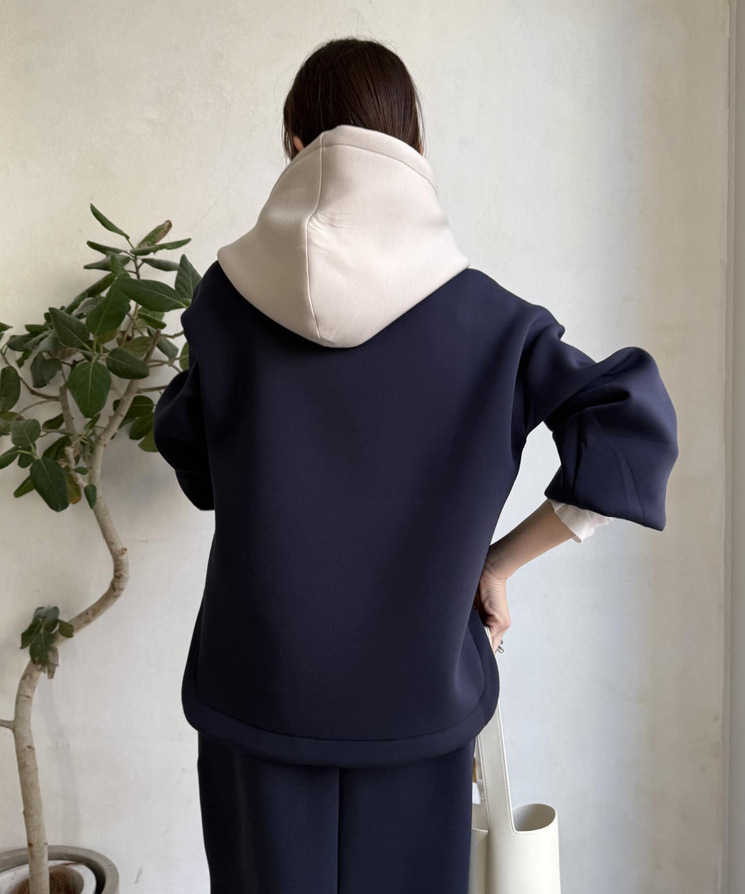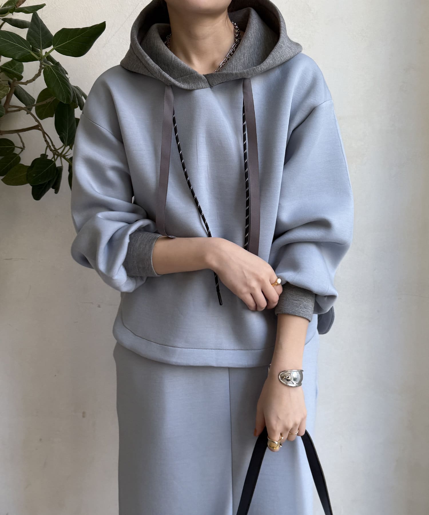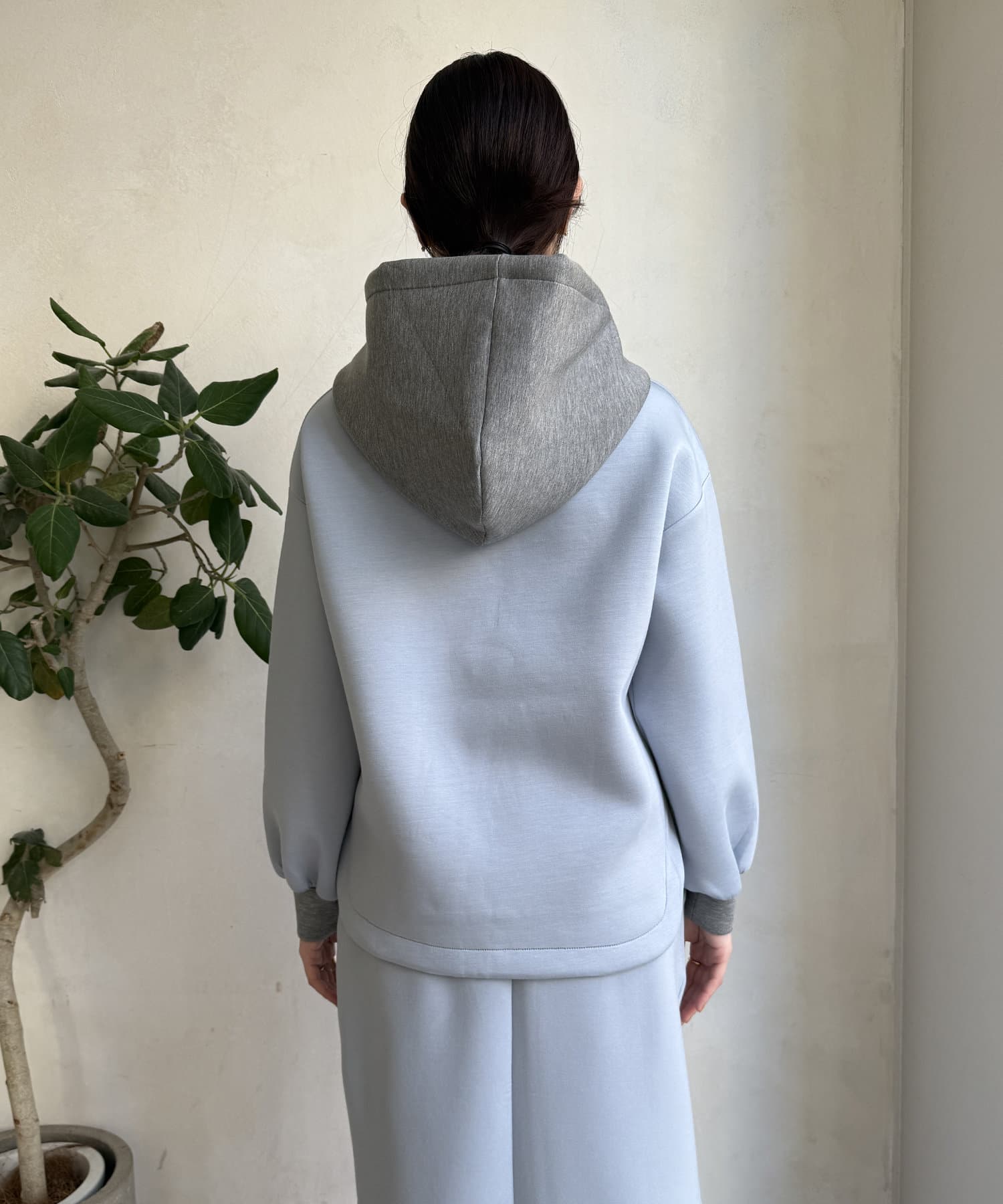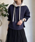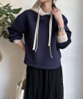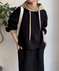 バイカラーディテールが新鮮なパーカー
