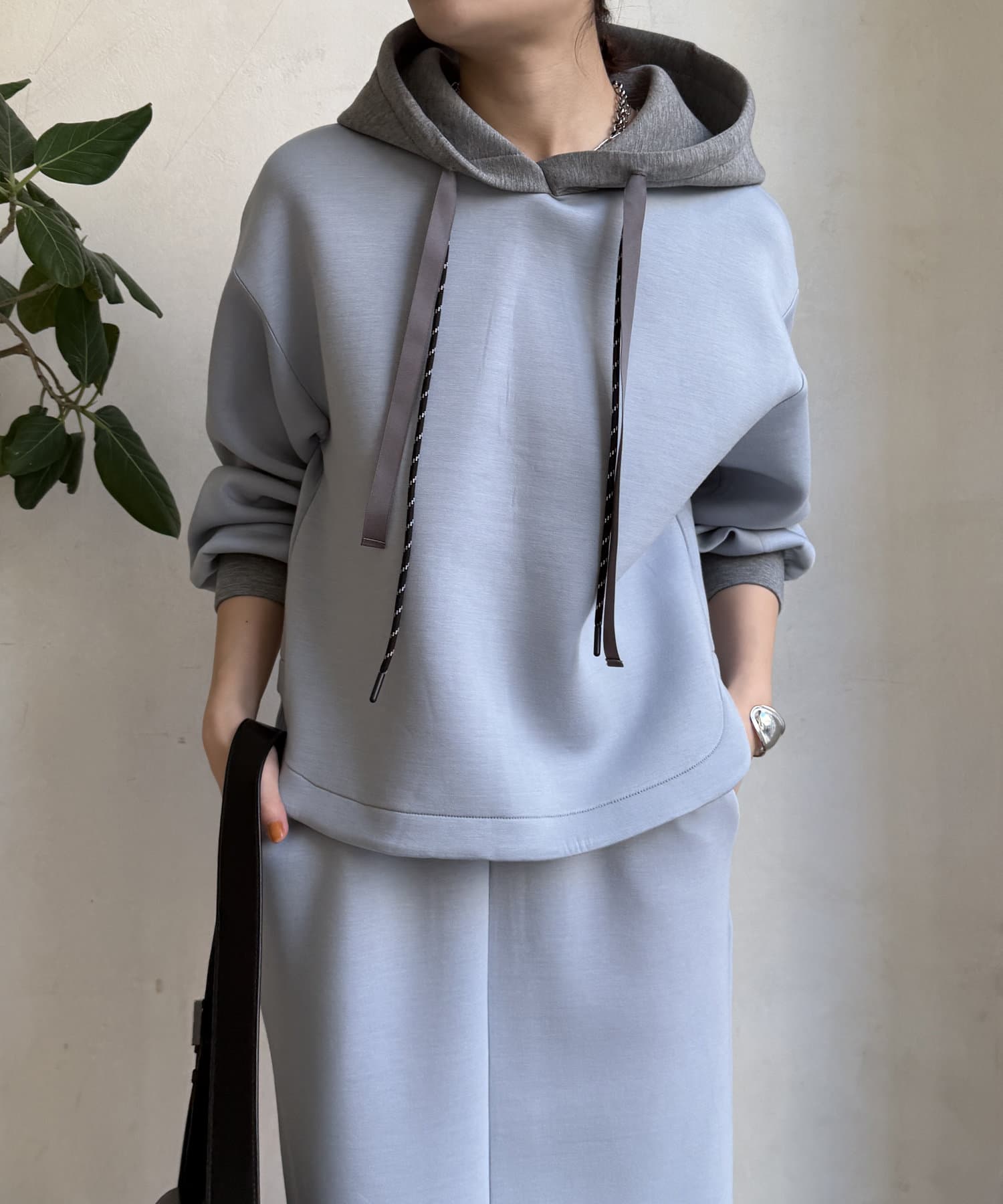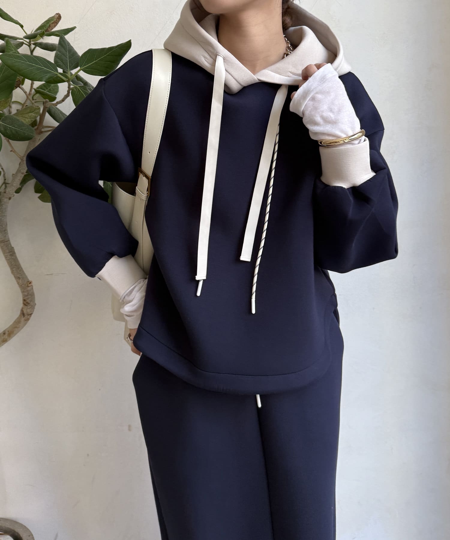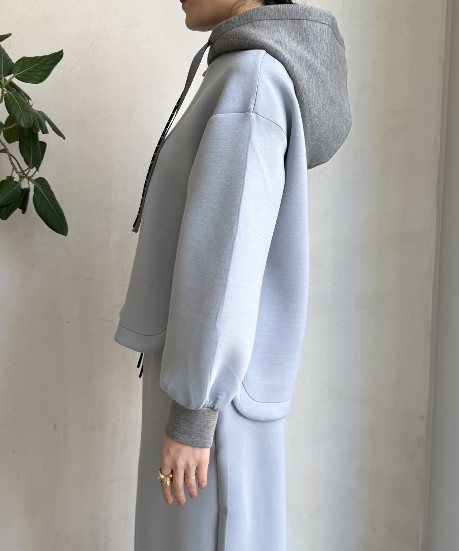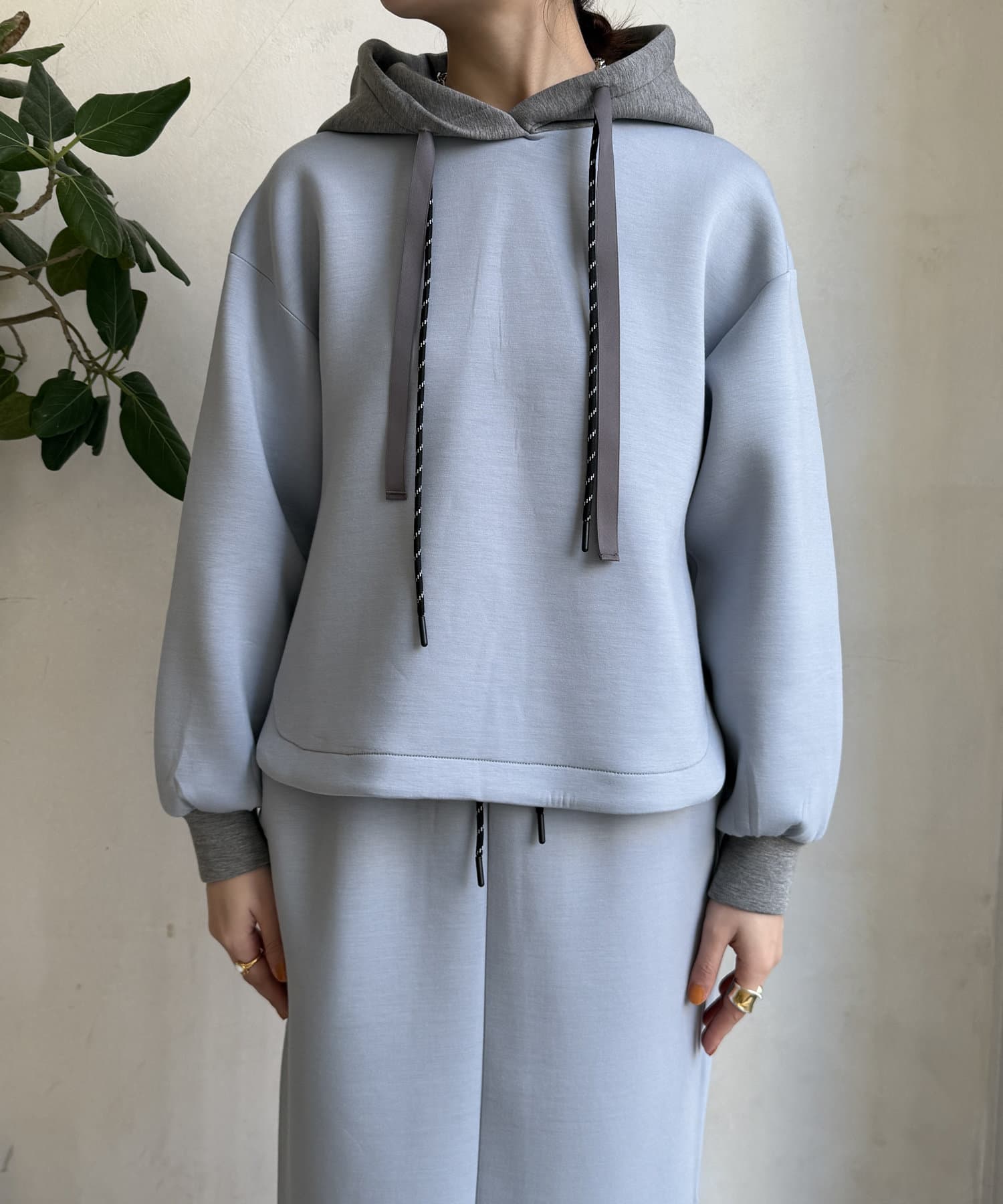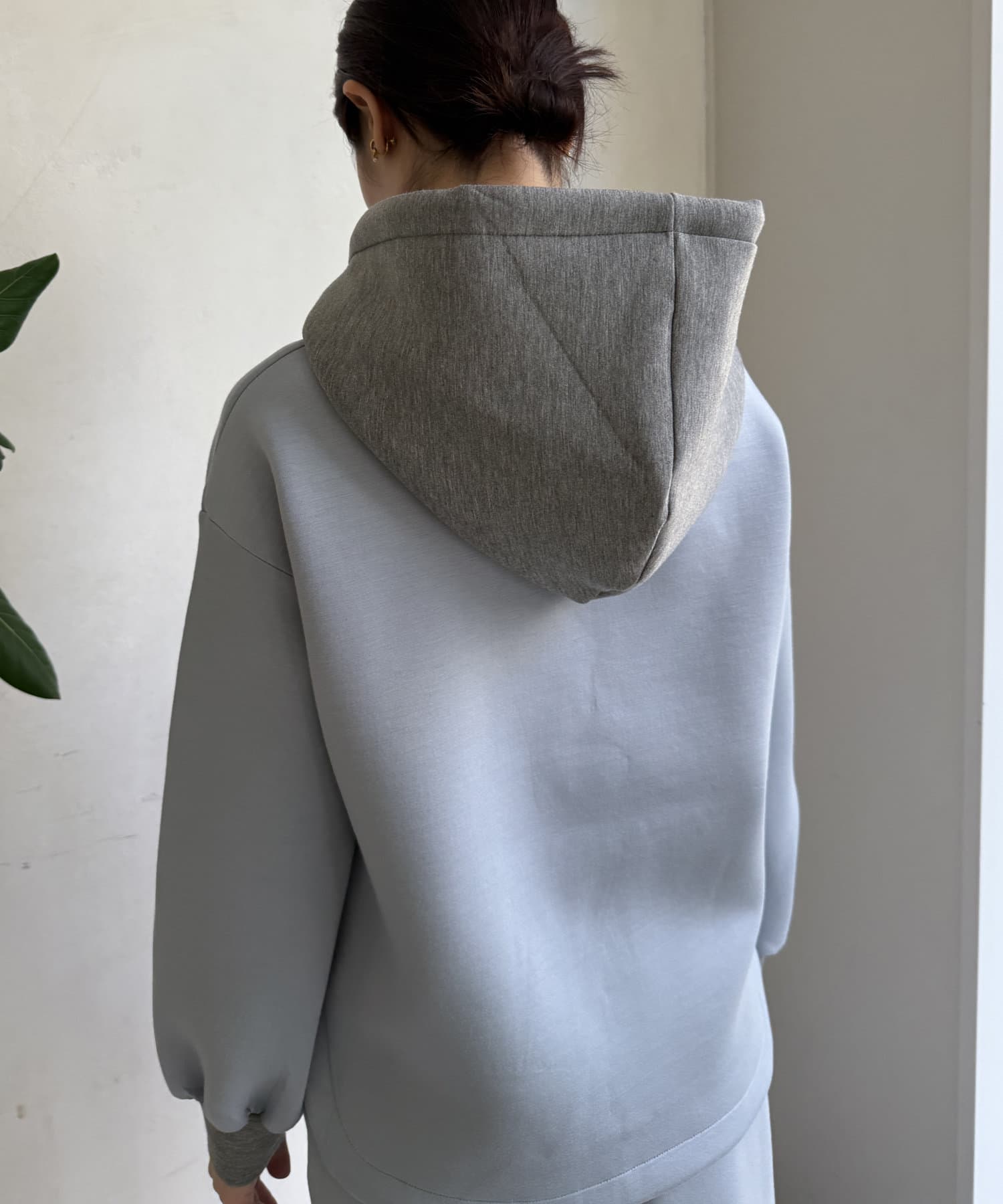 バイカラーディテールが新鮮なパーカー