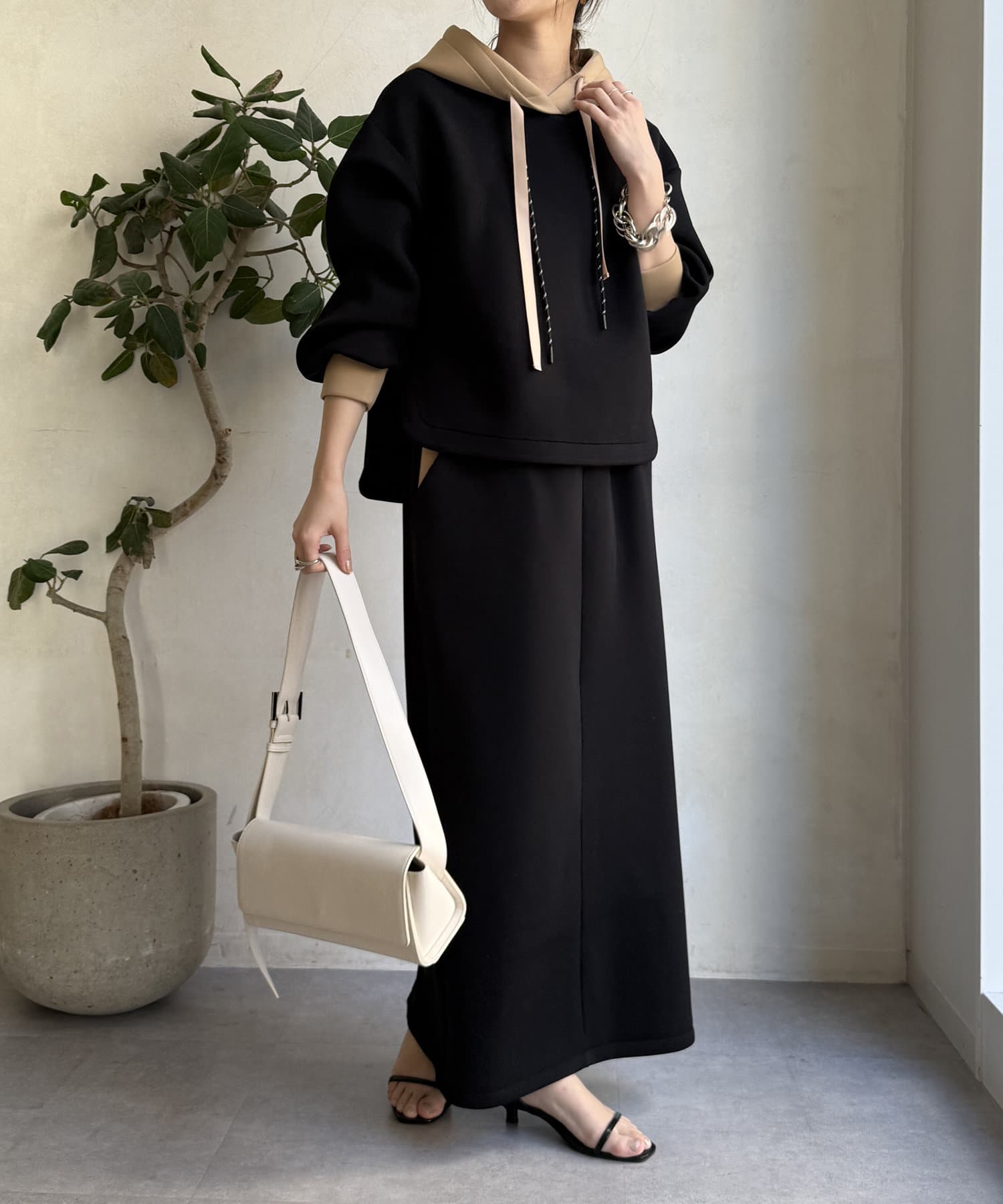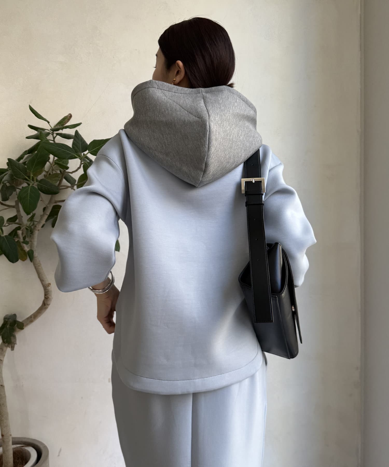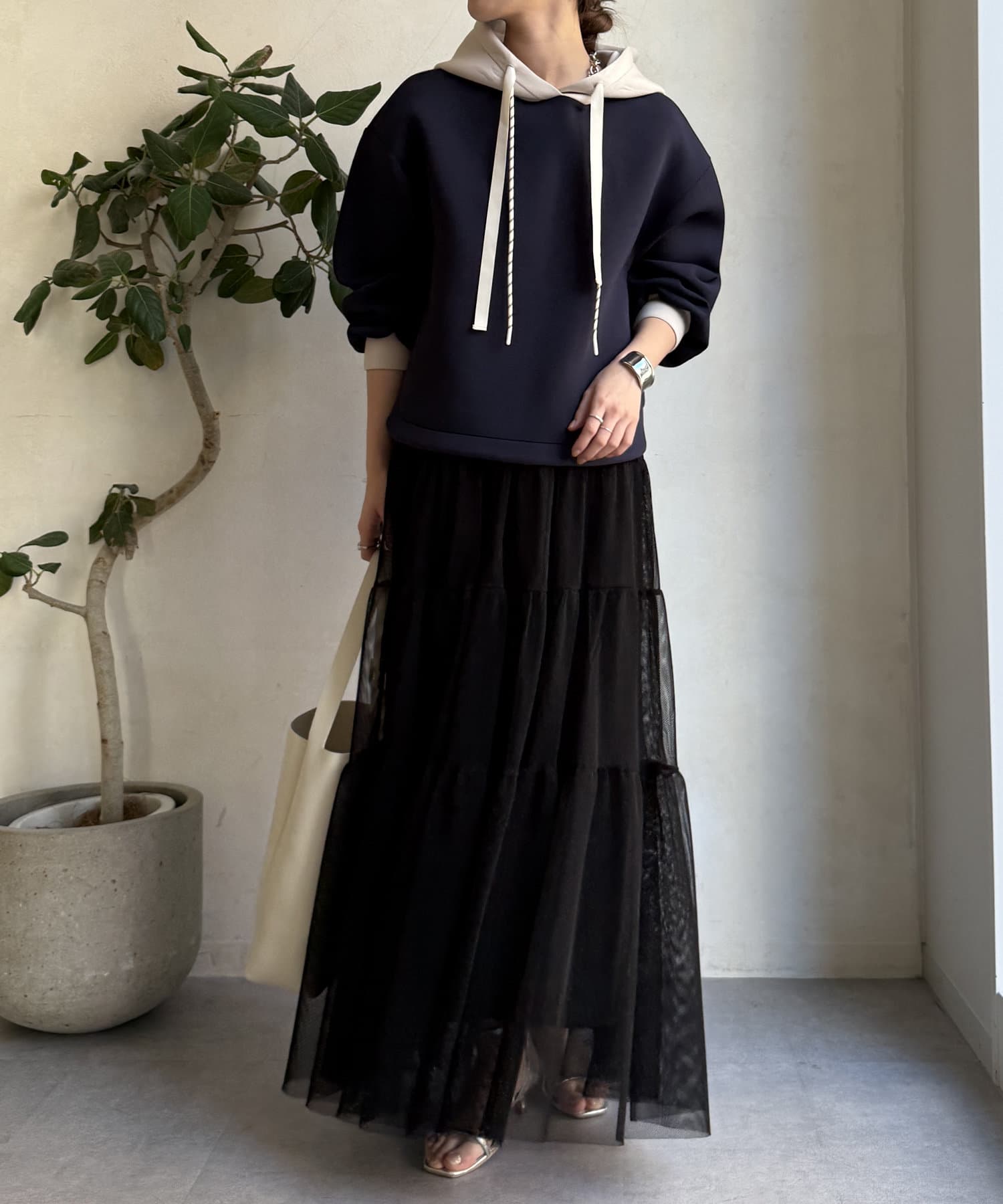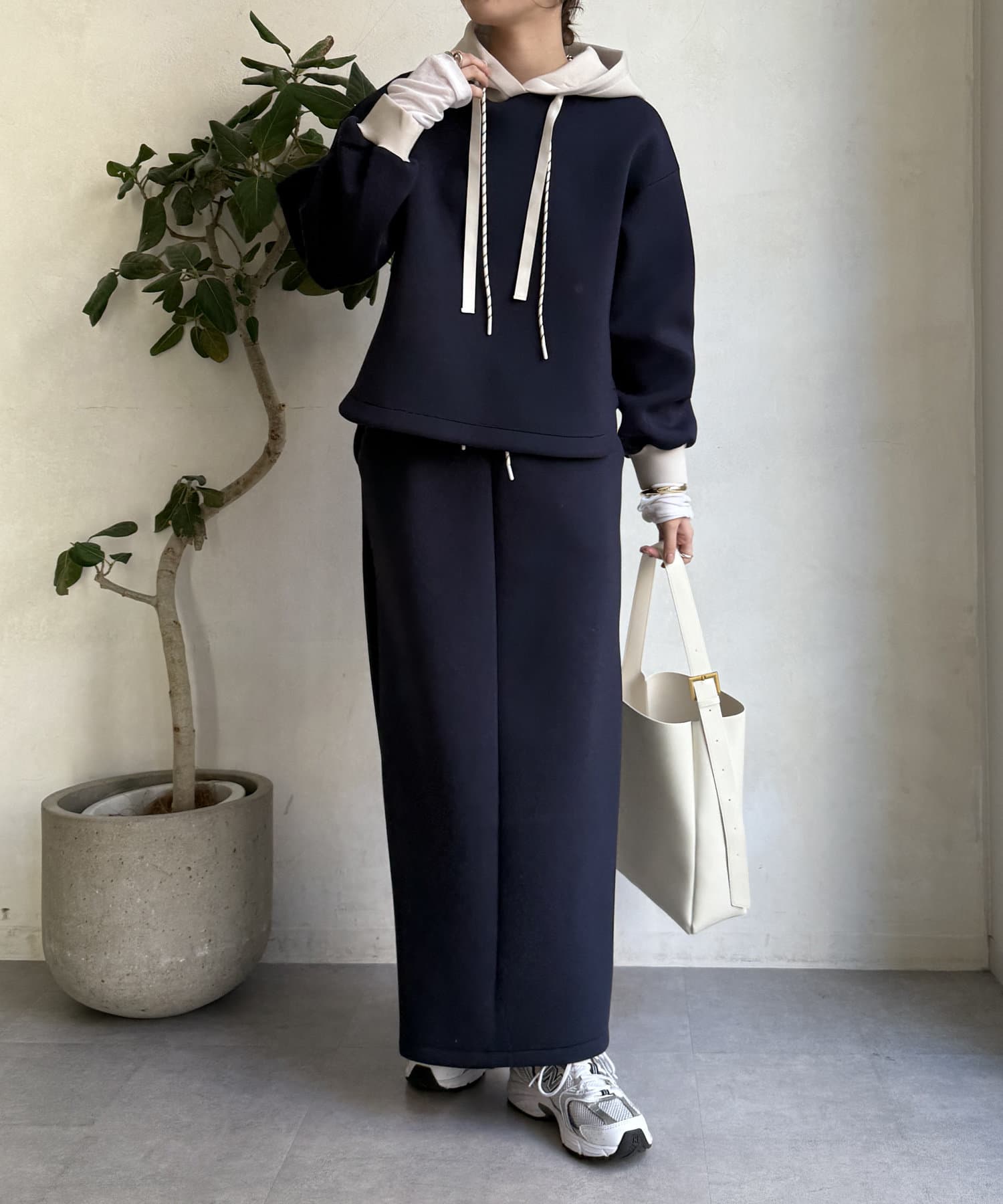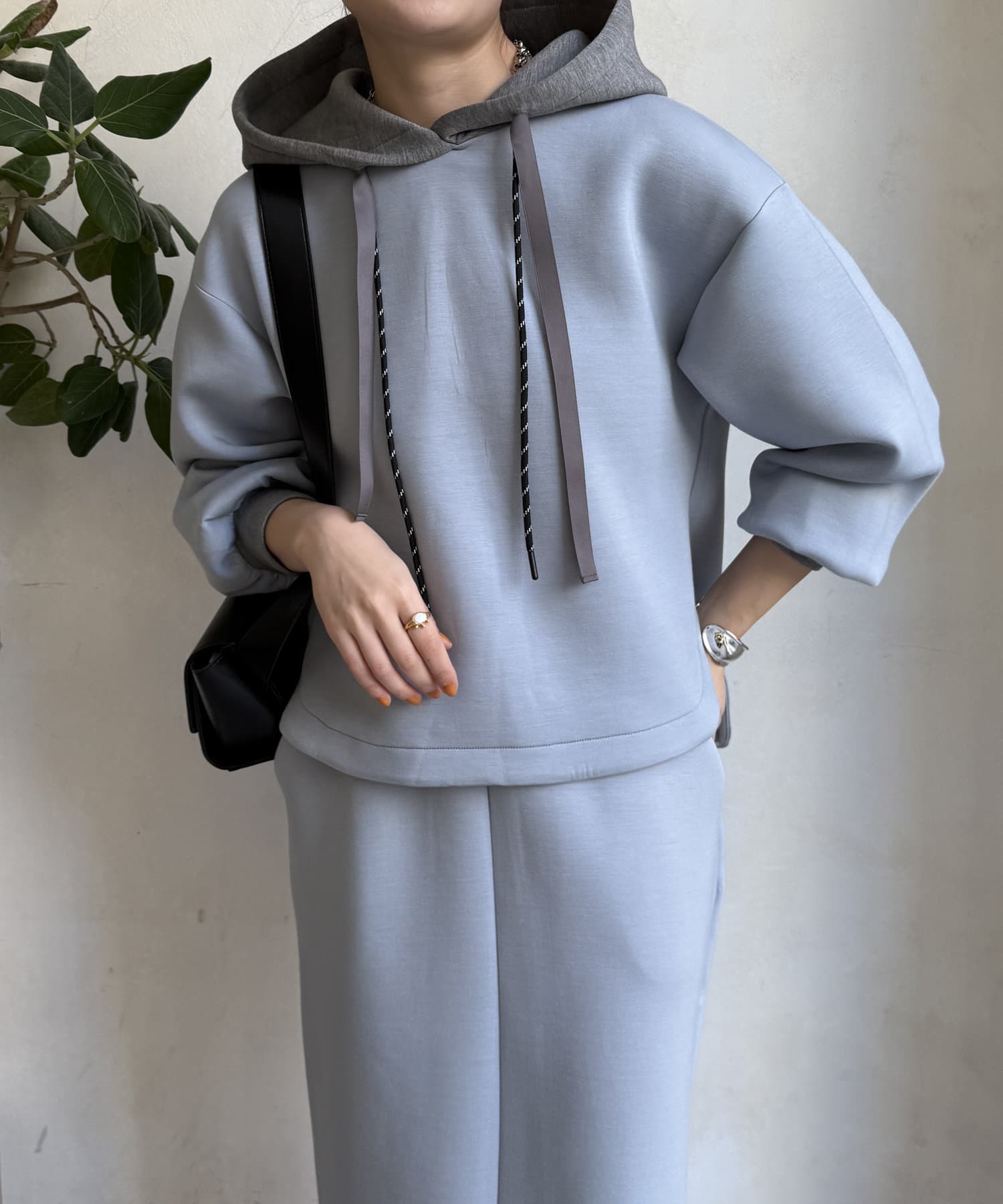 バイカラーディテールが新鮮なパーカー
