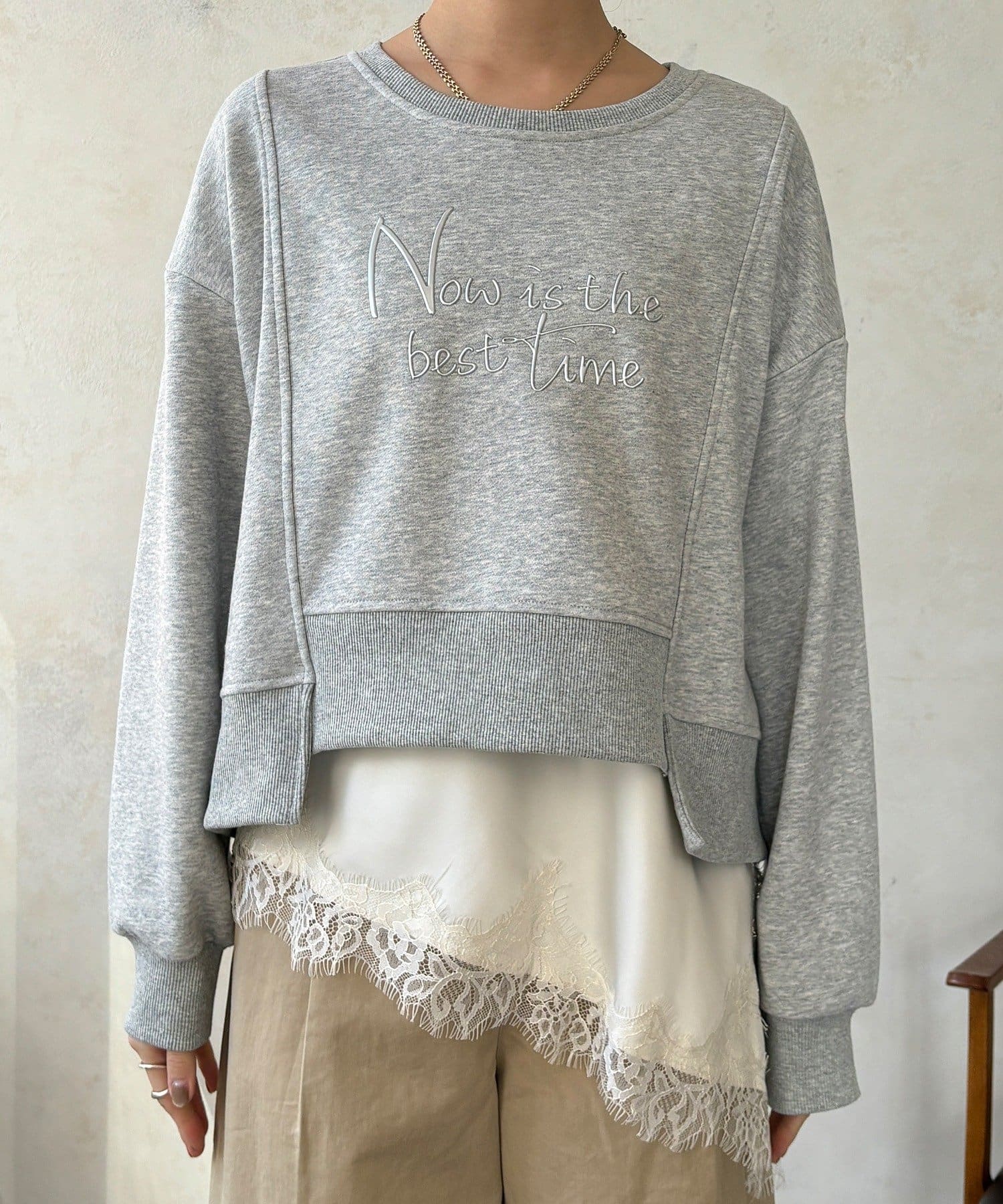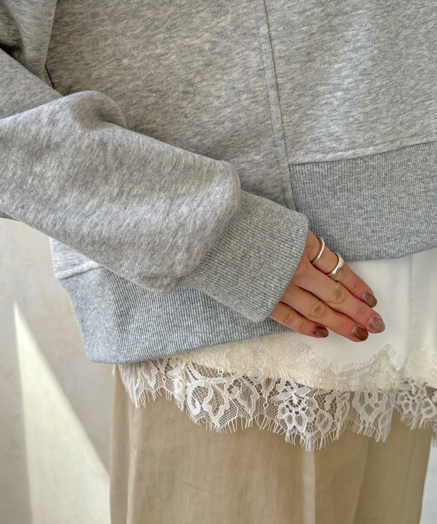 また、レイヤードスタイルも楽しめ長めのロンTEEやシャツなどと