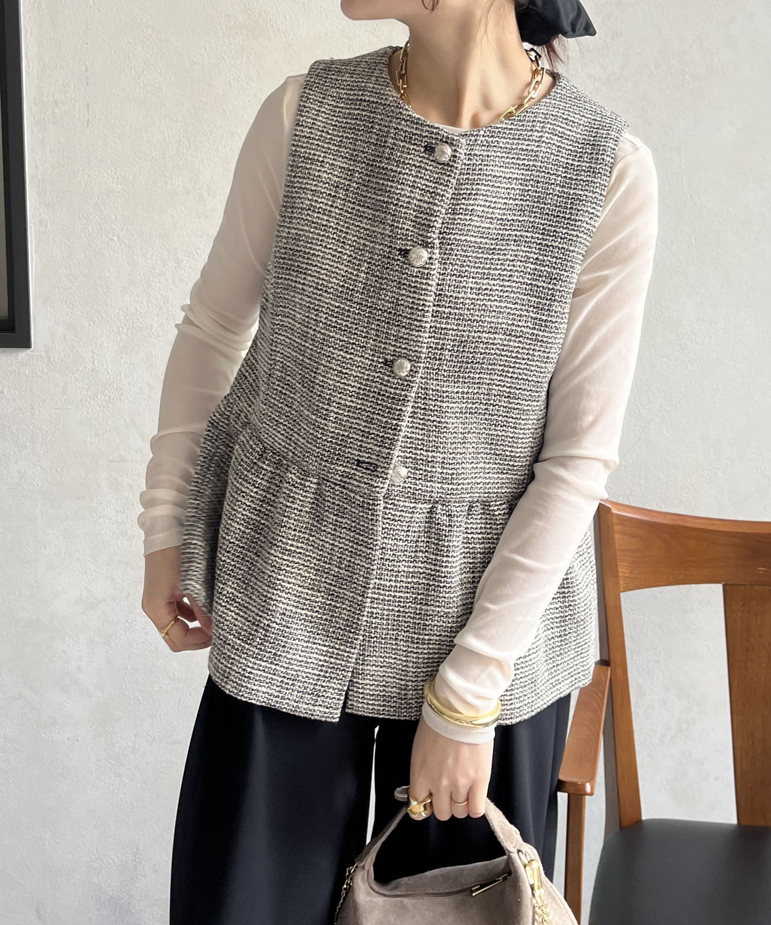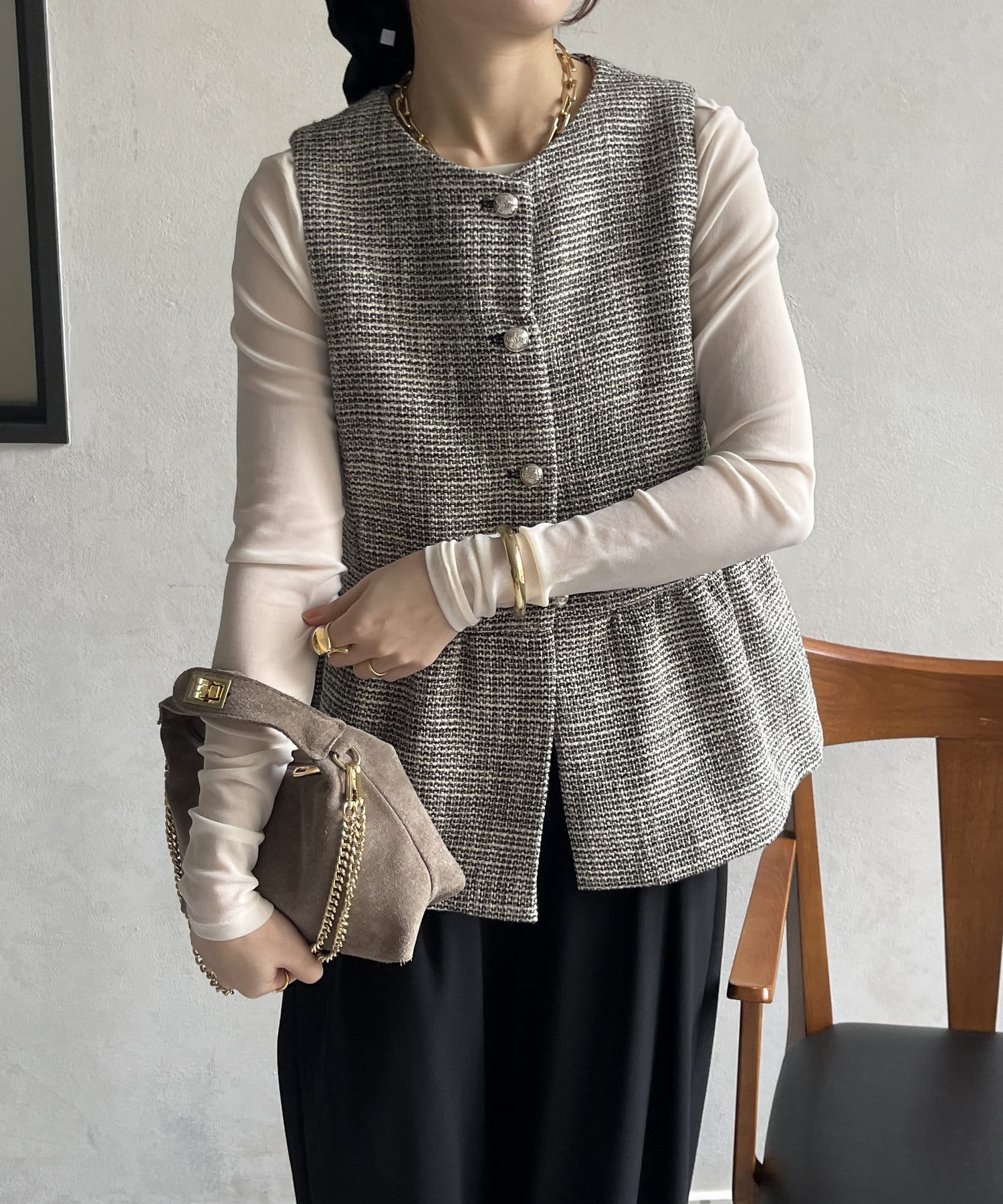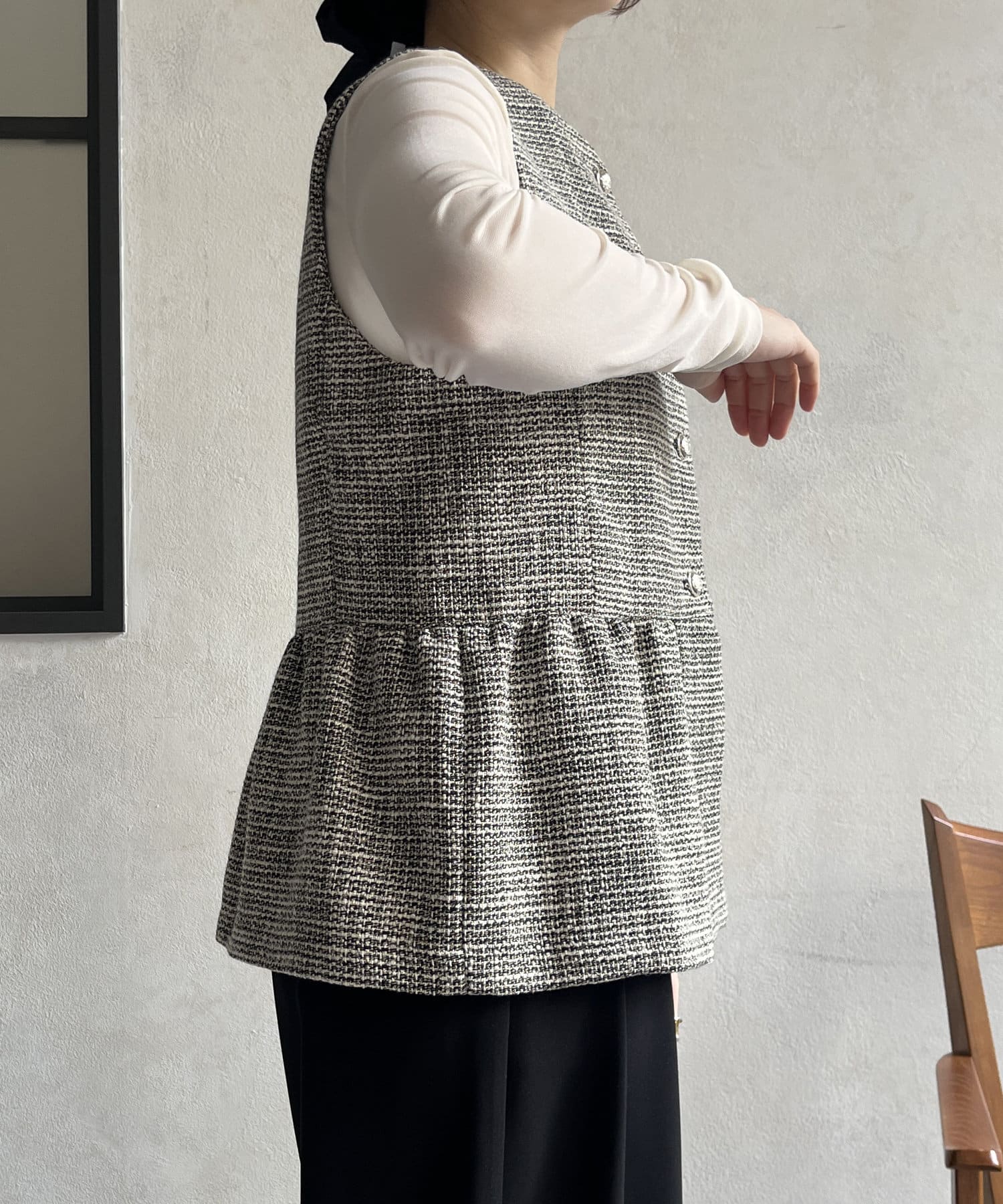 【オケージョン対応】【WEB限定】杢ツイード切替ベスト