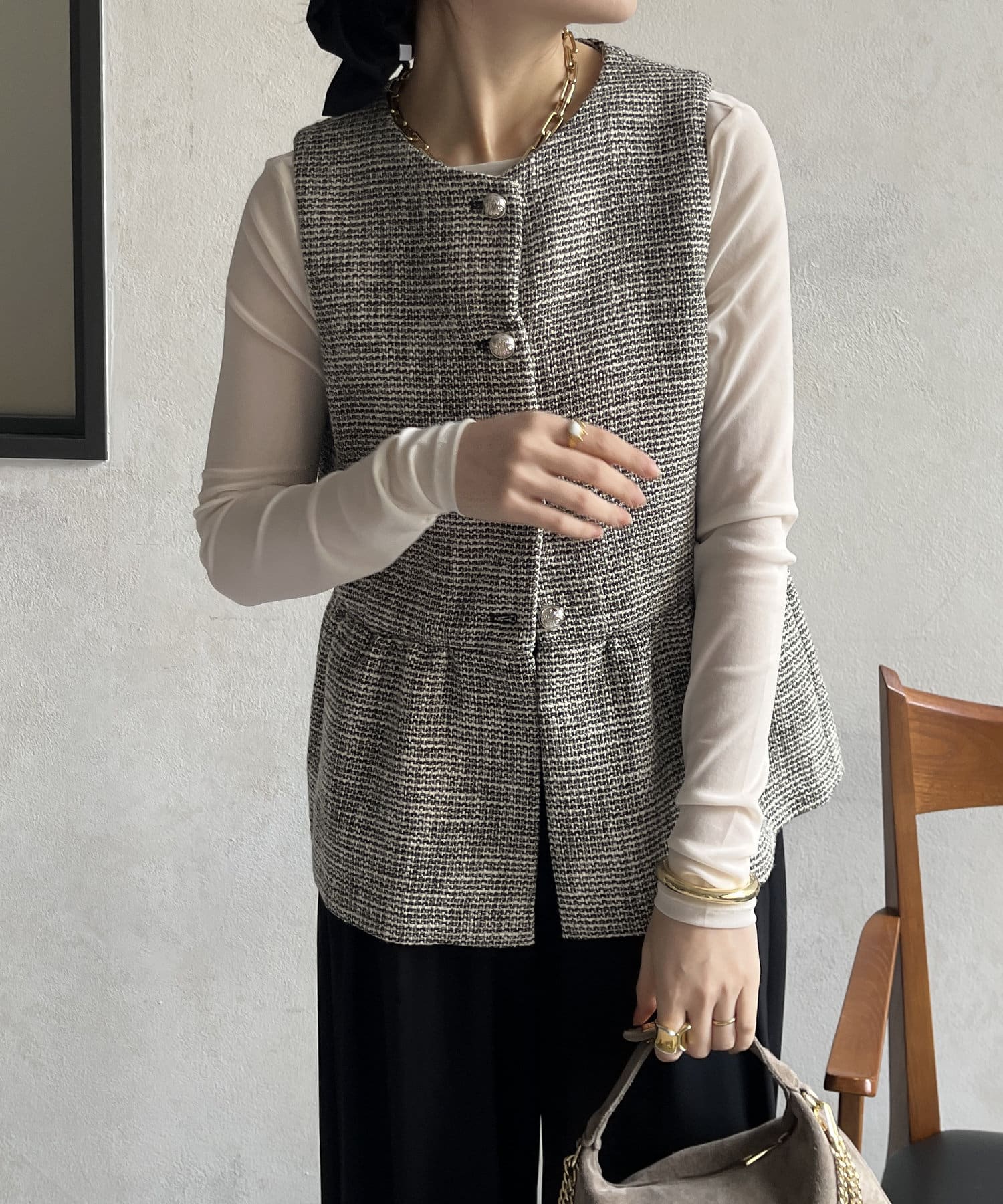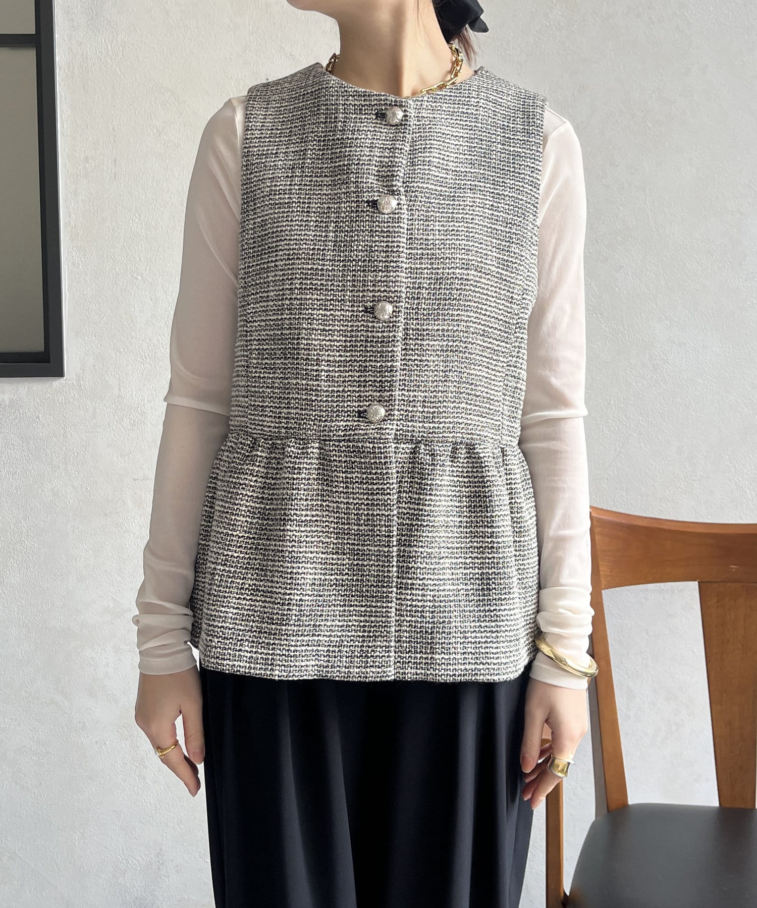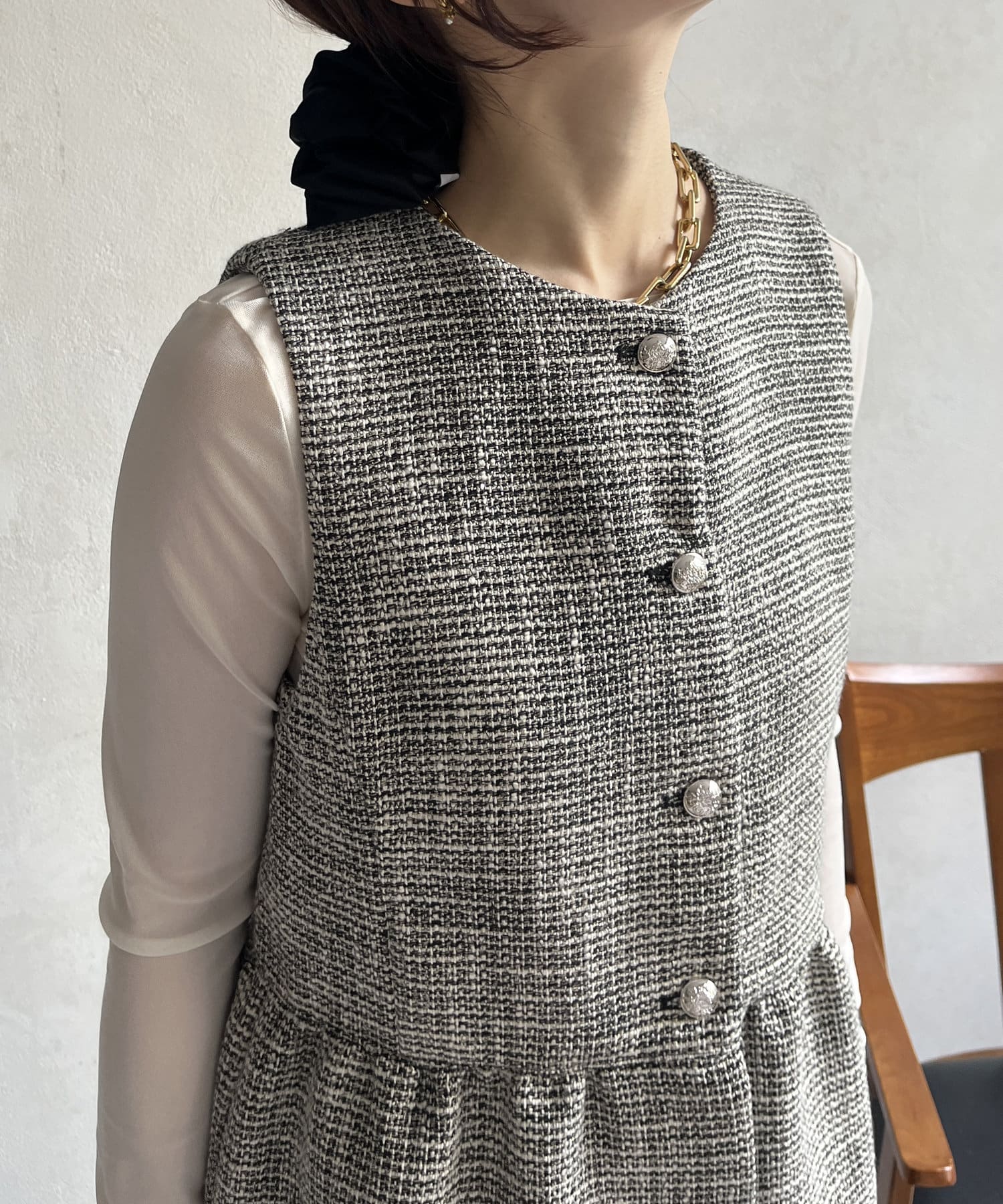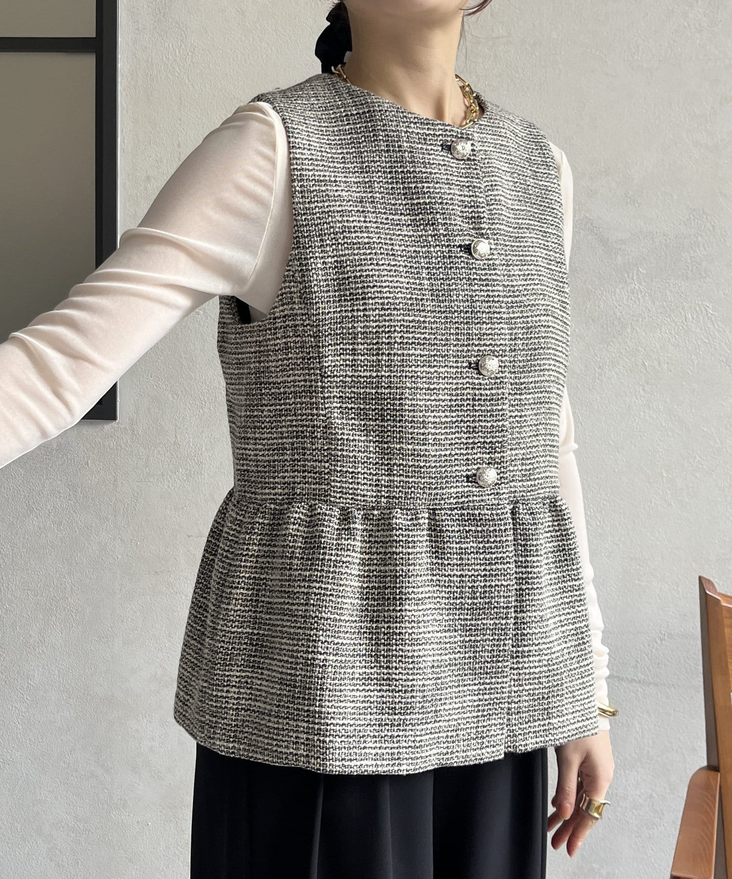 【オケージョン対応】【WEB限定】杢ツイード切替ベスト