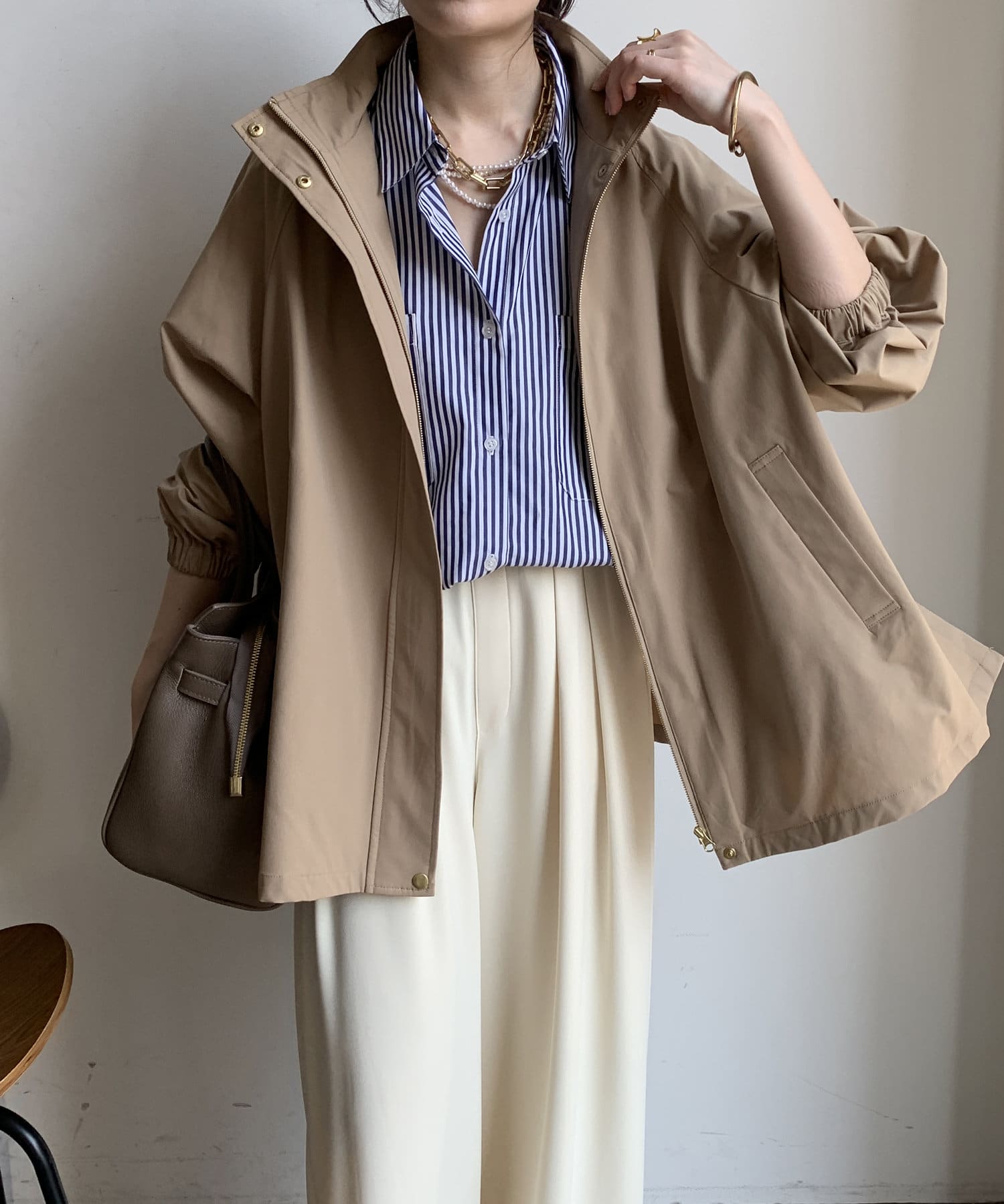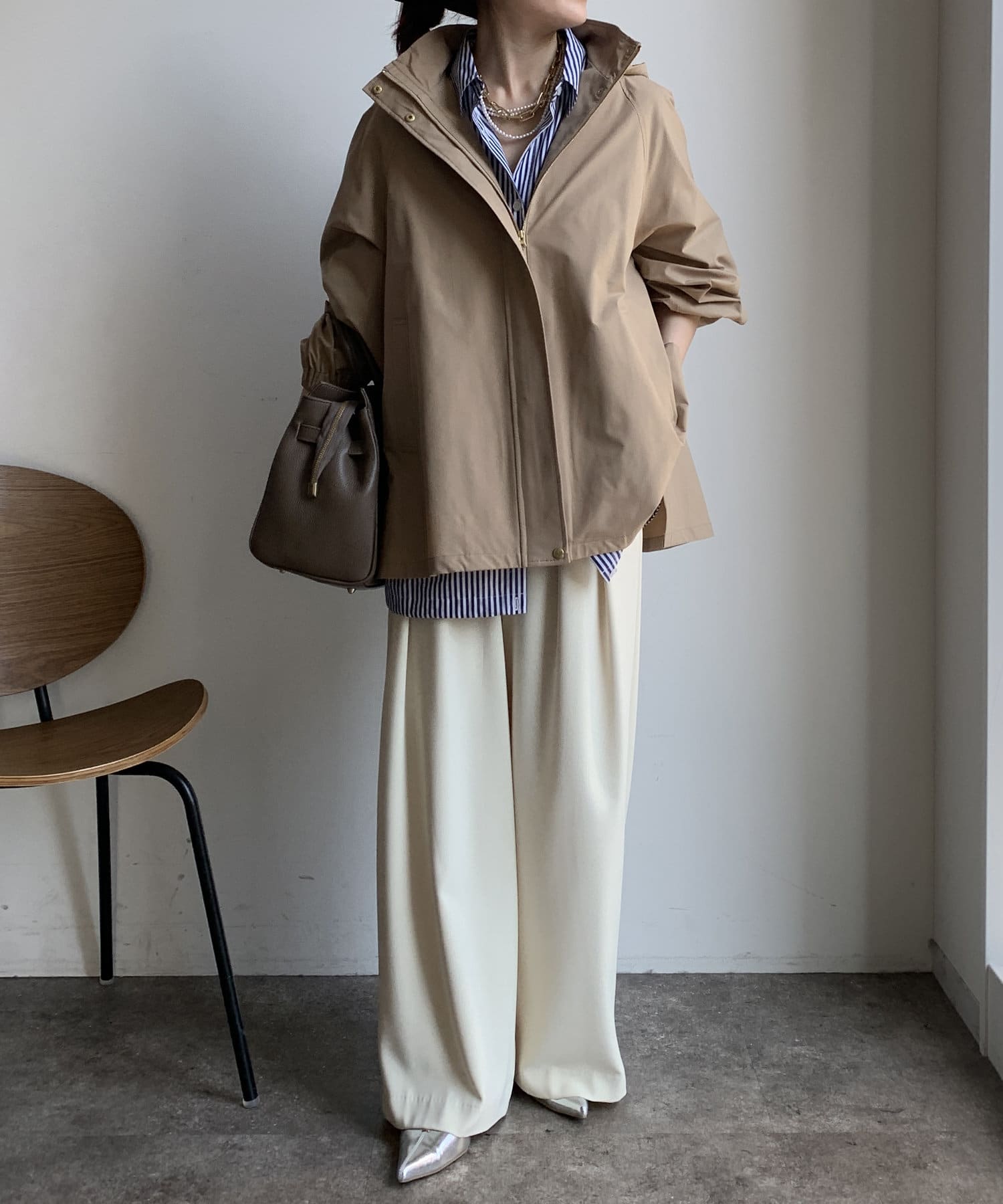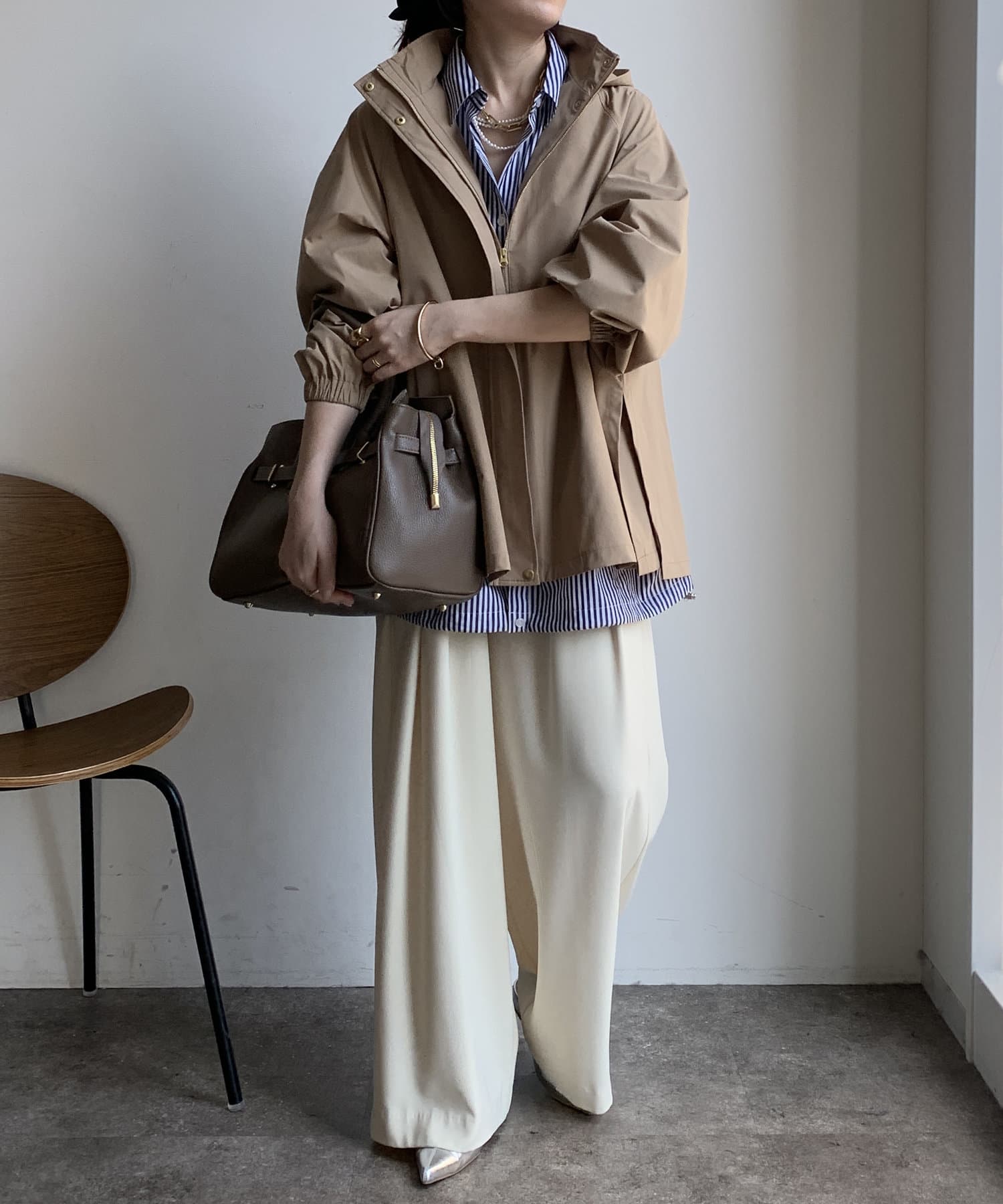 腰回りも隠れる丈感で、パンツにもスカートにも合わせやすい一枚ですよ!