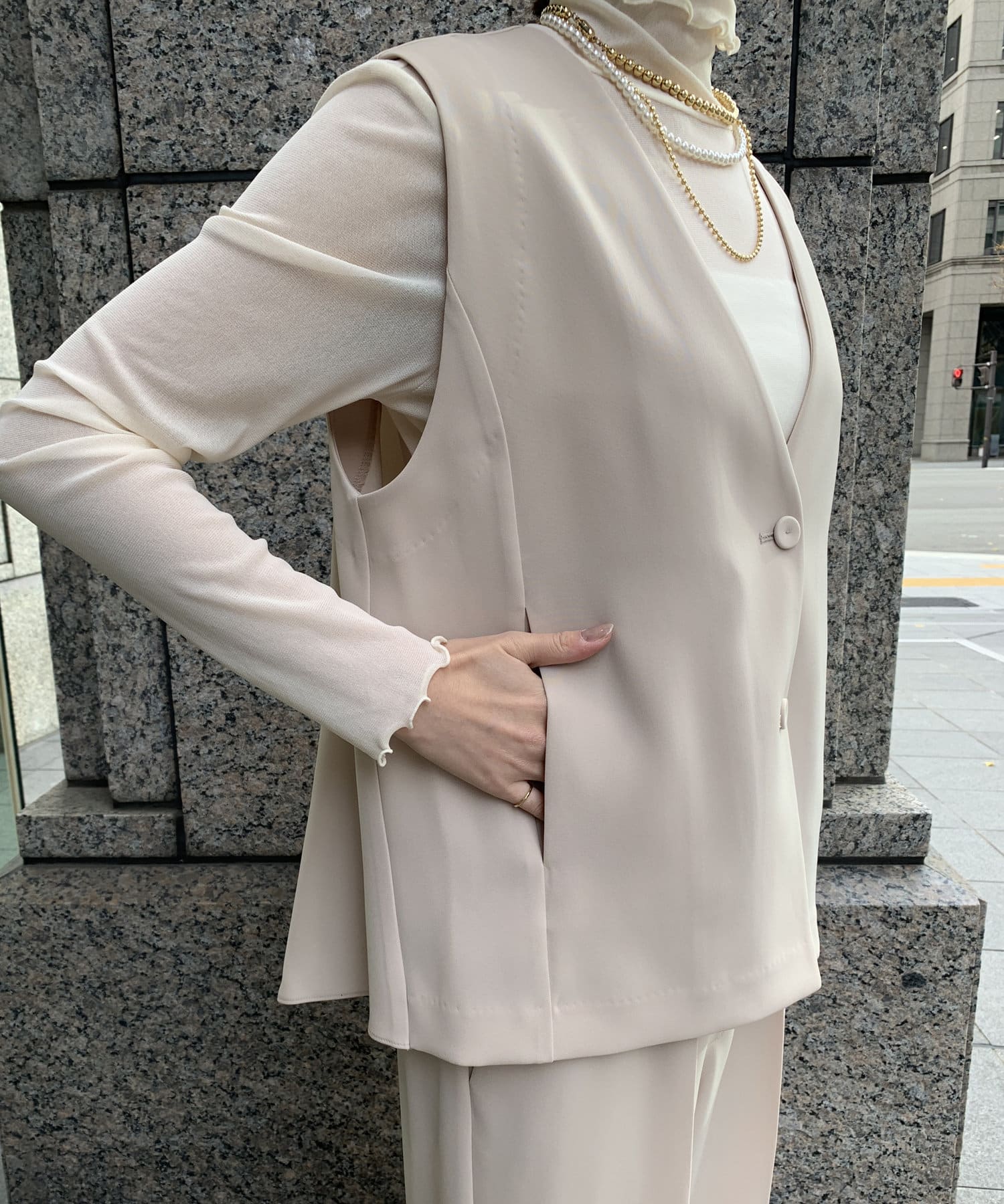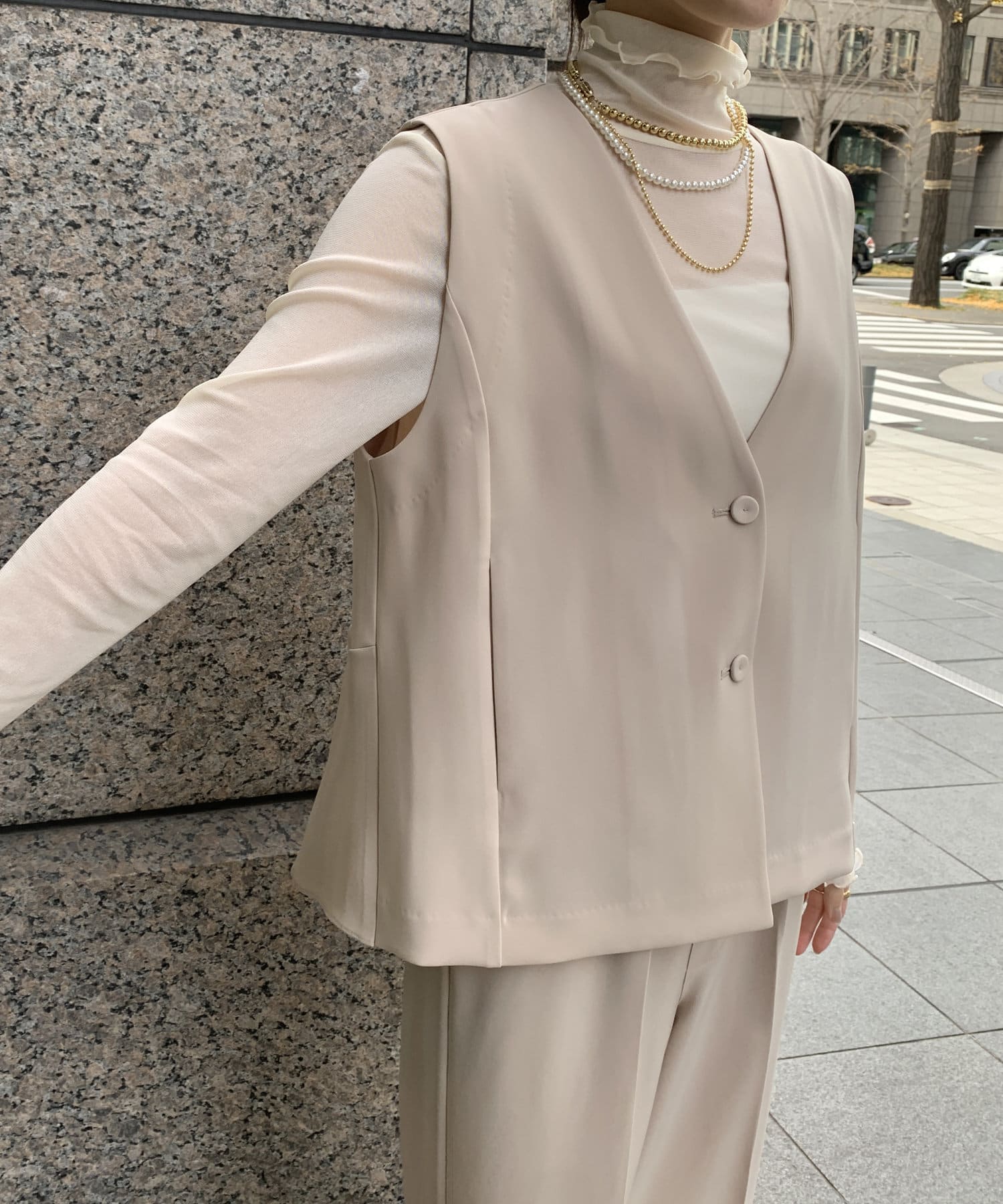 【オケージョン対応】【WEB限定】Vネックバックペプラムジレ