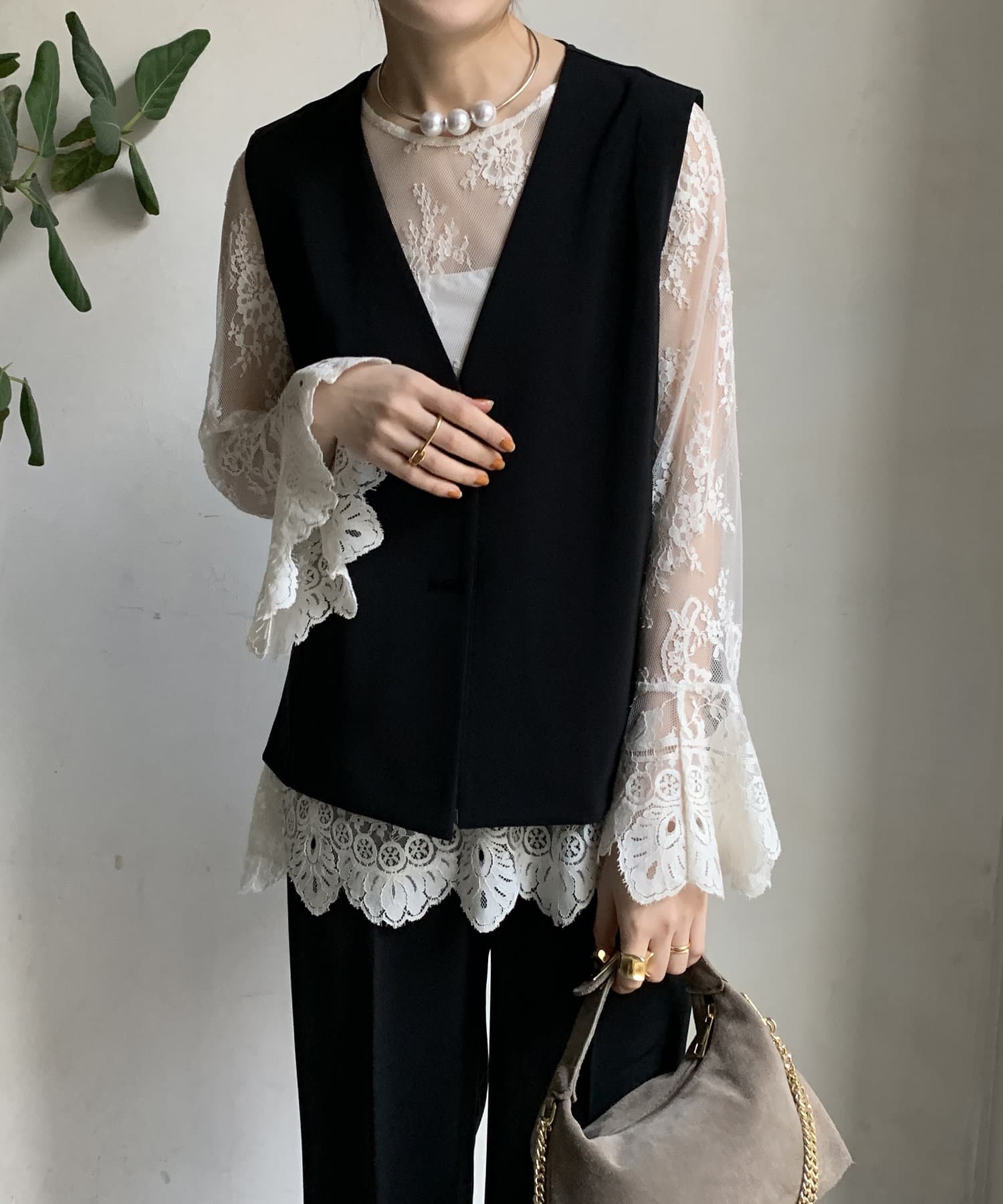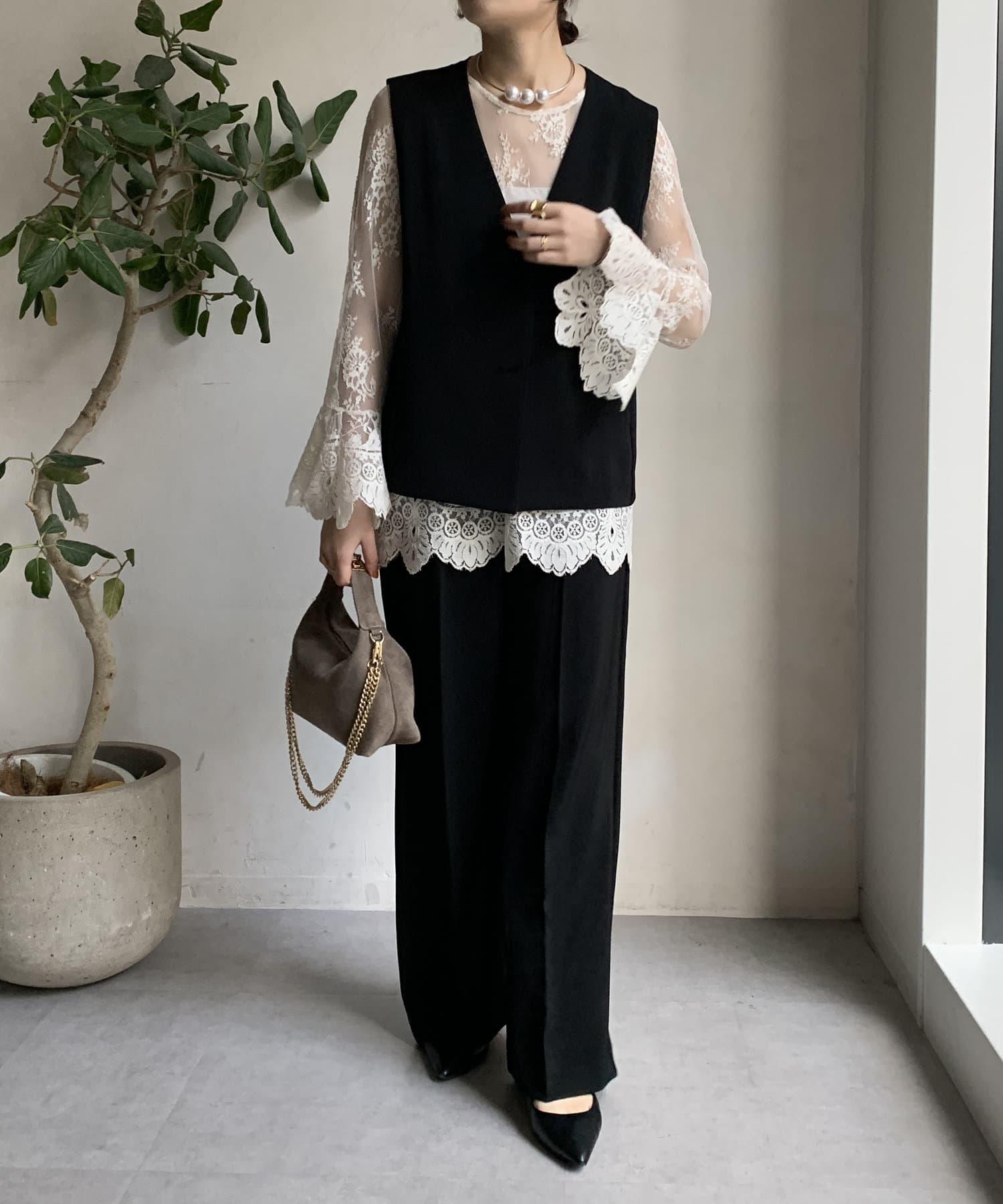 後ろ着丈が長めに作られていて、少しのフレア感が女性らしいシルエットにしてくれます!