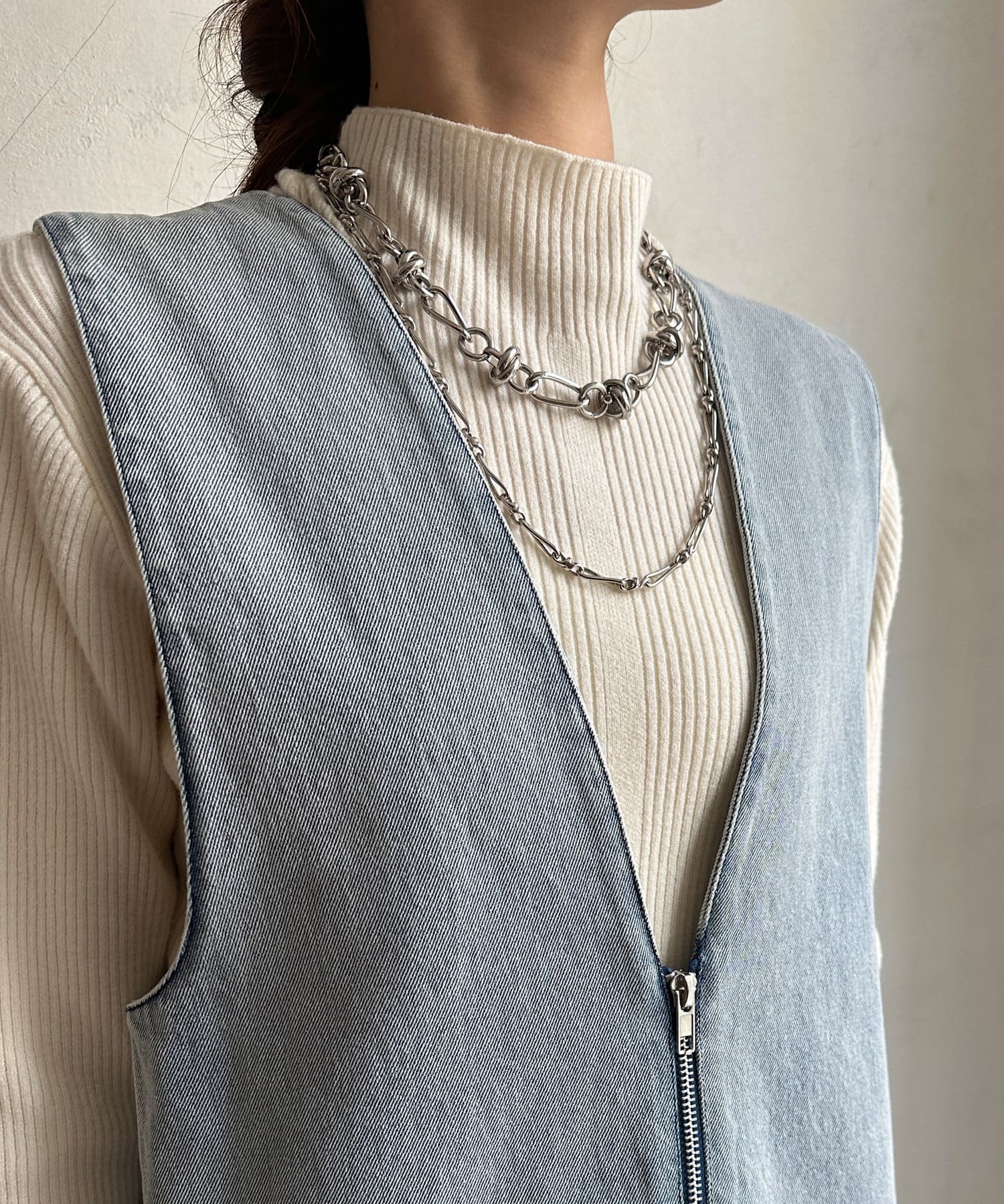 お手持ちのインナーをレイヤードするだけでおしゃれなスタイルが完成する、テクニックいらずのデザインです。