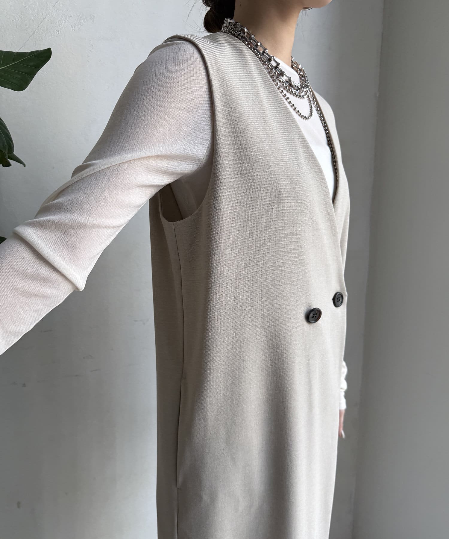 フロントが重なりあったデザインと、ボタンがアクセントになりメリハリを!