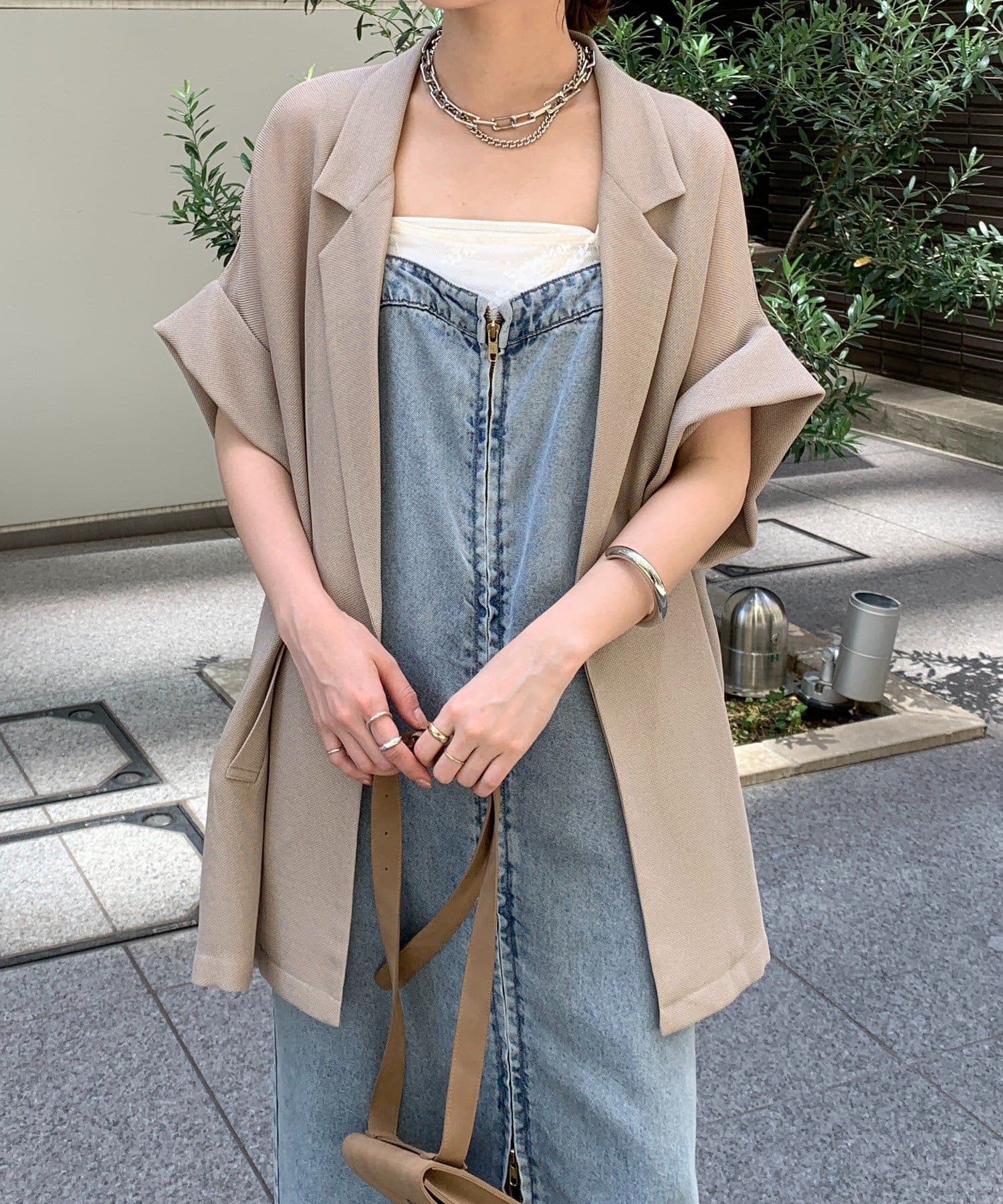フロントのセンターにはファスナーデザインをプラスし、着こなしにトレンドライクな印象をプラスします。