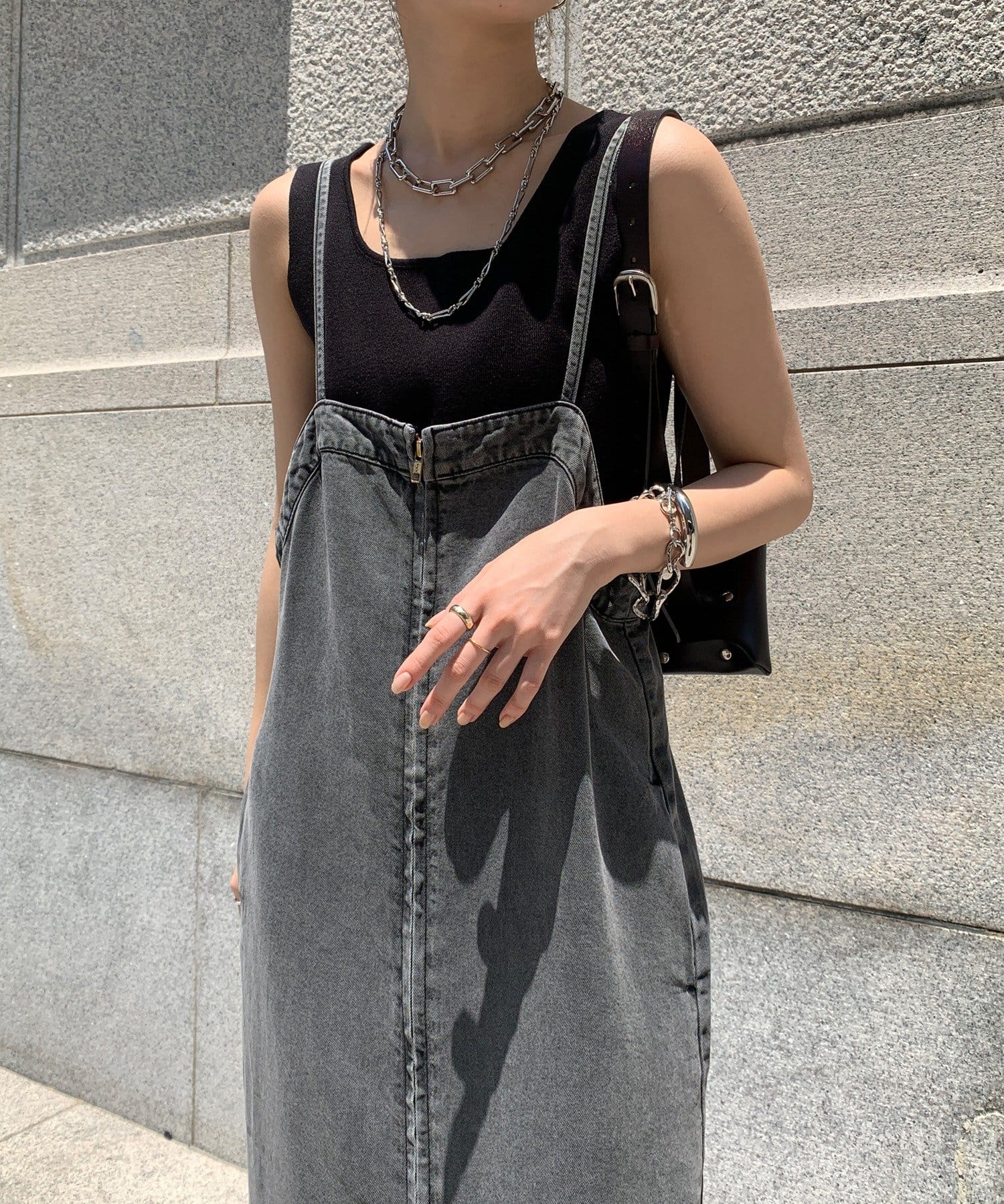 セルロースの柔らかな素材で仕上げたデニムジャンスカ。