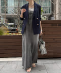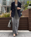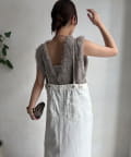 裾はさりげないフリンジデザインになり、バックスリットが入っているため足さばきもサポート。
