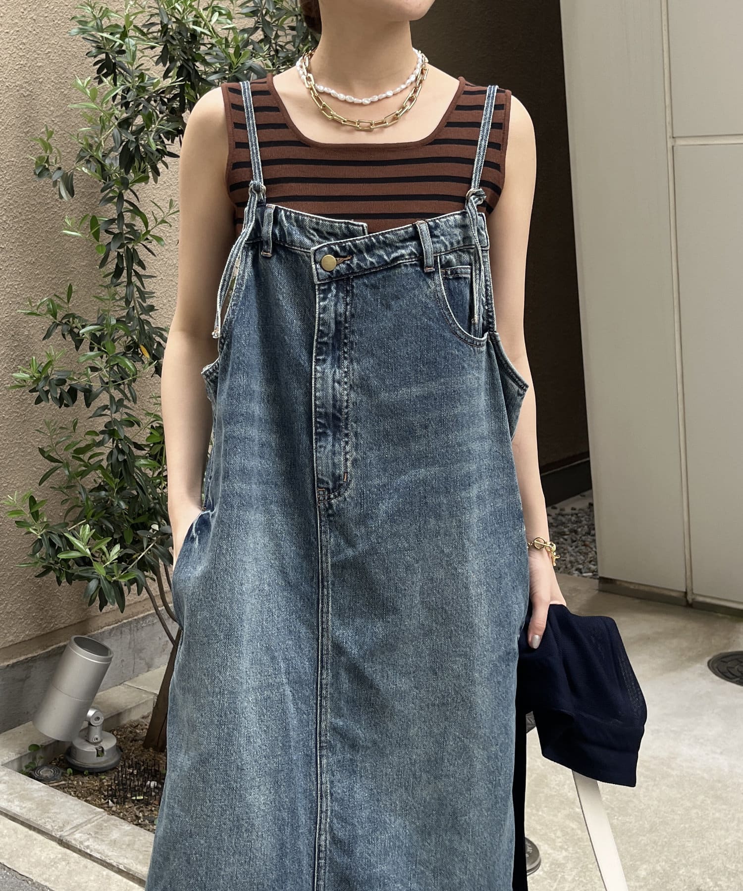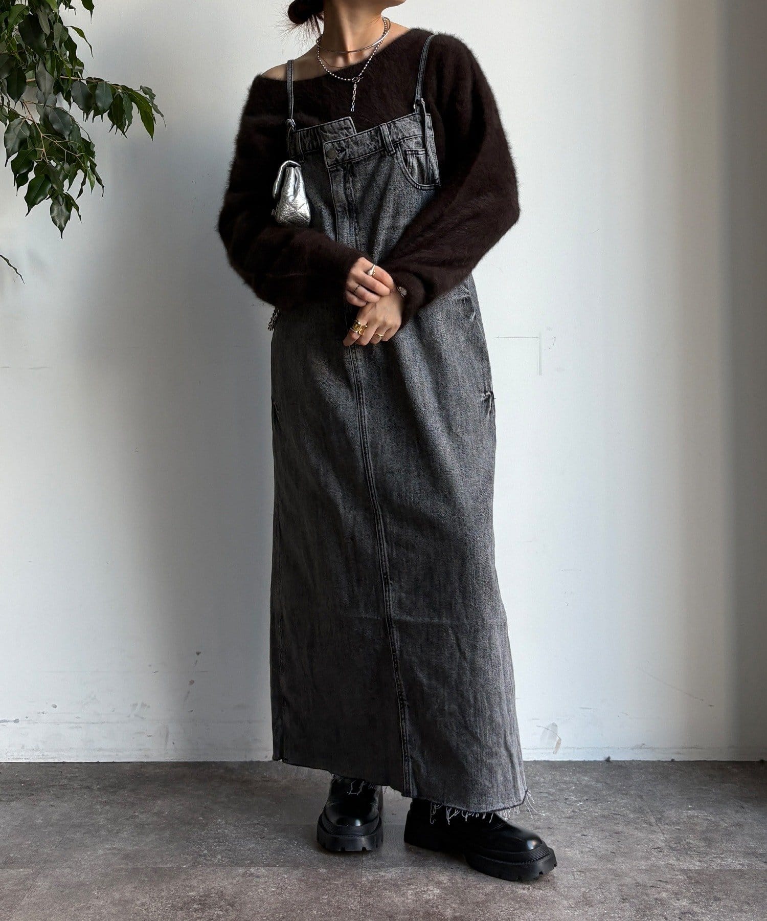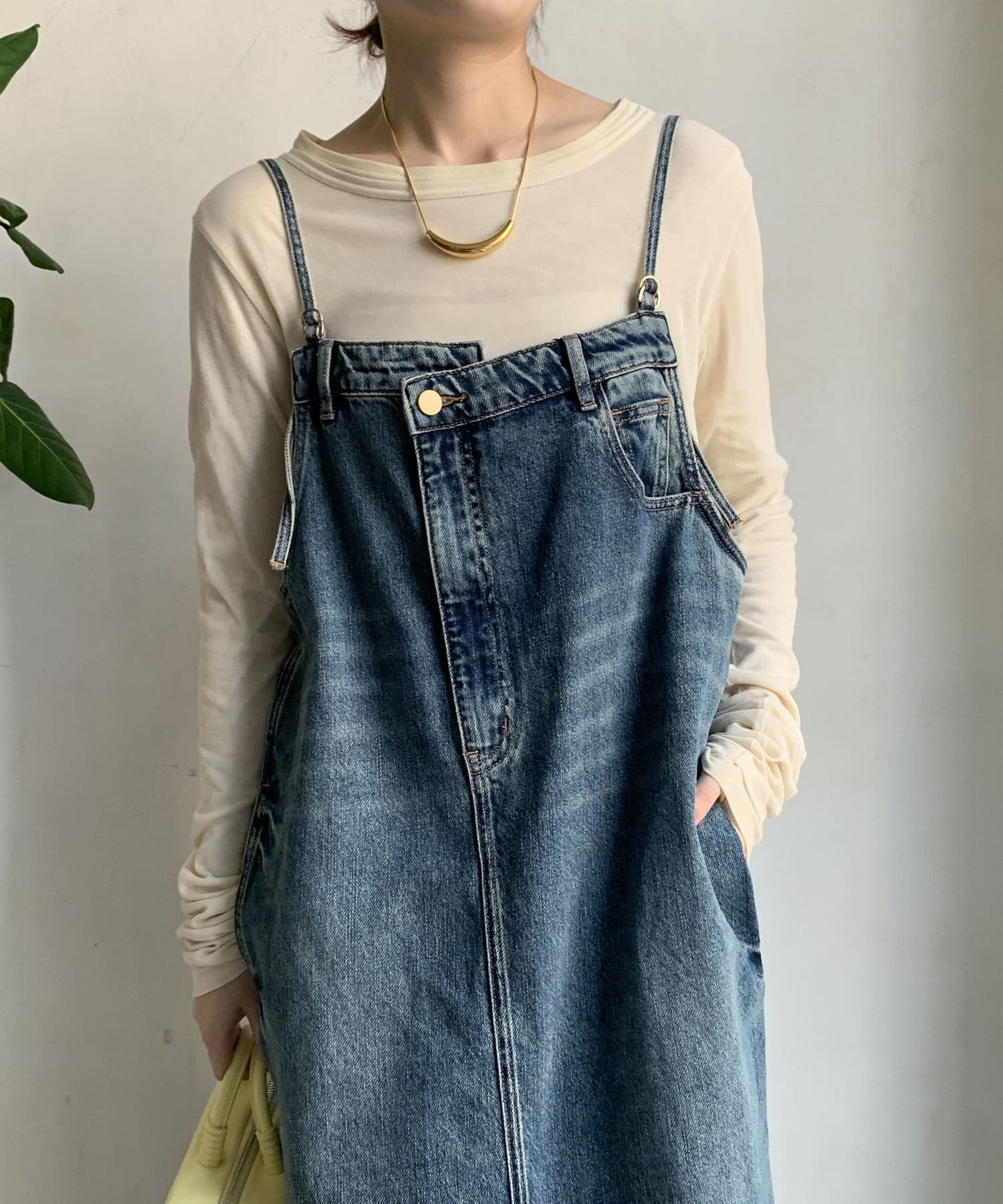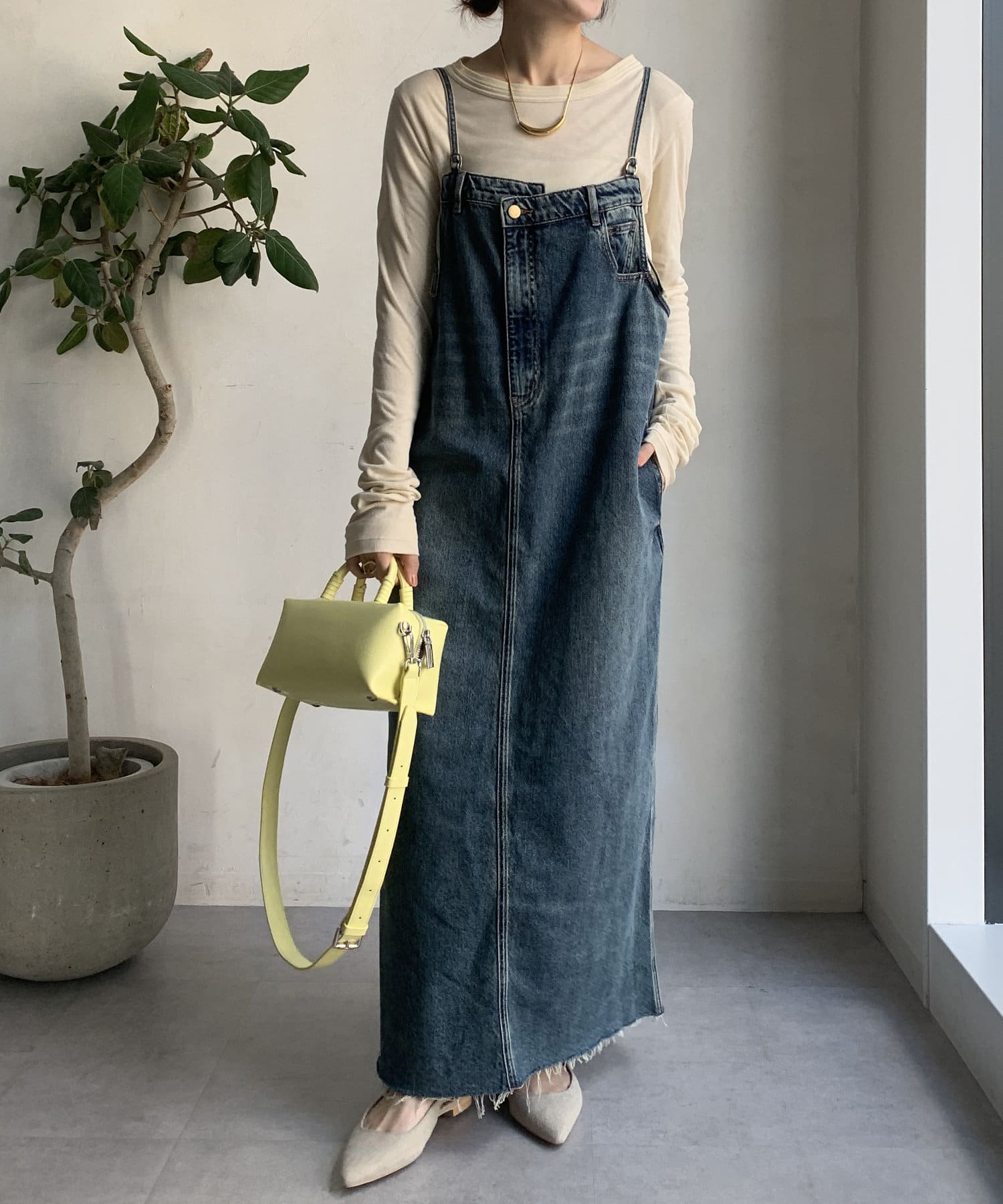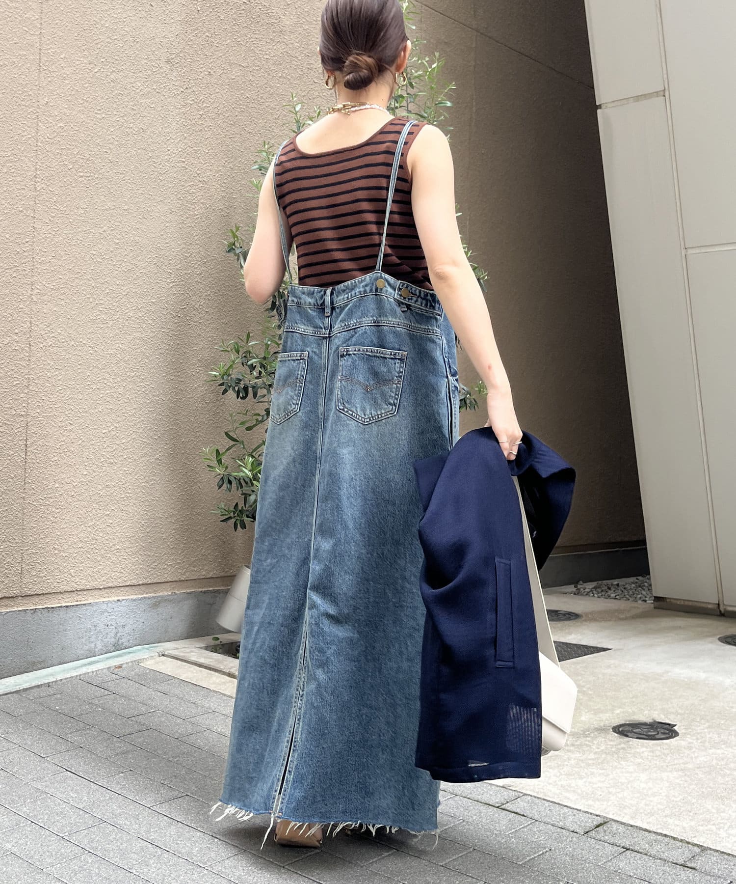 ビンテージ加工のような風合いが着用するだけで、上級者コーデになるジャンスカ!