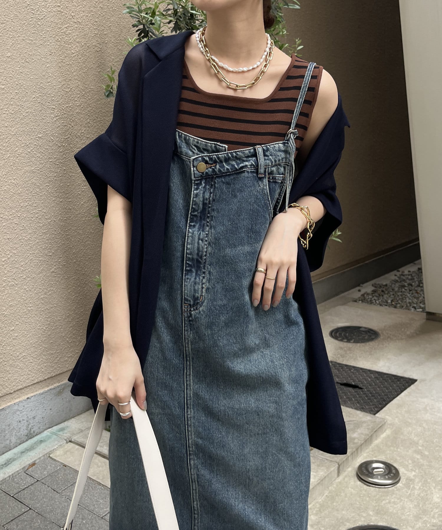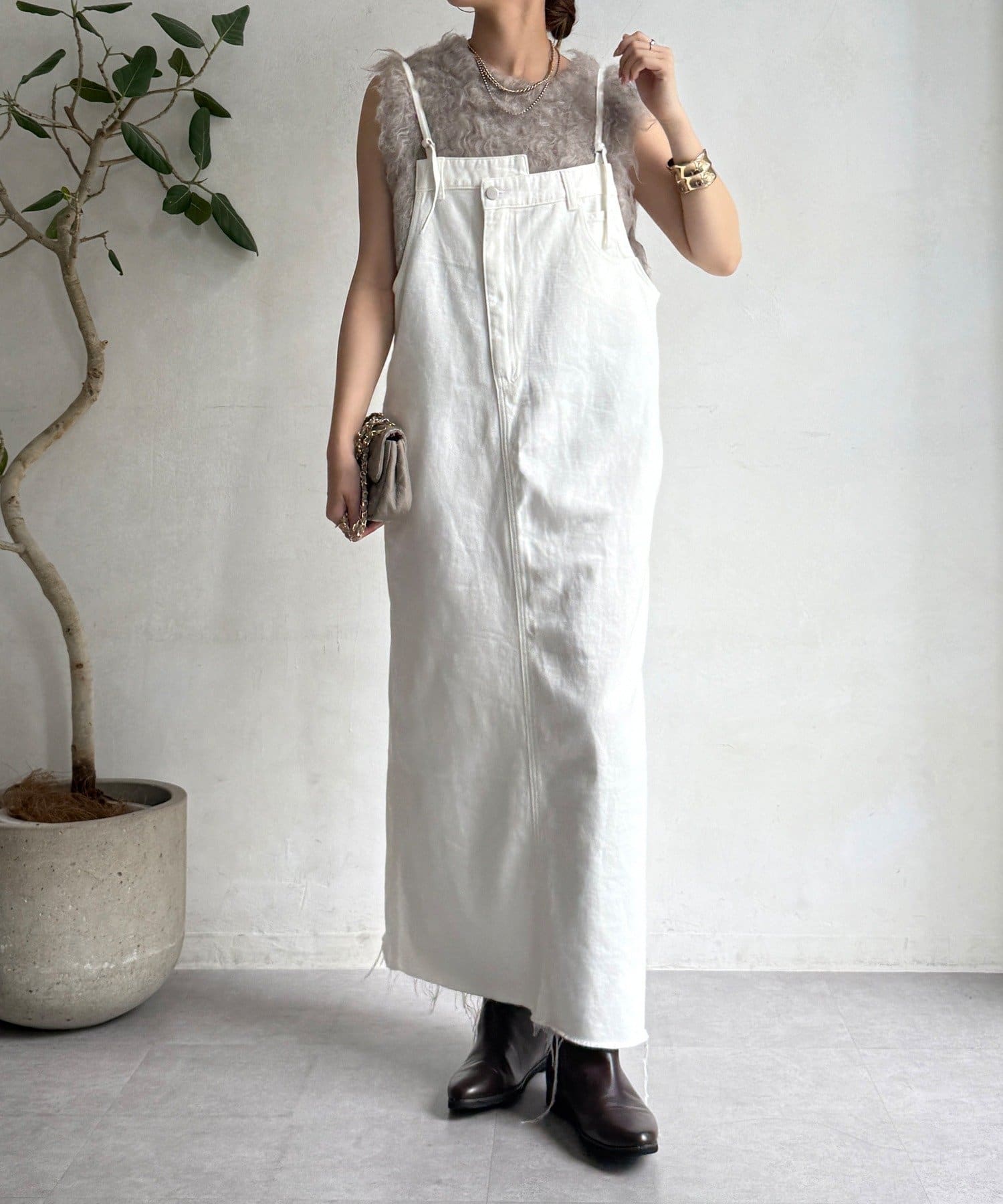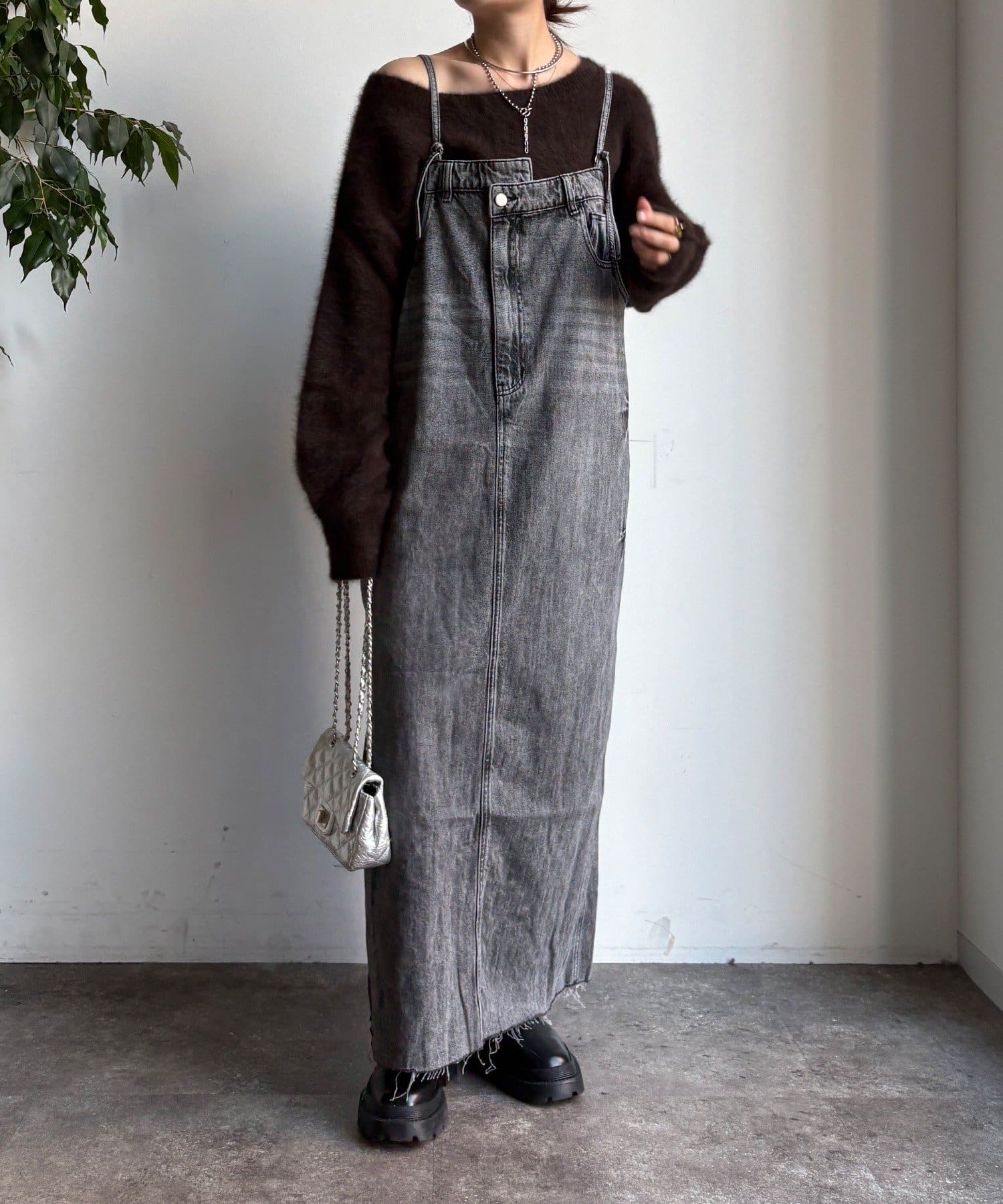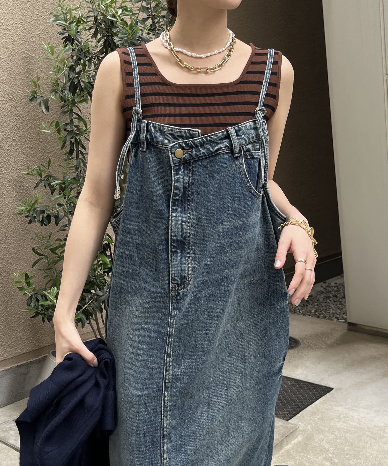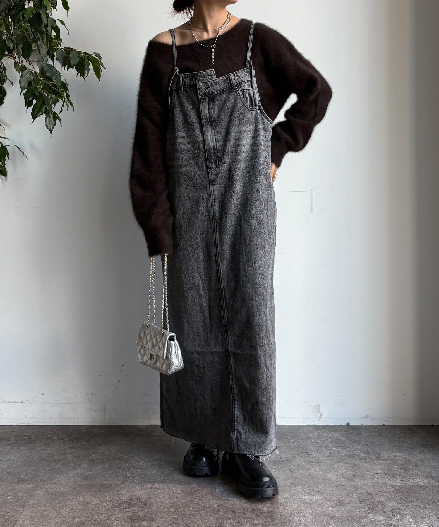 ビンテージ加工のような風合いが着用するだけで、上級者コーデになるジャンスカ!