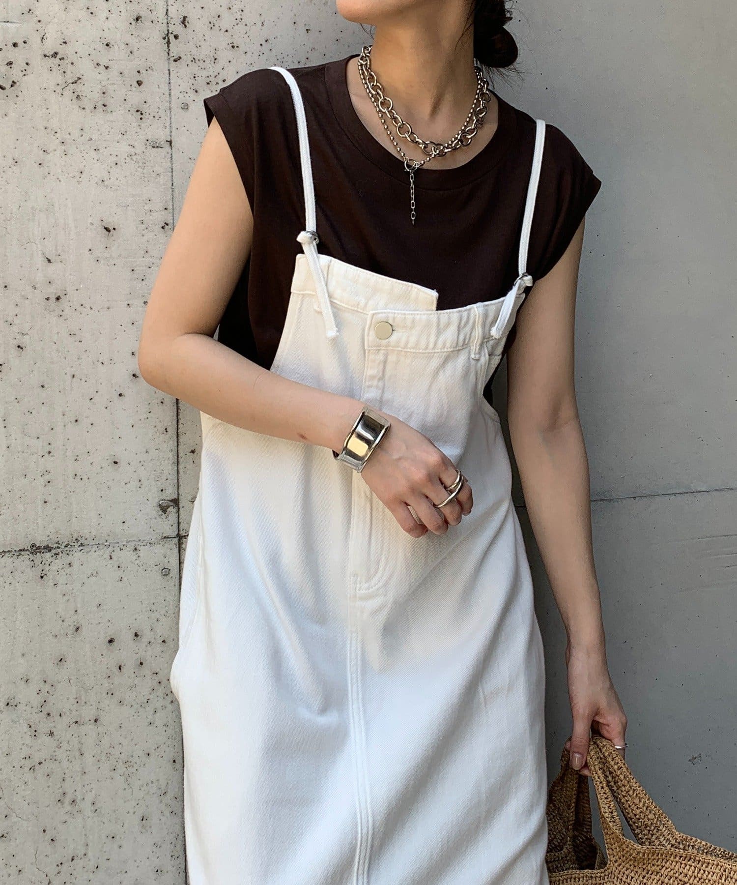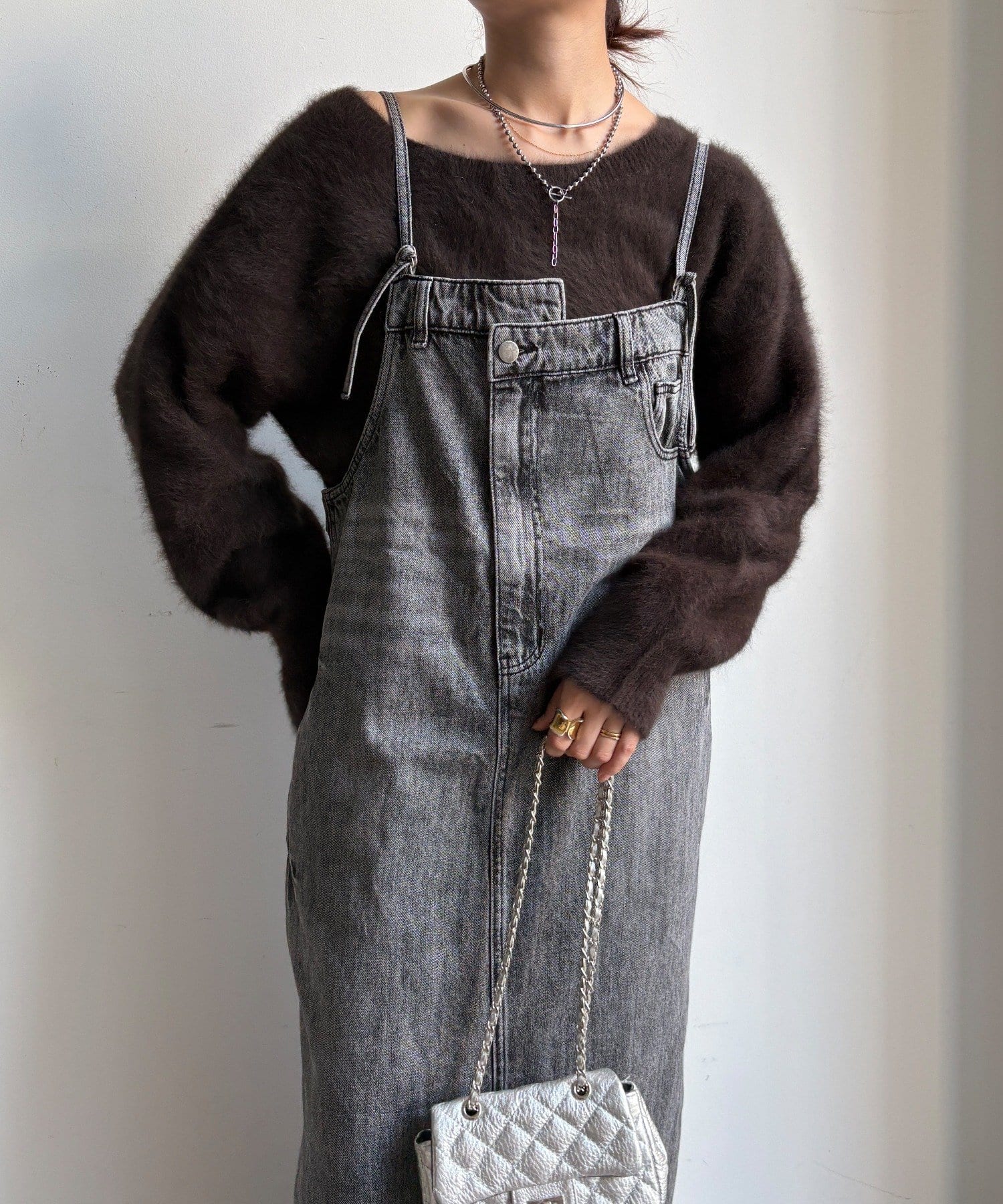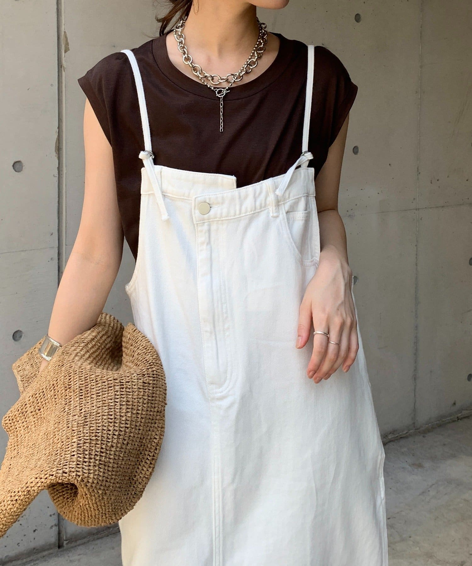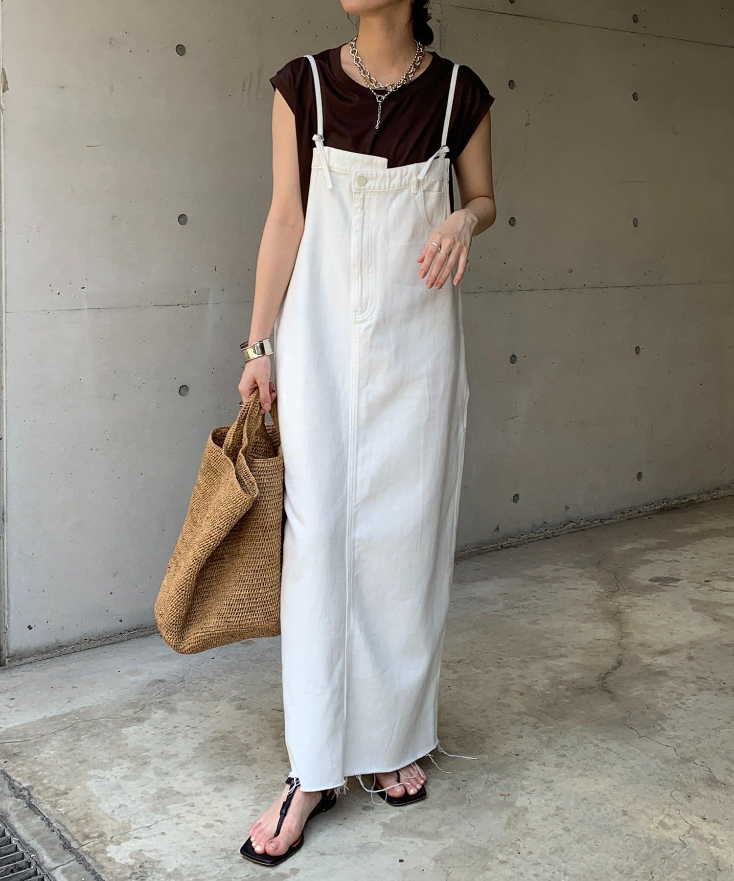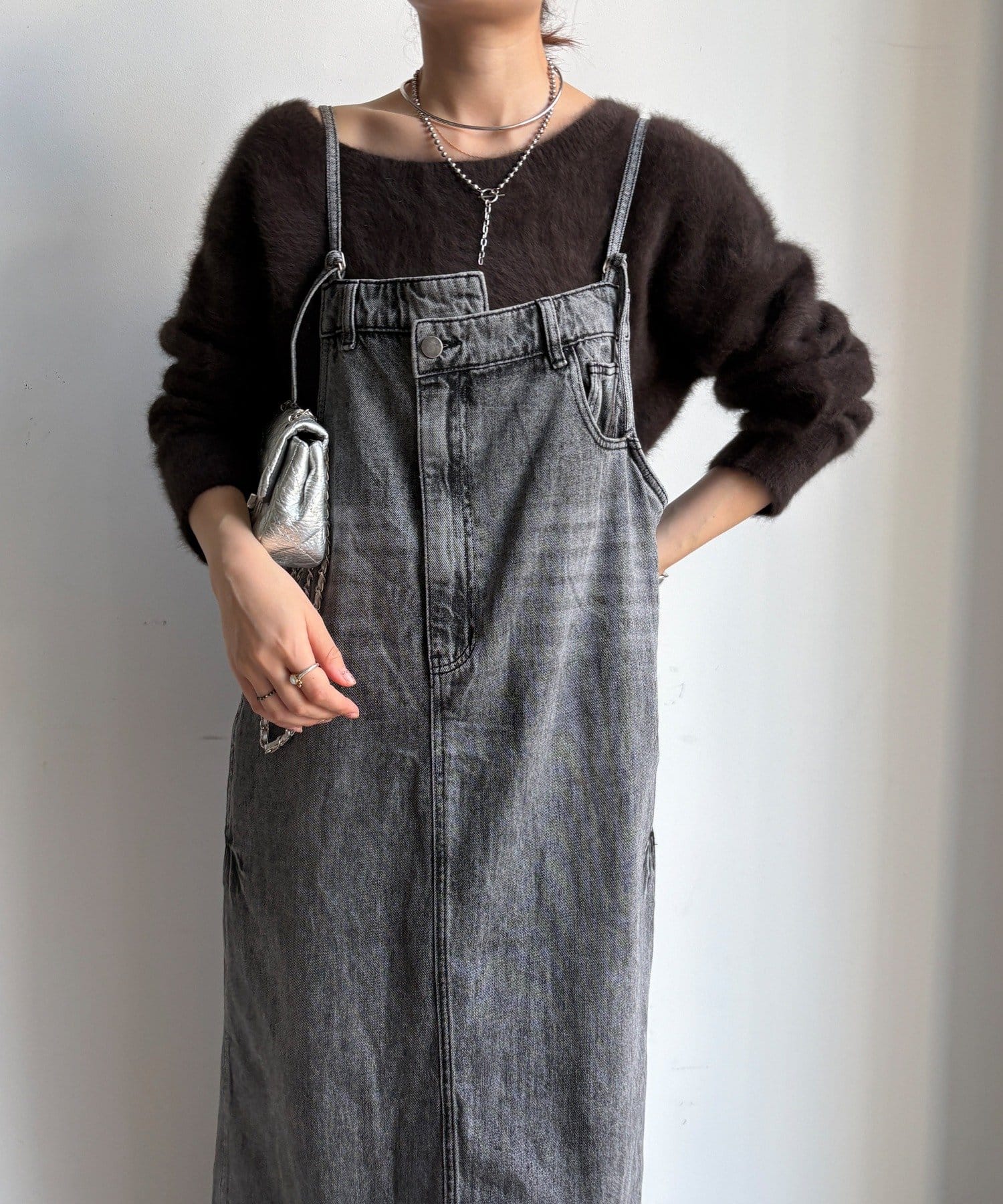 ビンテージ加工のような風合いが着用するだけで、上級者コーデになるジャンスカ!
