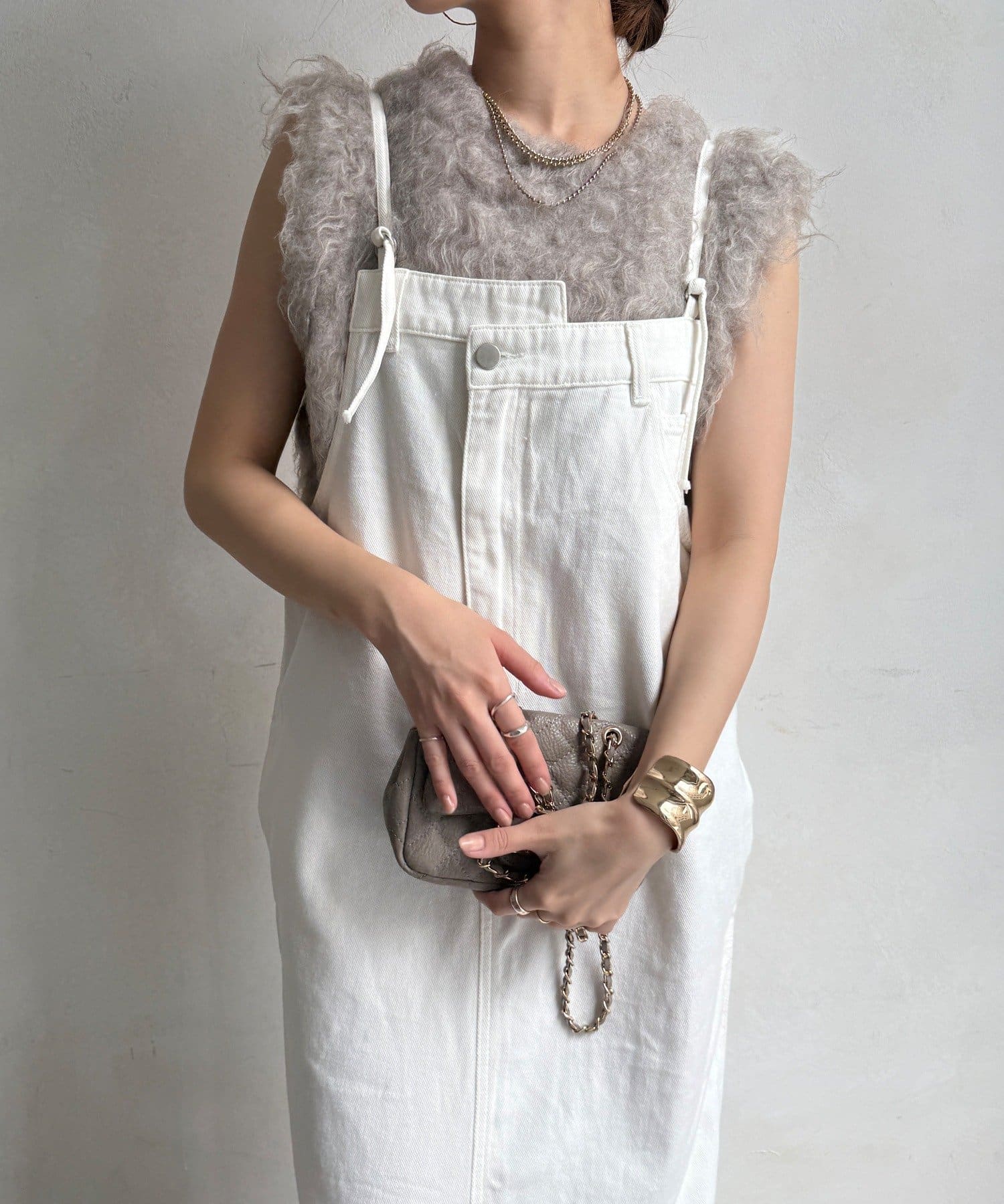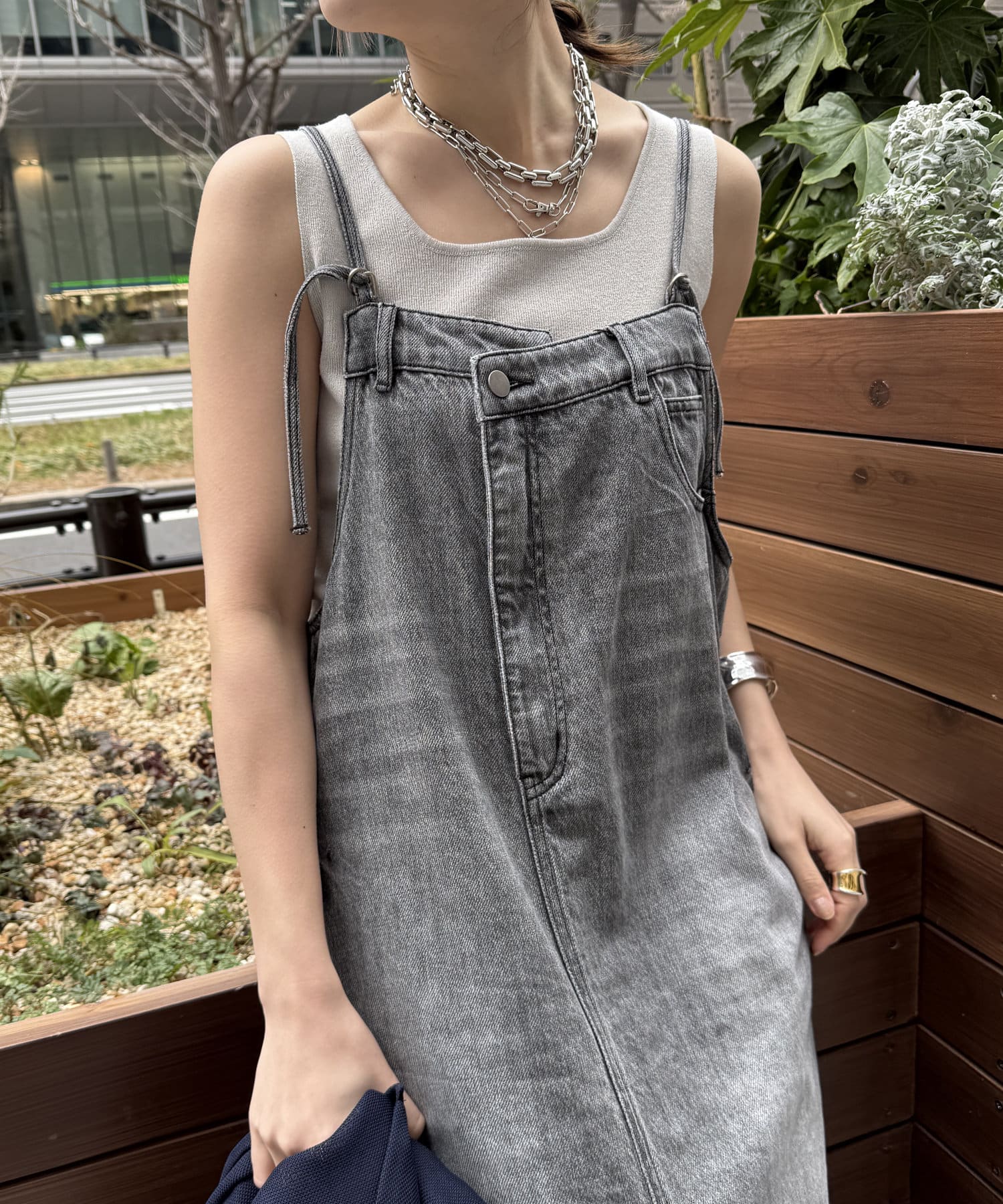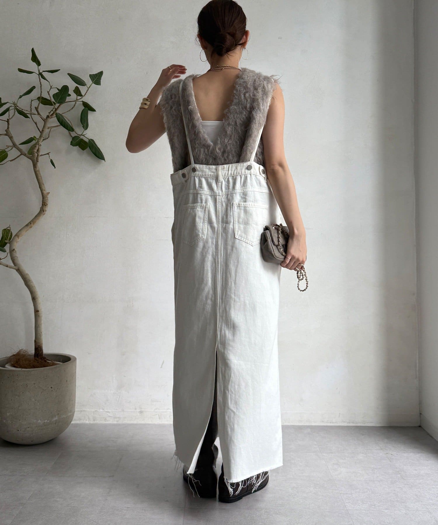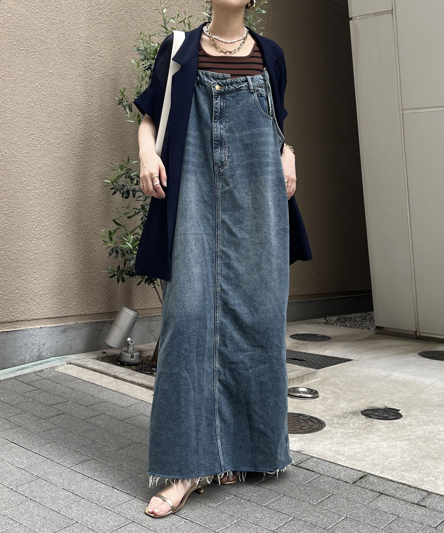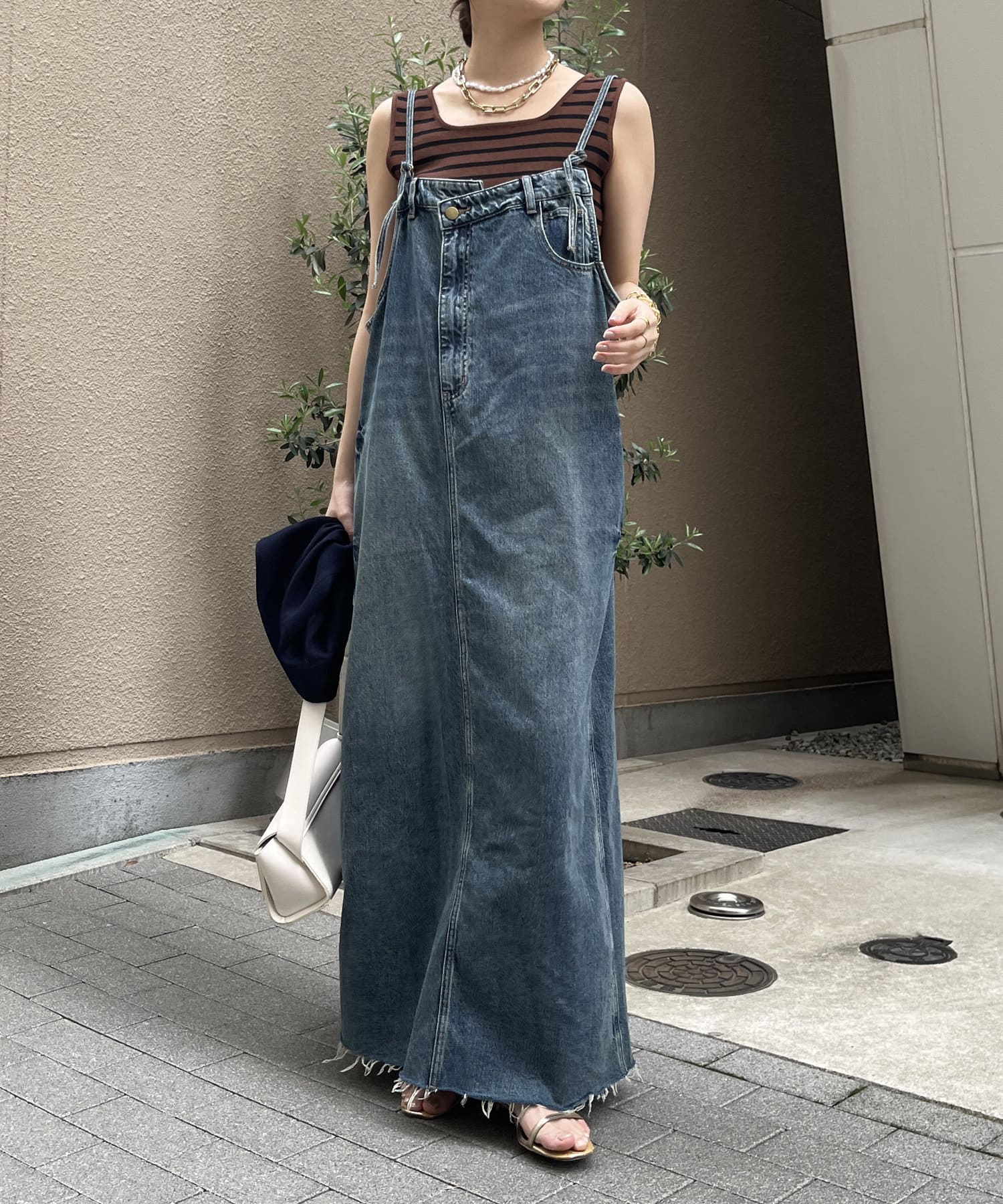 【完売カラー再追加!/体型カバー】裾フリンジデニムジャンスカ